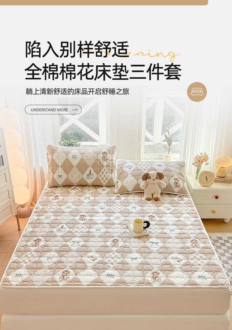 当前位置: 91家纺网 > 商品网购 > 床垫/床褥 > 普通床垫 > (买家秀 爆款花型 长期不断货)新款全棉棉花床垫床护垫三件套 贝琪-咖