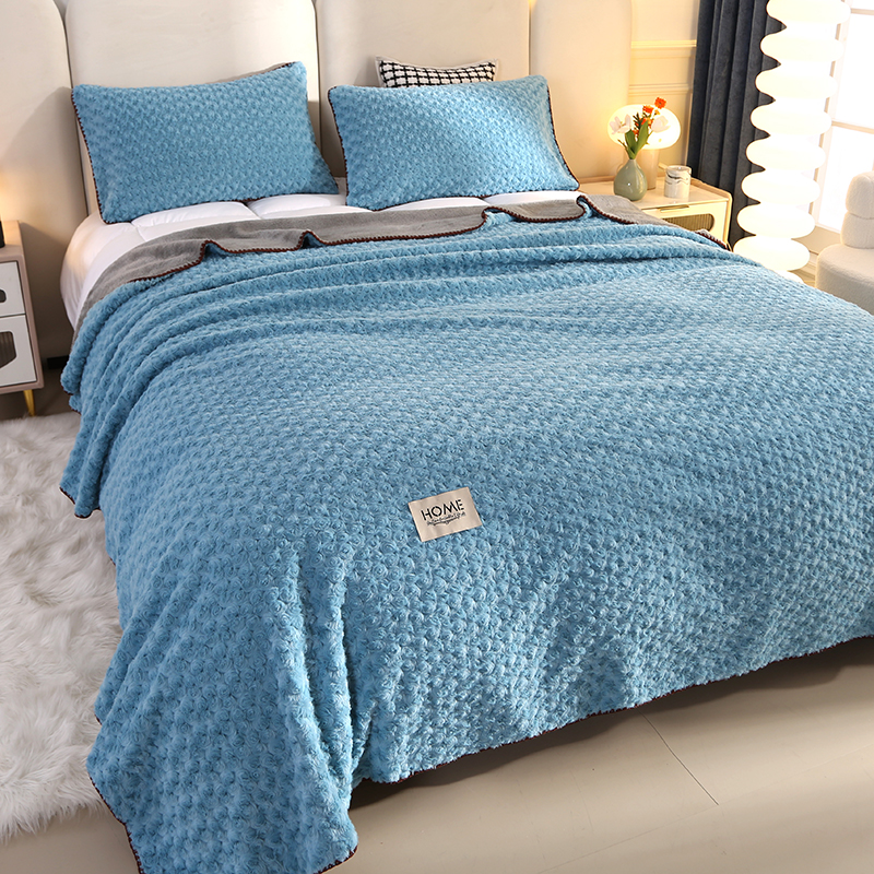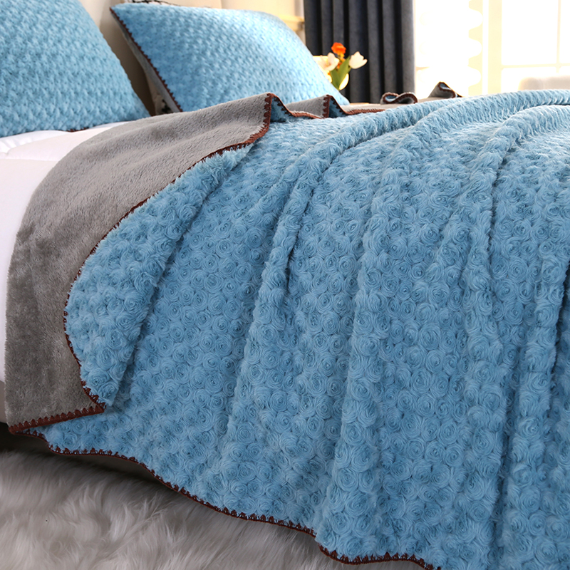 商品名称:悦织湾家纺 兔兔绒玫瑰花毛毯 玫瑰蓝