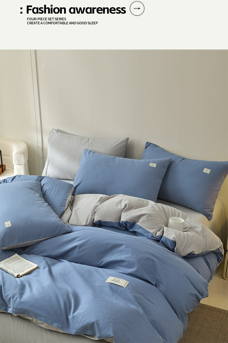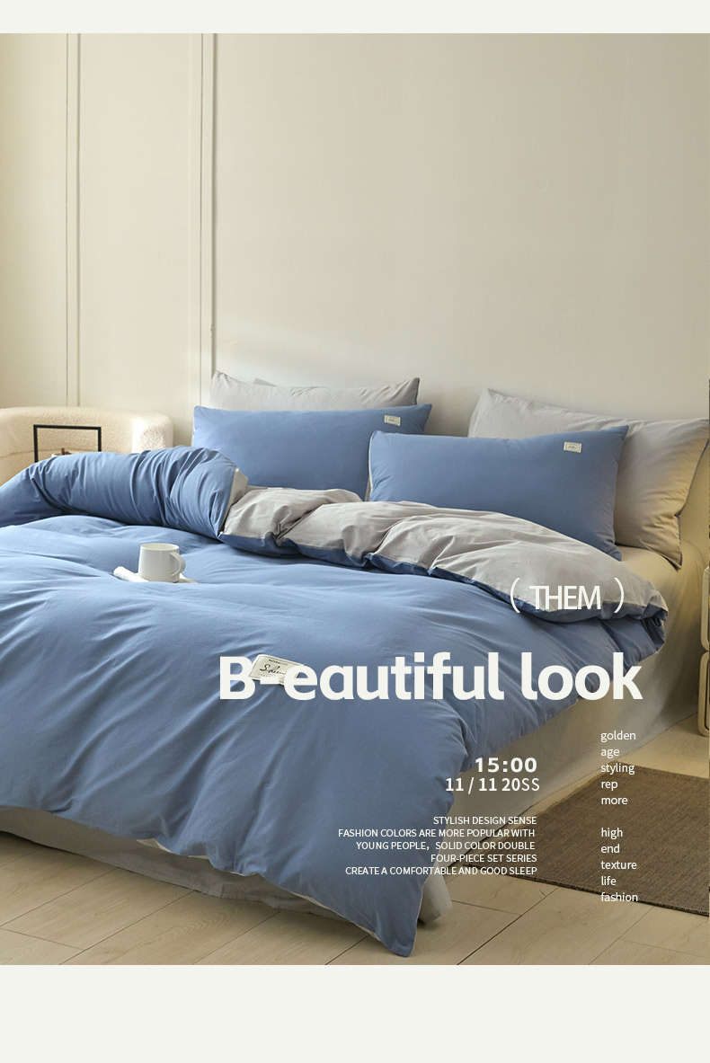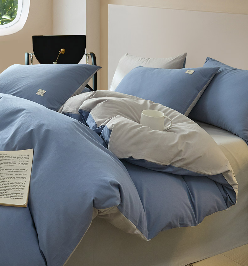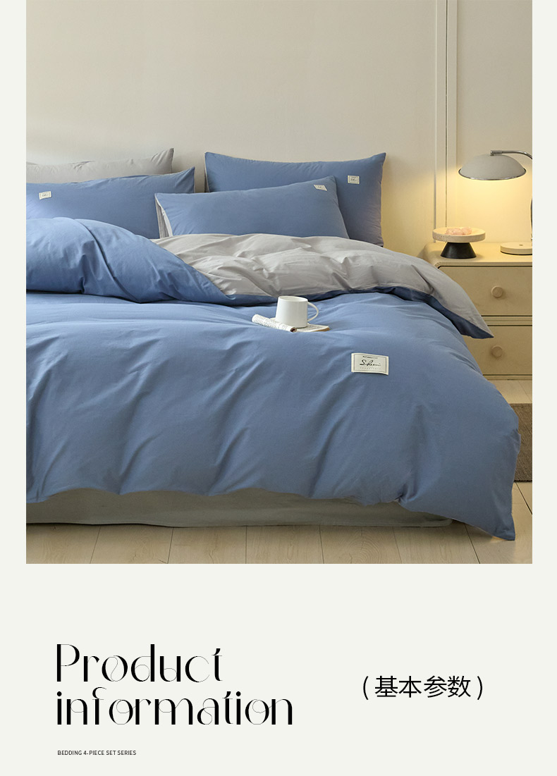 当前位置: 91家纺网 > 商品网购 > 床品套件 > 四件套 > 全棉普通四件套 > ab家纺 2025新款色织全棉40支水洗棉四件套--双拼第二组 宾利蓝浅灰