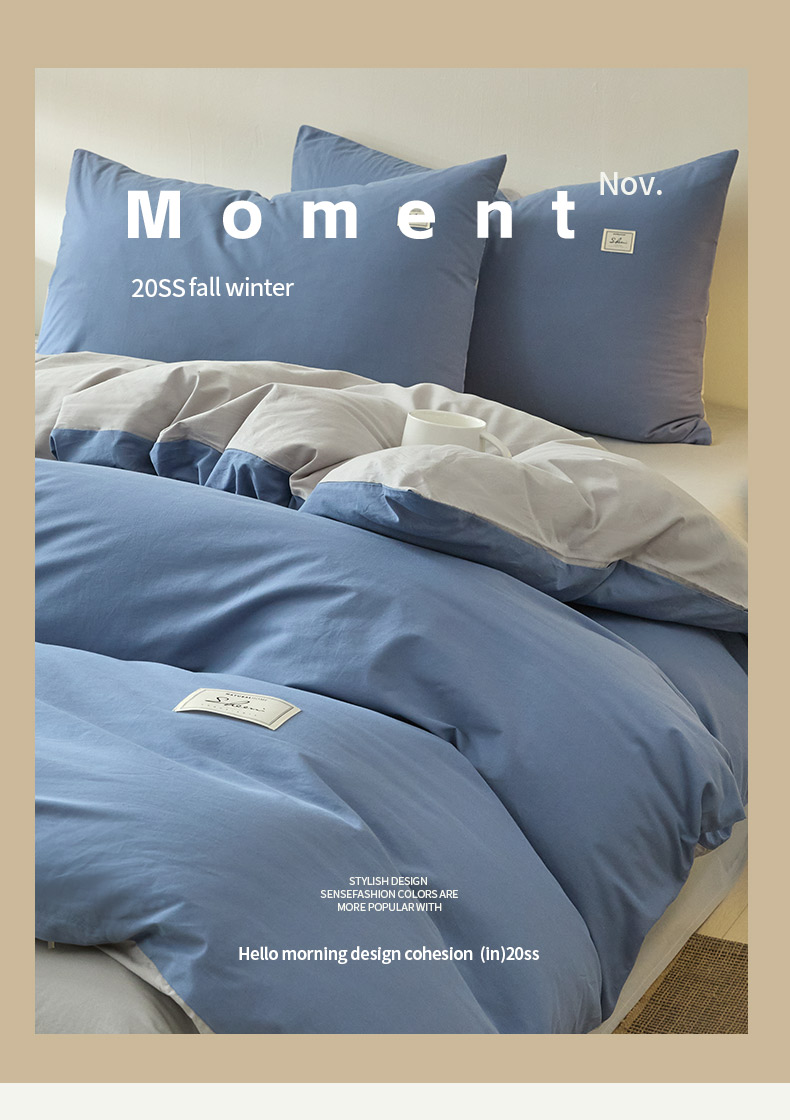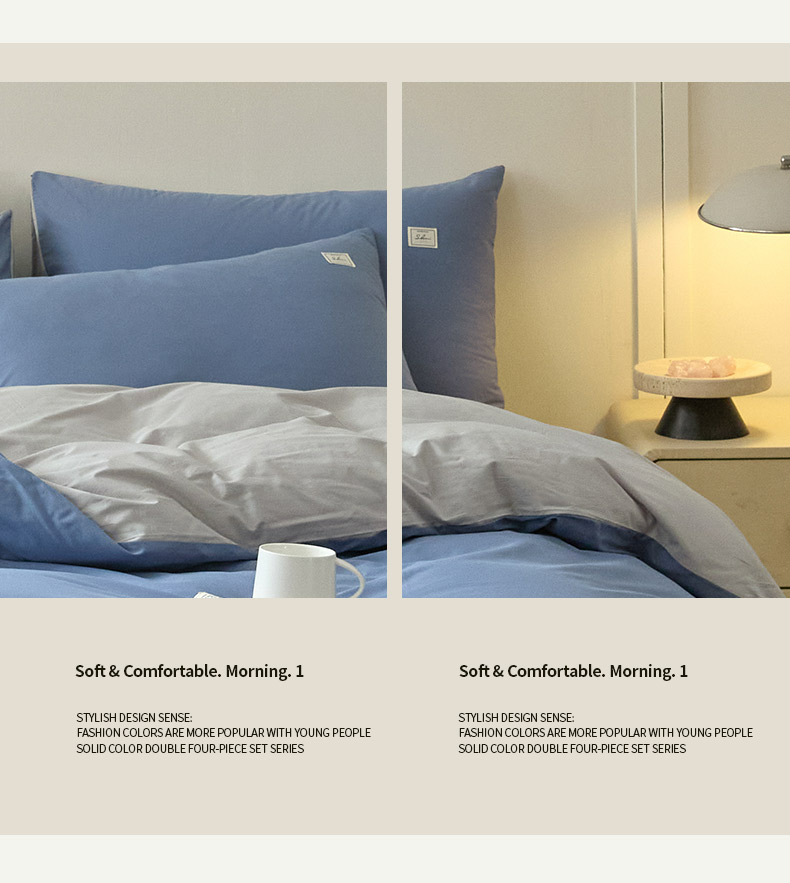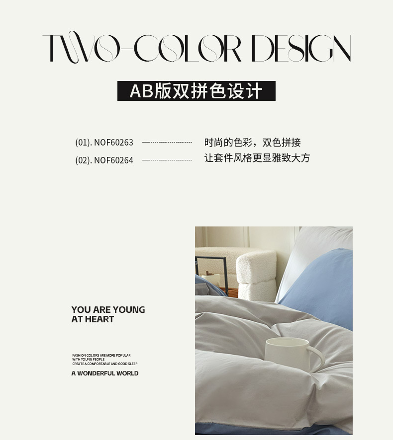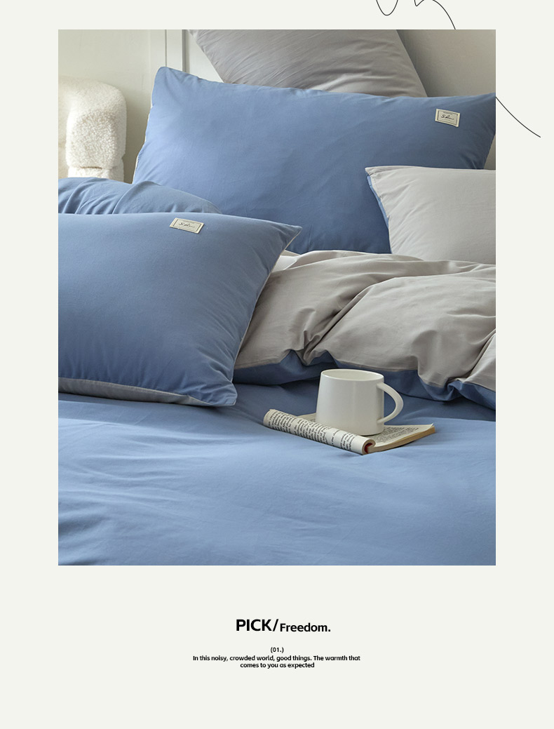 当前位置: 91家纺网 > 商品网购 > 床品套件 > 四件套 > 全棉普通四件套 > ab家纺 2025新款色织全棉40支水洗棉四件套--双拼第二组 宾利蓝浅灰