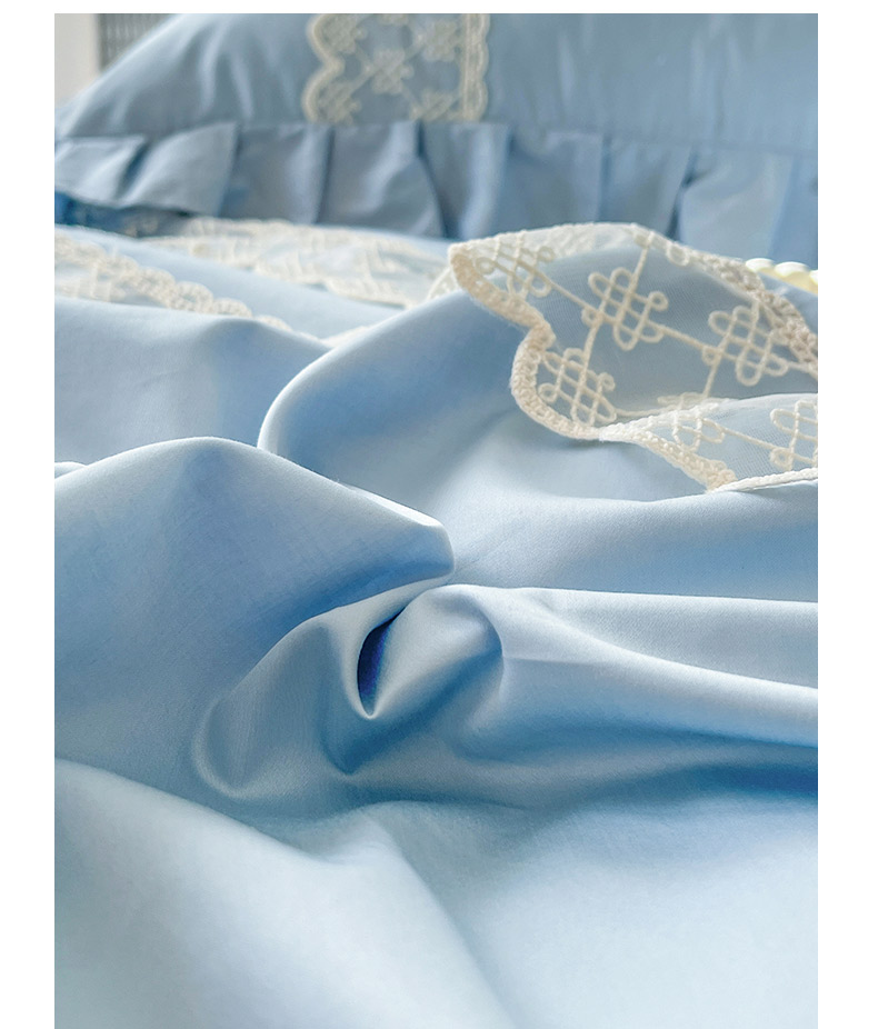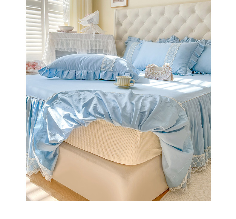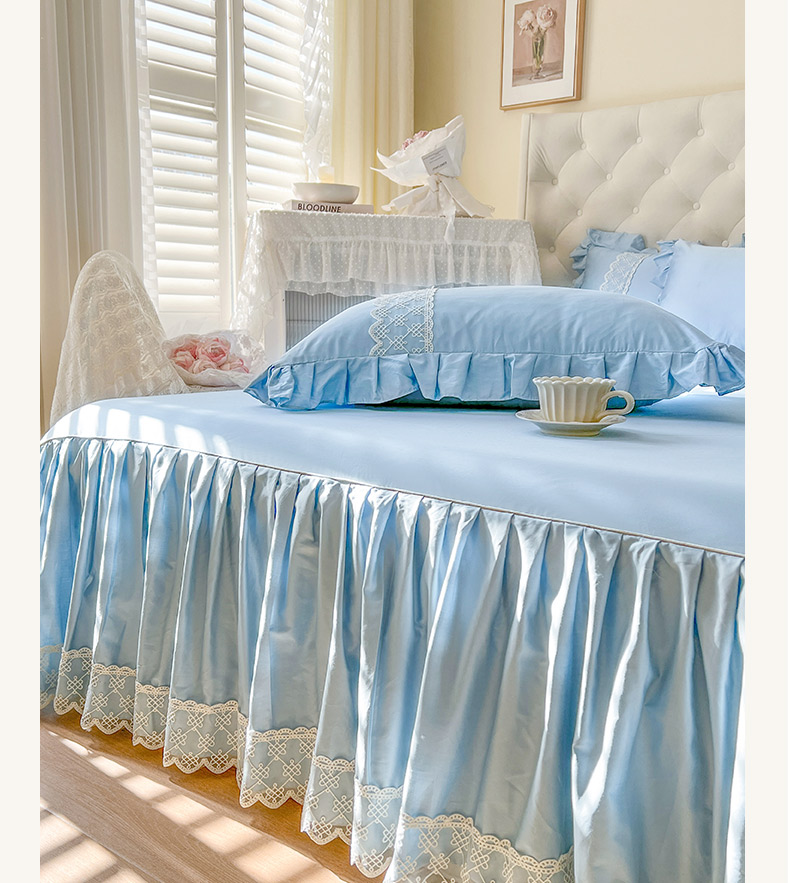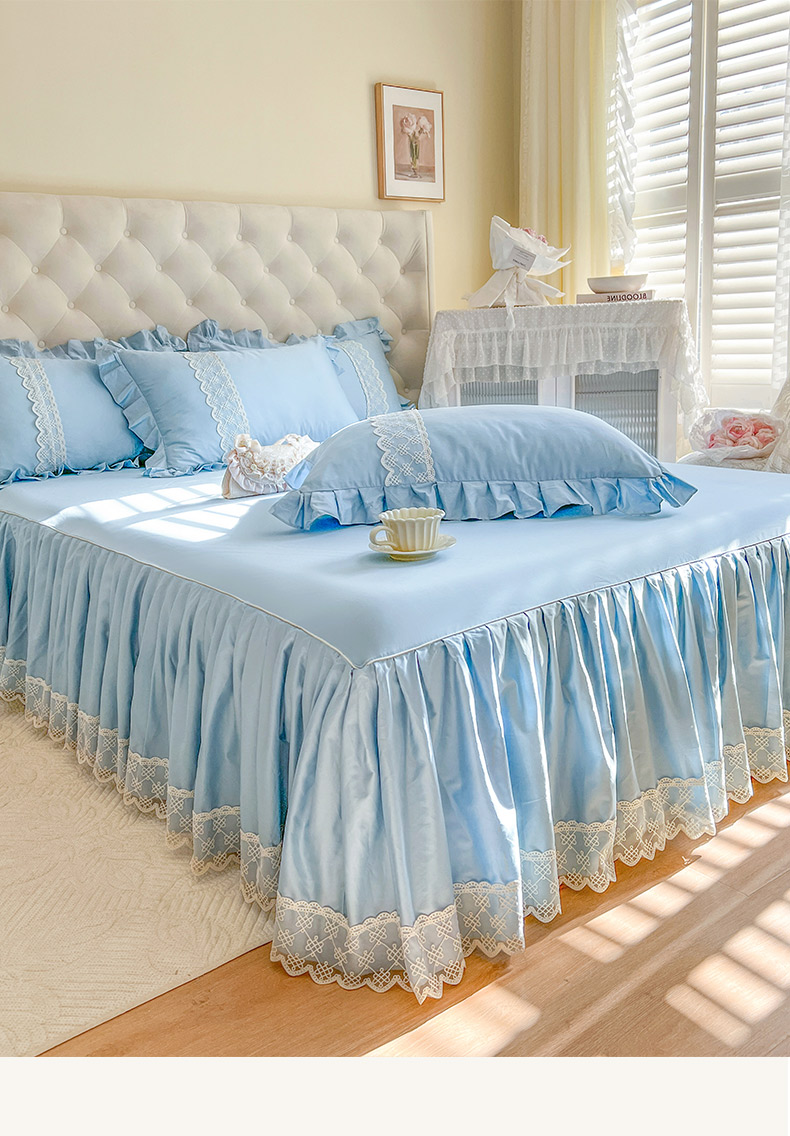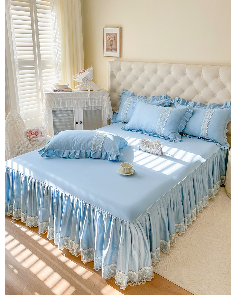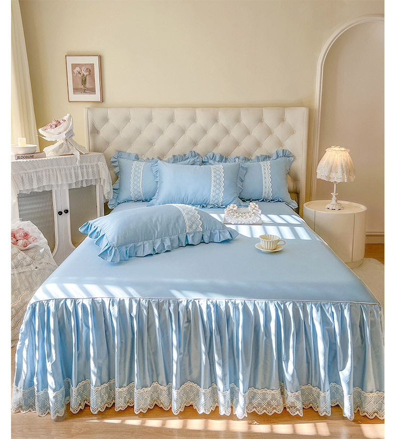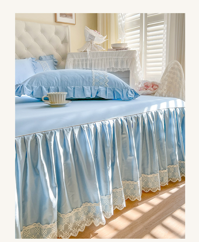 恋尚 2025新款60贡缎长绒棉床笠裙款三件套-赫朵 赫朵-天空蓝