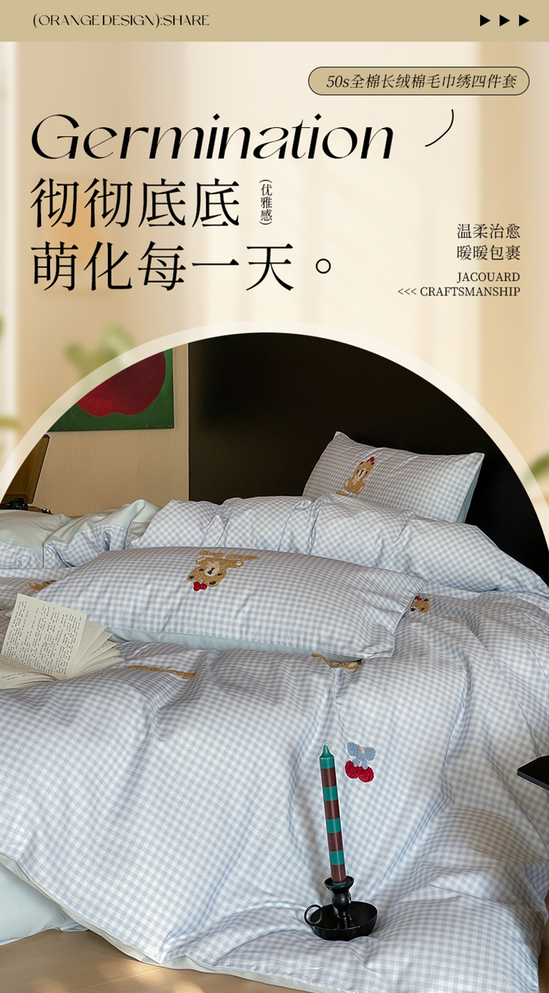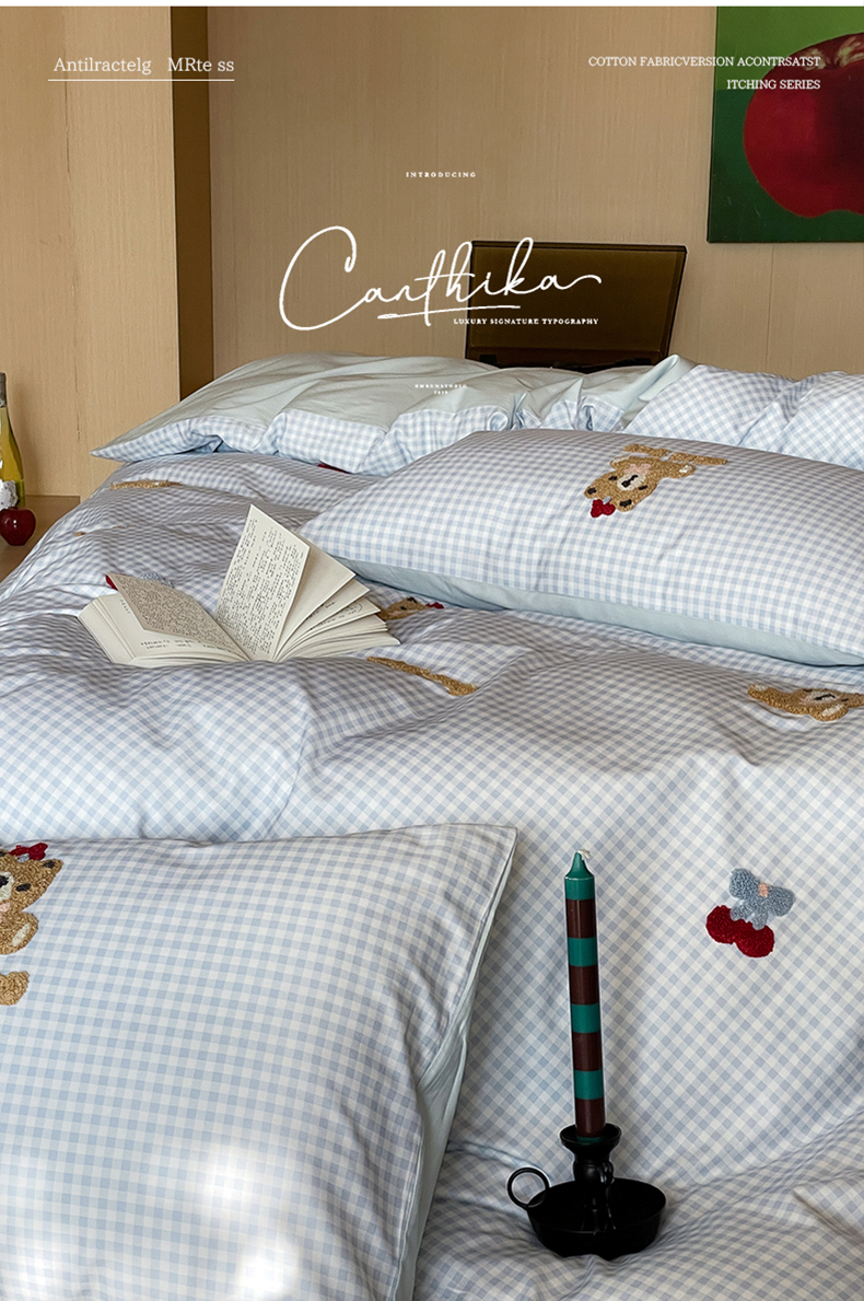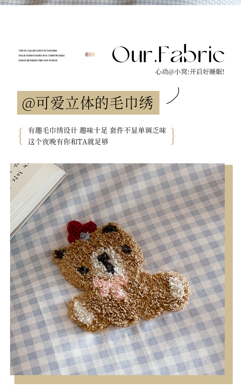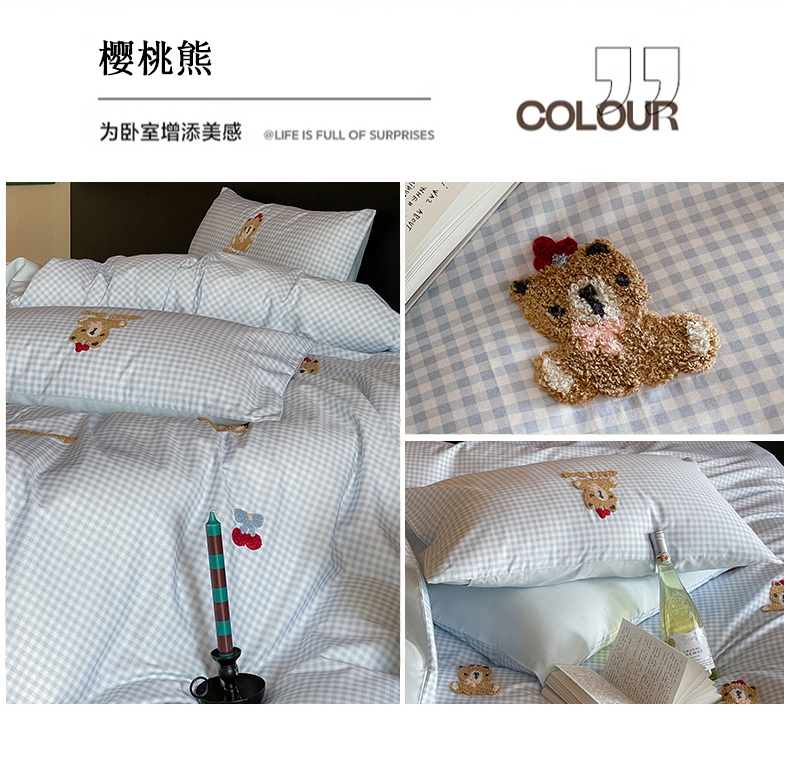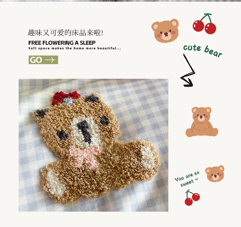 当前位置: 91家纺网 > 商品网购 > 床品套件 > 四件套 > 毛巾绣四件套 > FORTWO家纺 2025新款全棉长绒棉格子卡通毛巾绣四件套 樱桃熊