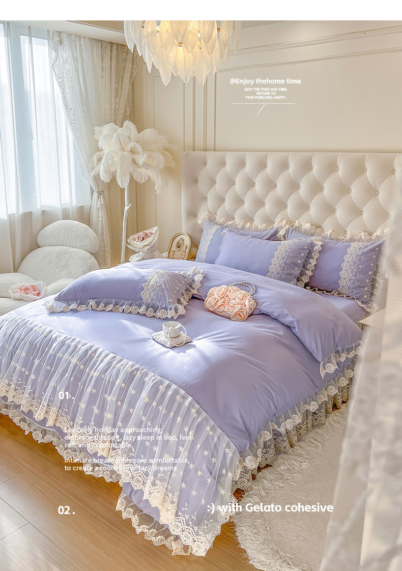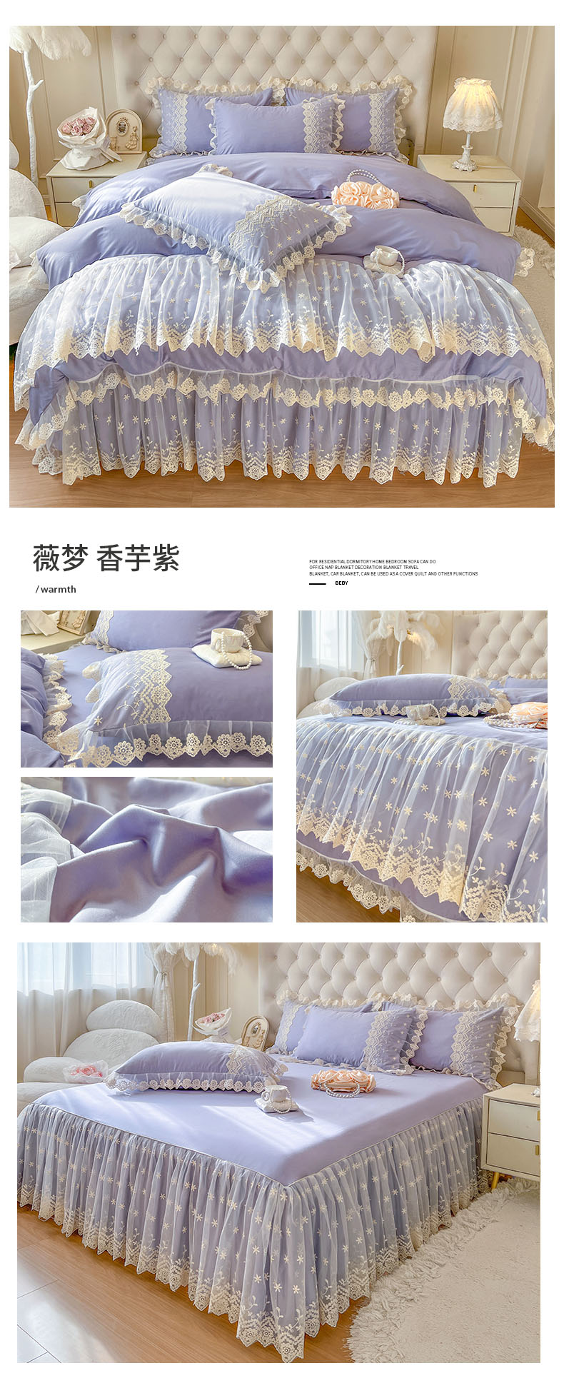 当前位置: 91家纺网 > 商品网购 > 床品套件 > 四件套 > 全棉普通四件套 > 恋尚 2025新款60贡缎长绒棉床笠裙款四件套-薇梦 薇梦-香芋紫
