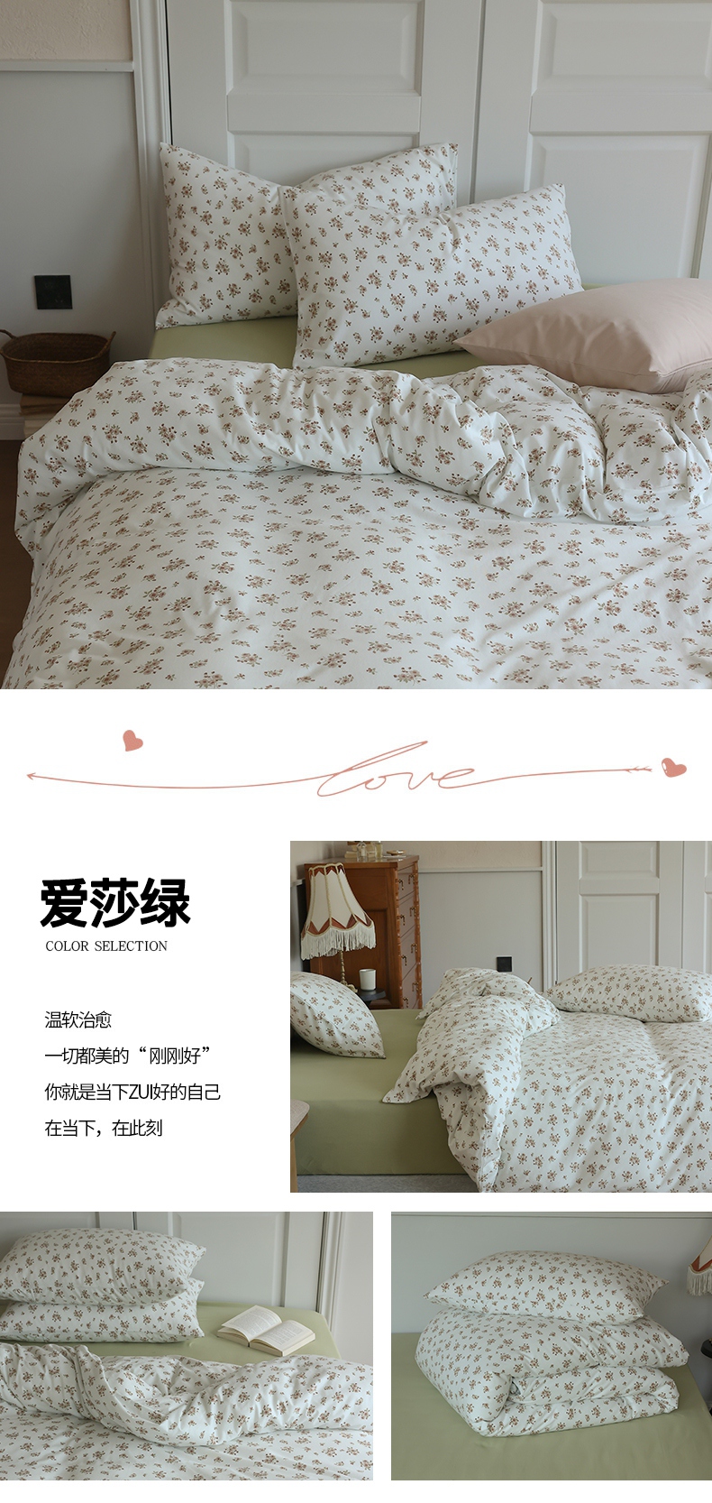 商品名称:2025春夏新品母婴A类全棉纯棉针织棉软糯糯清新小碎花床单款四件套 爱莎绿