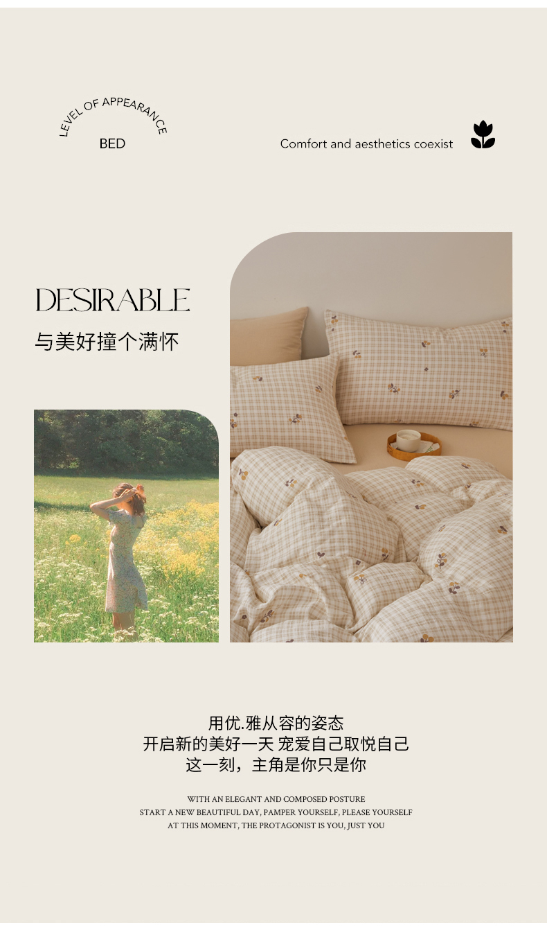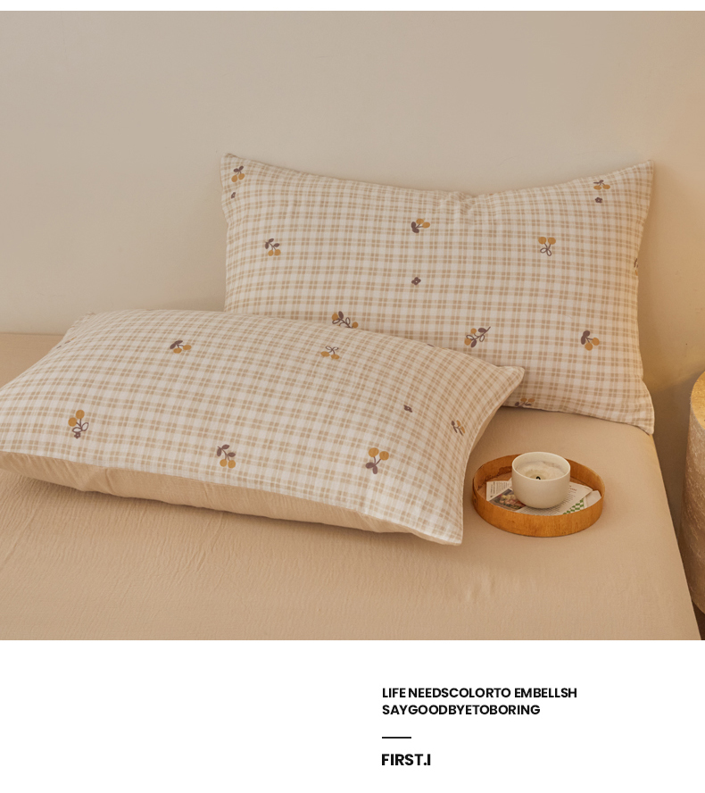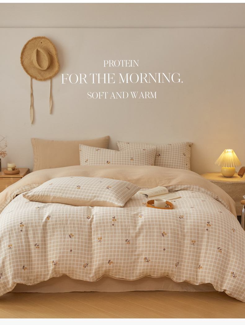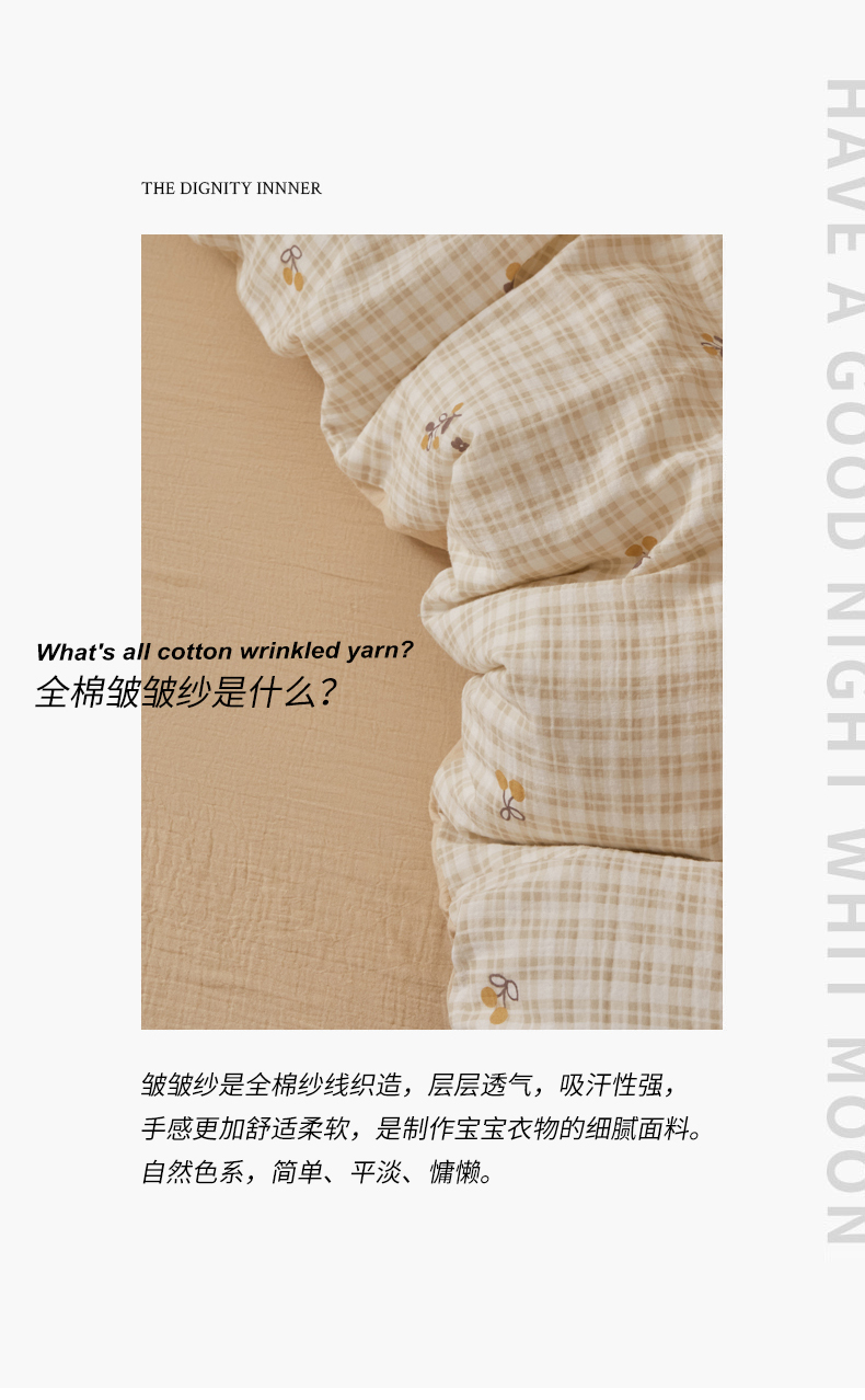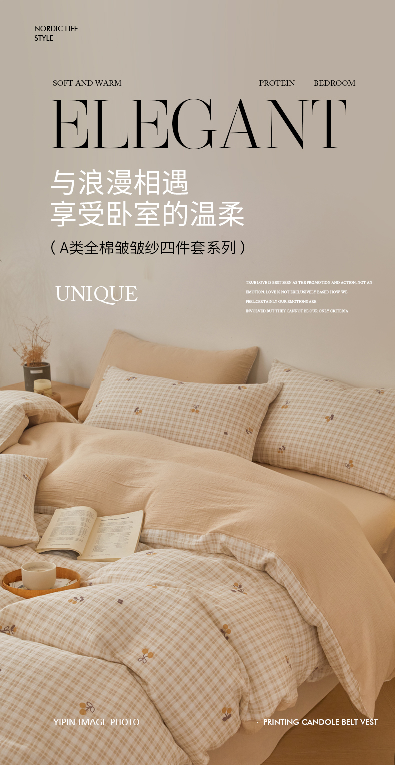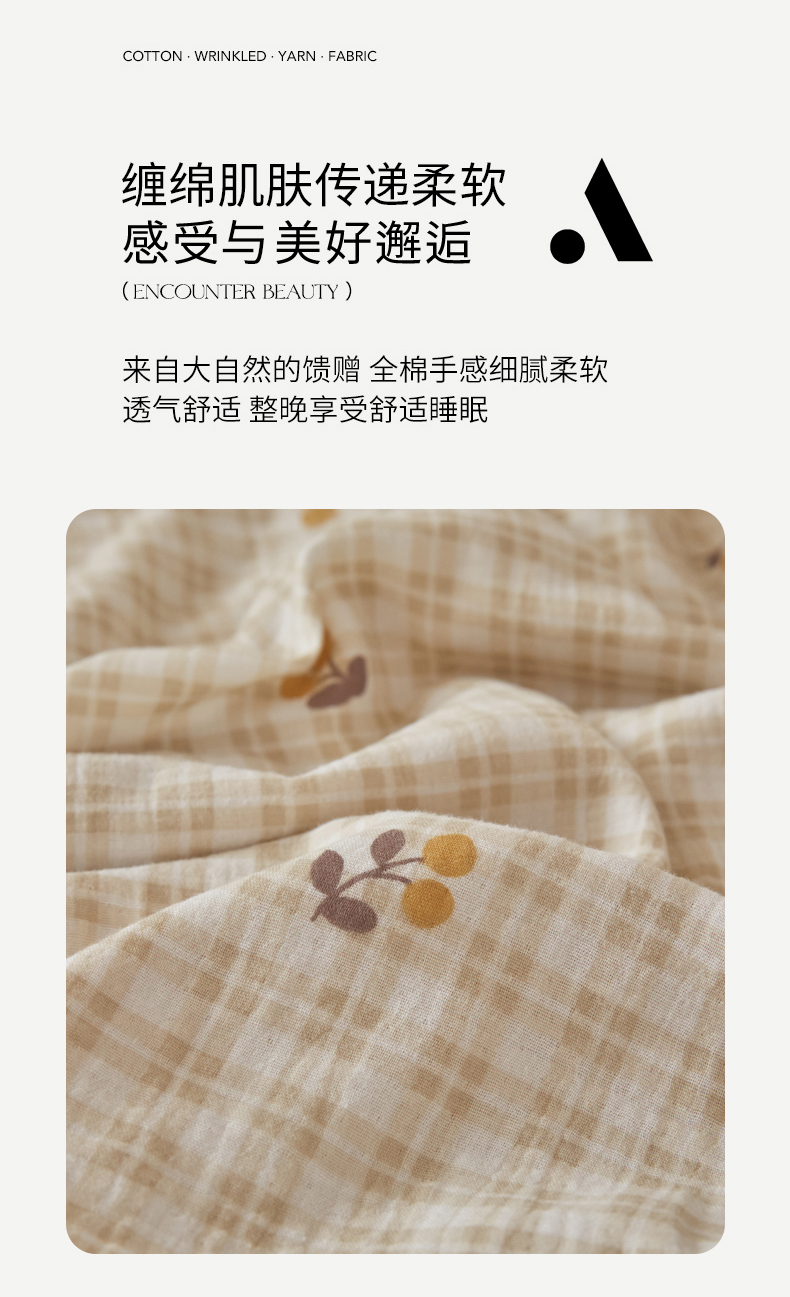 商品名称:618家纺 2025新款A类母婴级全棉三层纱皱皱纱纯棉四件套 小樱桃