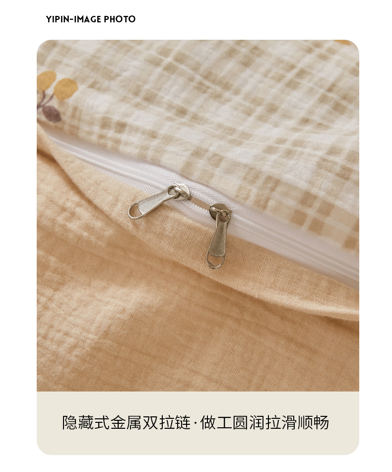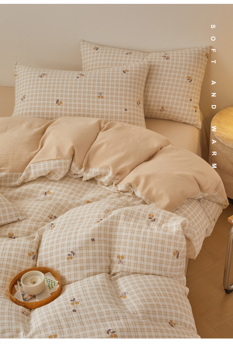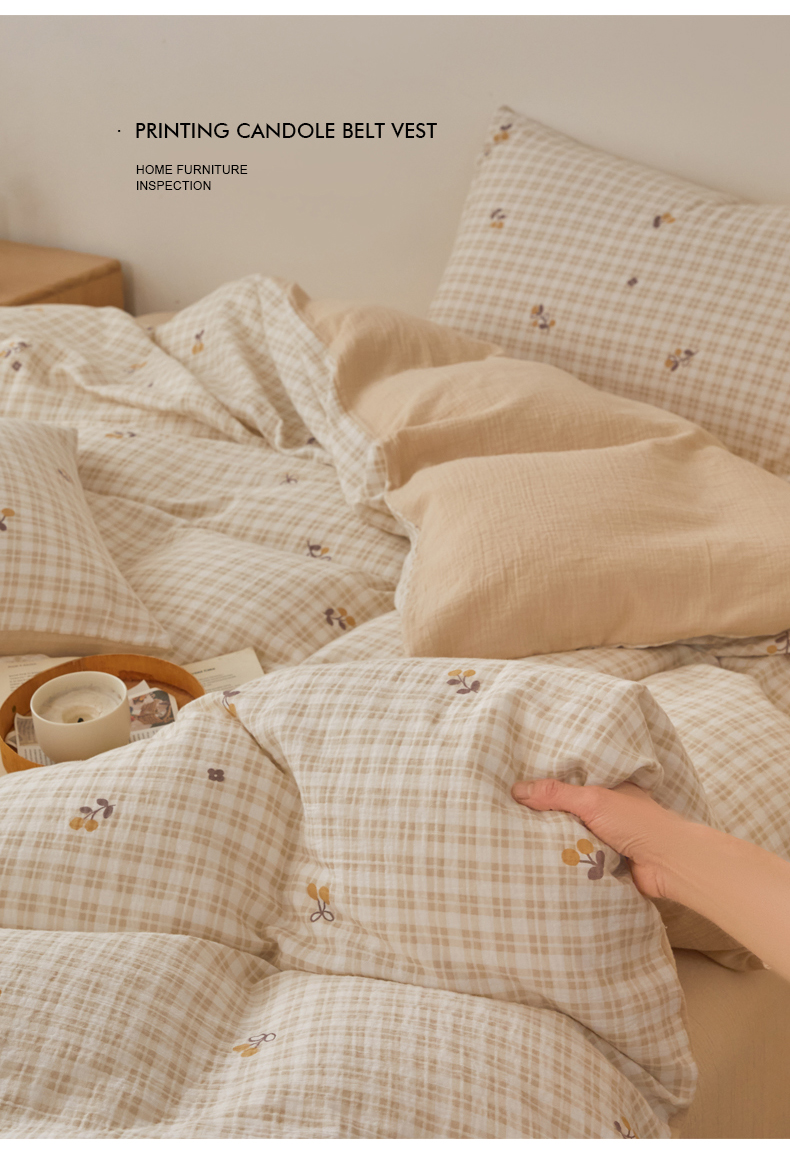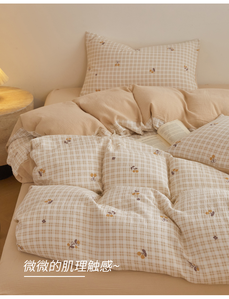 618家纺 2025新款A类母婴级全棉三层纱皱皱纱纯棉四件套 小樱桃