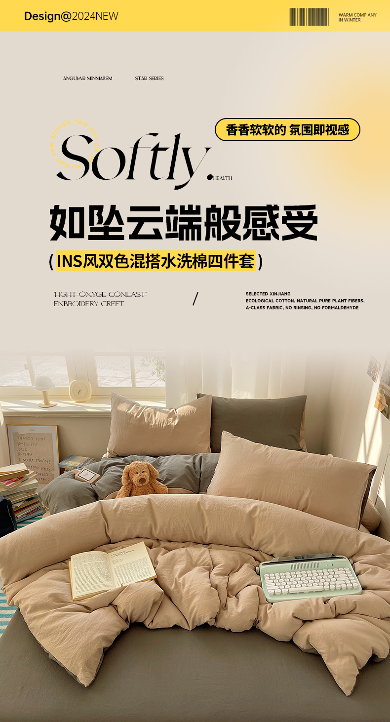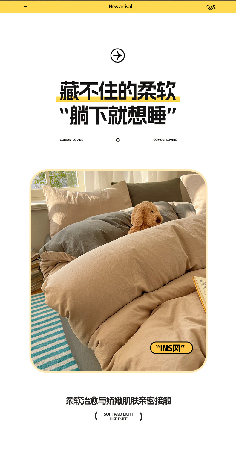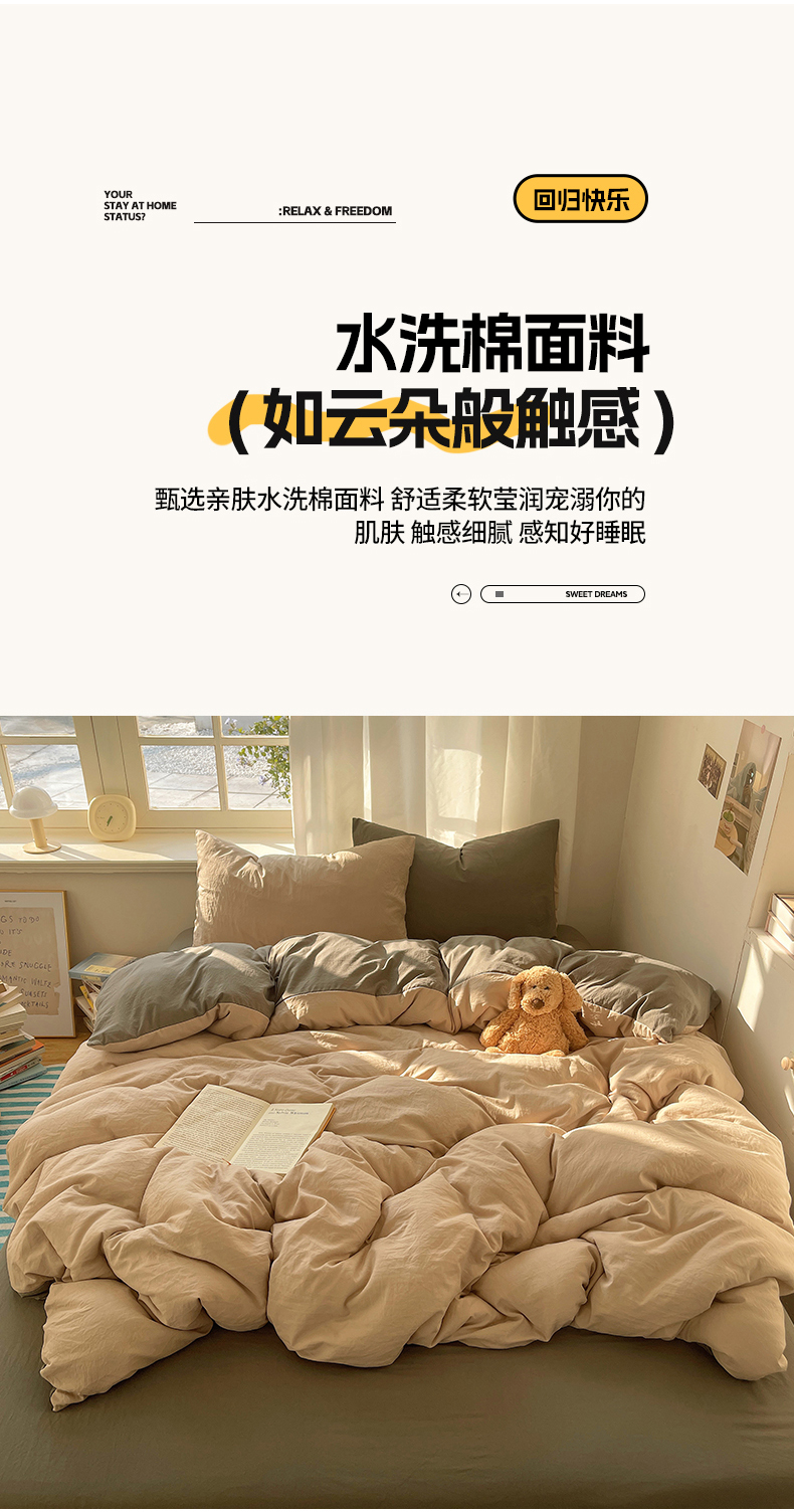 当前位置: 91家纺网 > 商品网购 > 床品套件 > 四件套 > 水洗棉四件套 > 阿曼达 2025新款ins博主风纯色混搭双色水洗m四件套 双色水洗m-驼灰