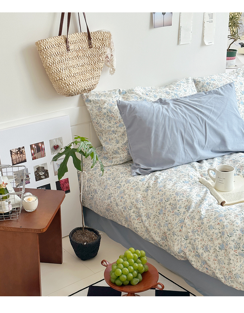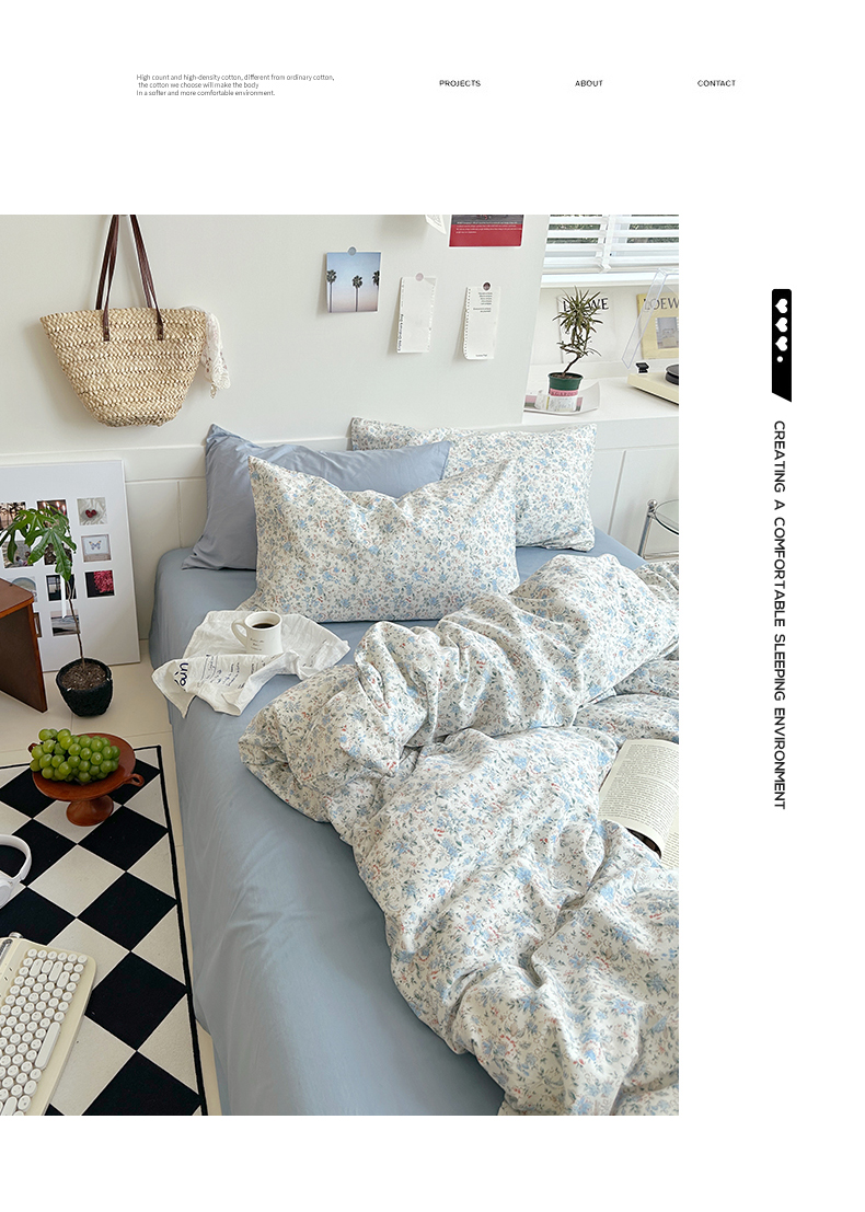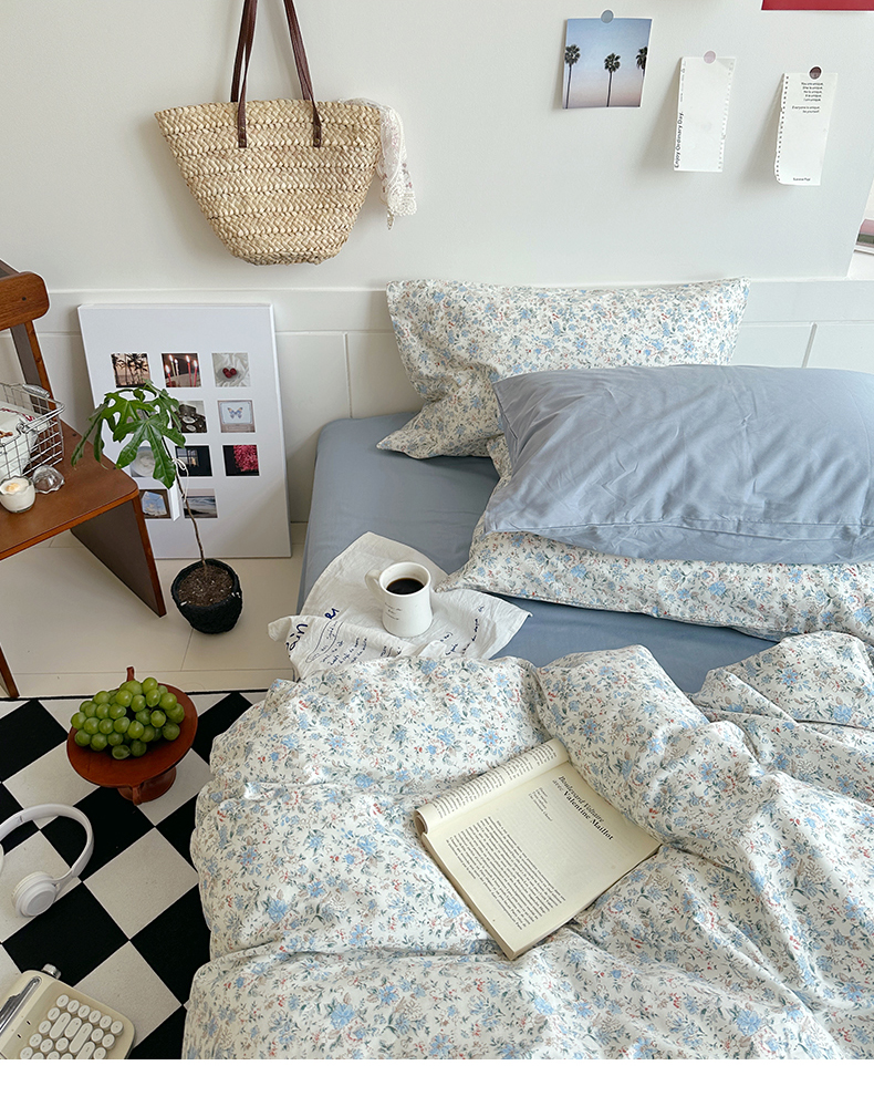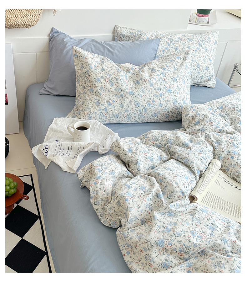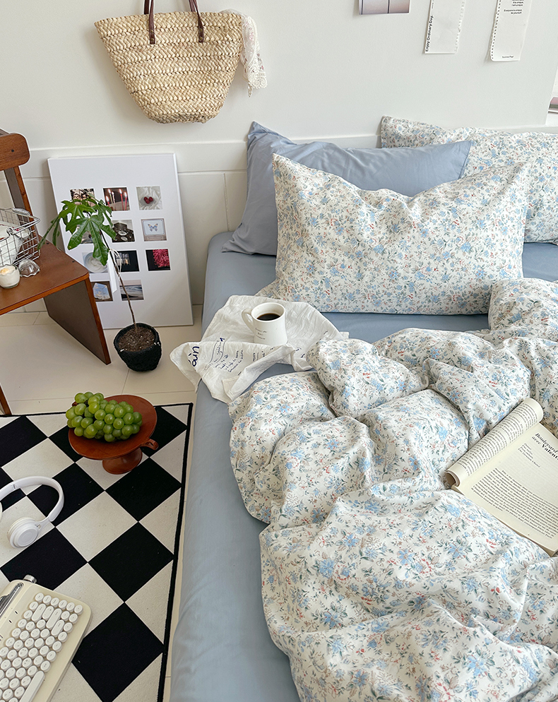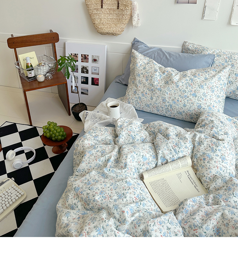 当前位置: 91家纺网 > 商品网购 > 床品套件 > 四件套 > 全棉普通四件套 > 2025新款纯棉小清新四件套小碎花学生三件套纯色床单印花枕套双人床笠 蓝莓厚乳(雾蓝)