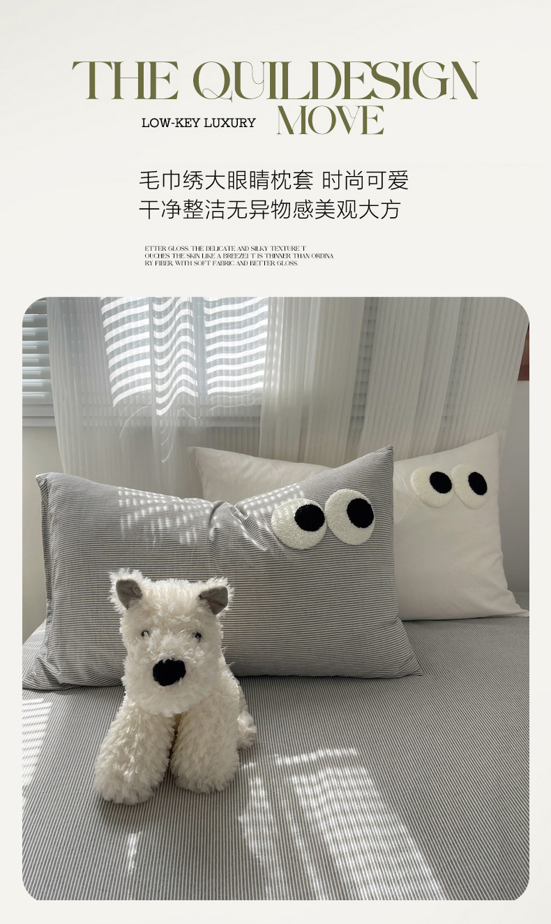 商品名称:丽涵家纺 2025新品全棉水洗棉大眼毛巾绣四件套-密条系 大眼密条黑1