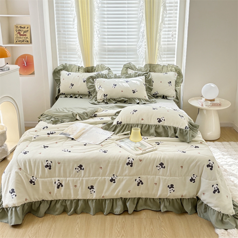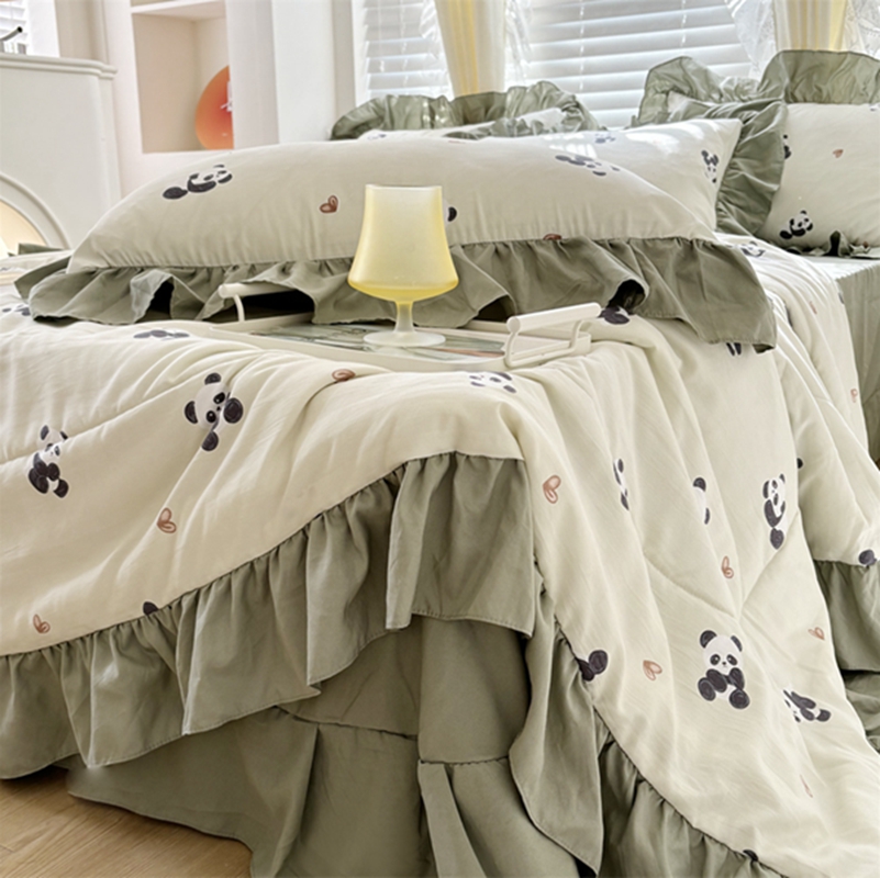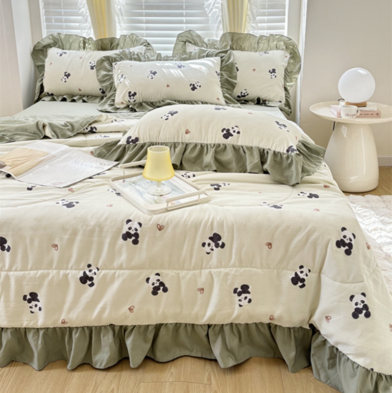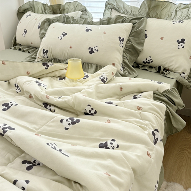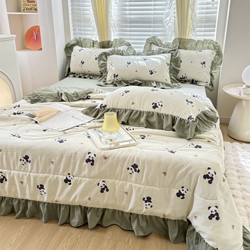 仟网汇 2025新款韩版糯糯棉花边夏被四件套田园法式 熊猫团团