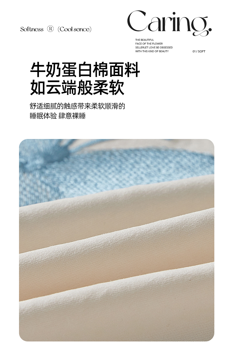 (总)莱越家纺 2025新款轻奢刺绣蝴蝶牛奶蛋白棉四件套高档纯色亲肤棉双拼床单被套床笠式