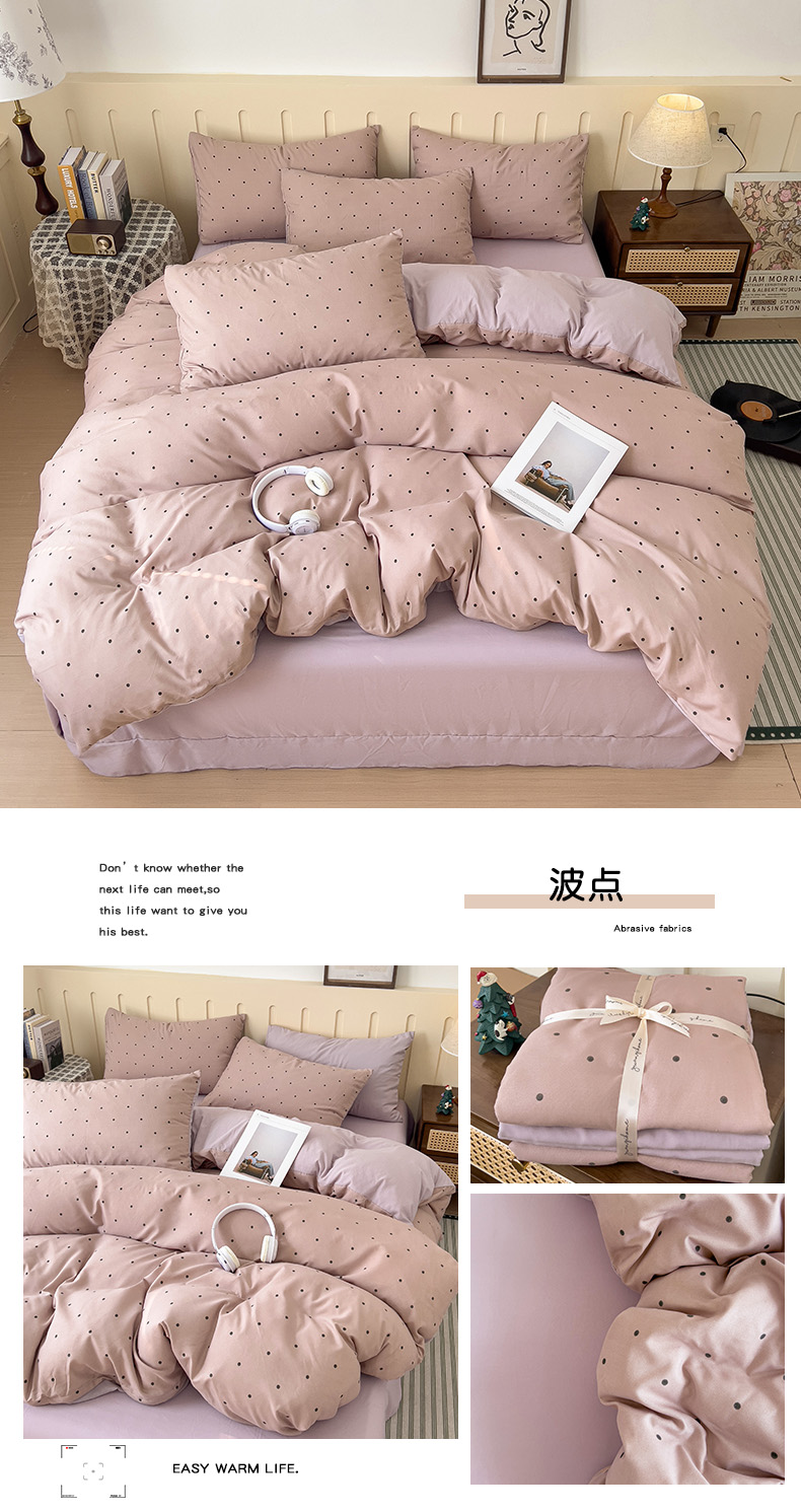 金梦拉家纺 2025爆款新款A类加厚有氧针织棉双层纱四件套(吊边版)波点