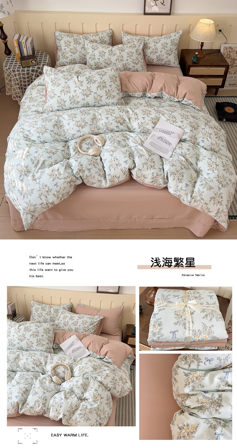 (总)金梦拉家纺 2026春夏韩版花边款小碎花古法水洗仿棉A类砂洗云小棉四件套,薄荷奶绿,海盐奶蓝,梦幻紫,柠檬奶黄,芝士蜜桃,海盐奶咖