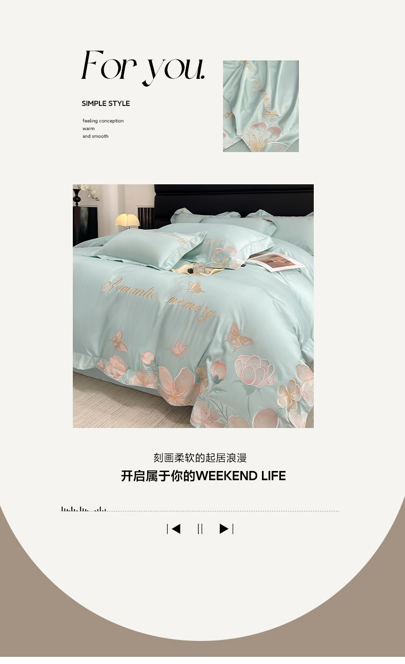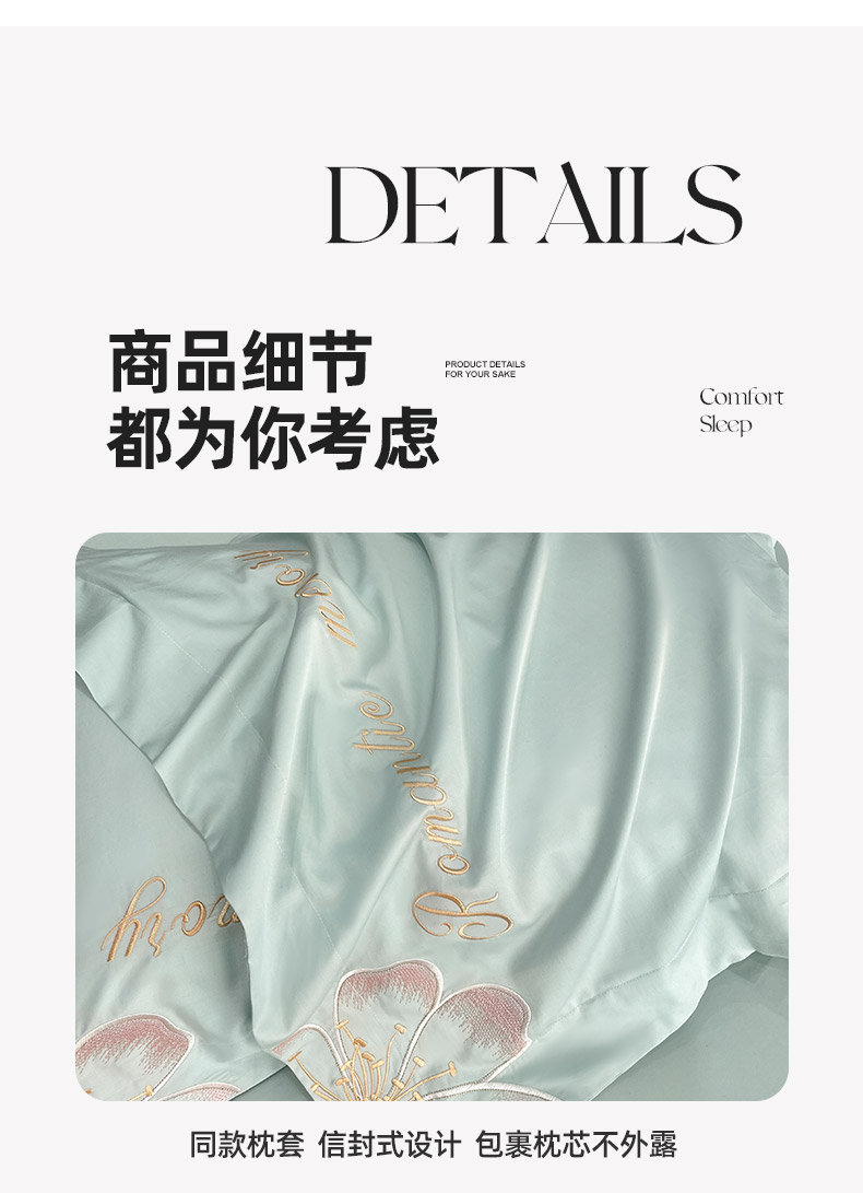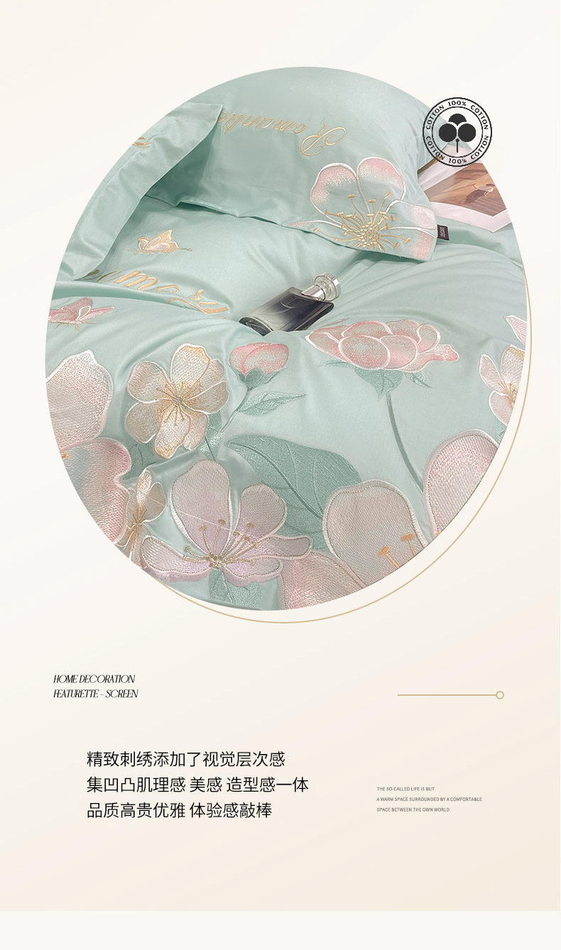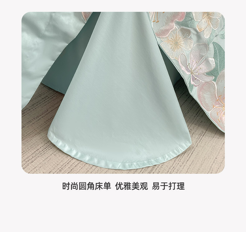 商品名称:2025春夏A类100支长绒棉四件套纯棉全棉轻奢风床单被套重工刺绣床上用品-花漫屿 花漫屿-茶绿