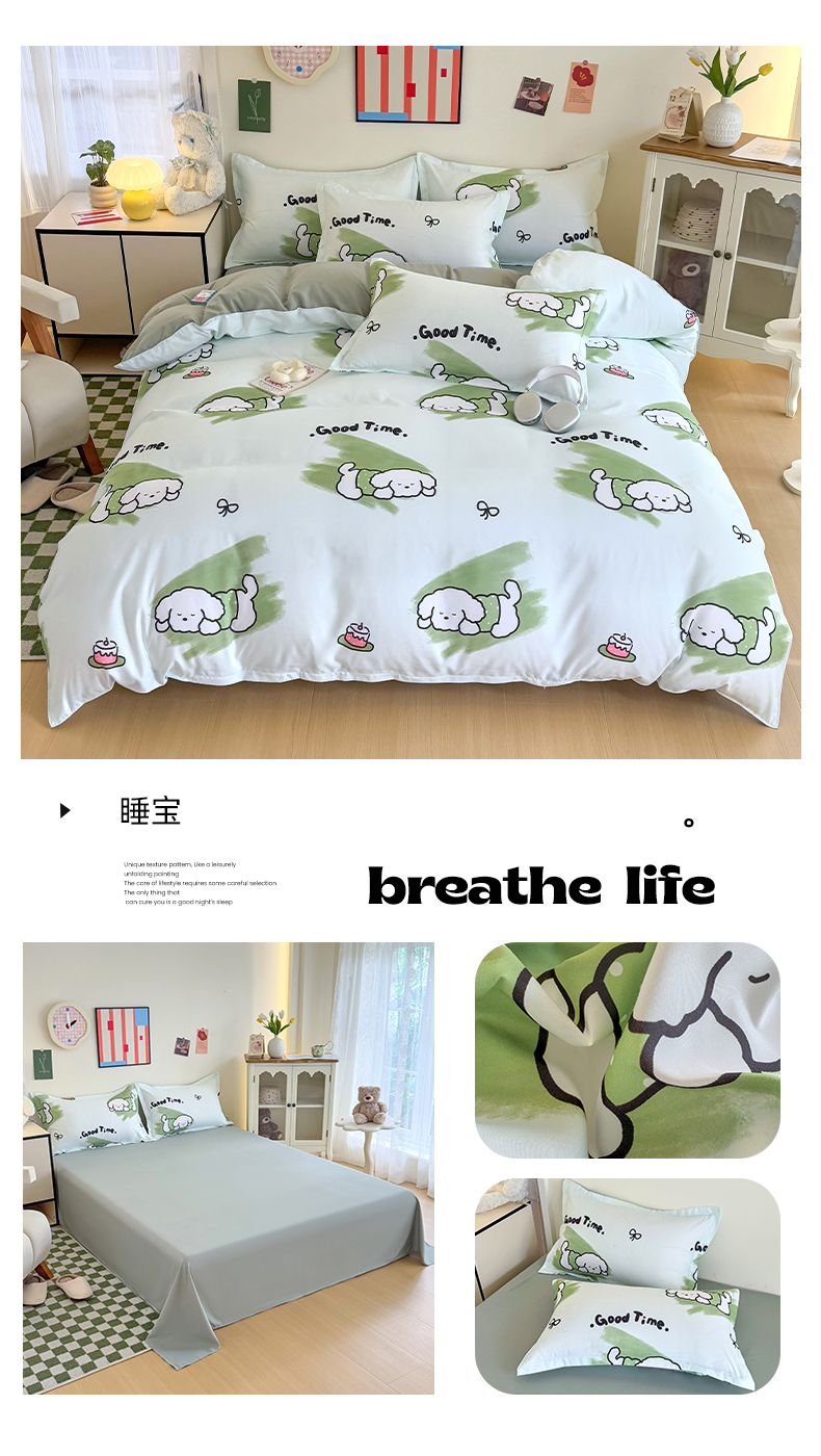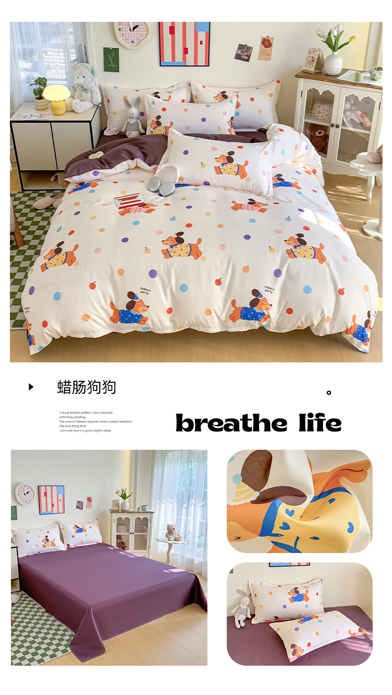 (总)卡斯诺 2025新款芦荟棉四件套7月新花型,萌萌狗,布丁狗,丛林猫,蝶恋花,粉色小熊,开心树,绿野仙踪,美好时光,萌兔宝贝,迷恋,喵星人,墨迹,甜心汪汪,旺旺小狗,幸运女孩,熊猫日记,着迷