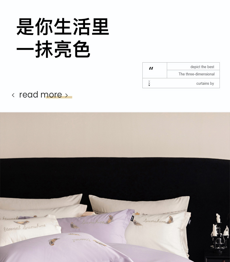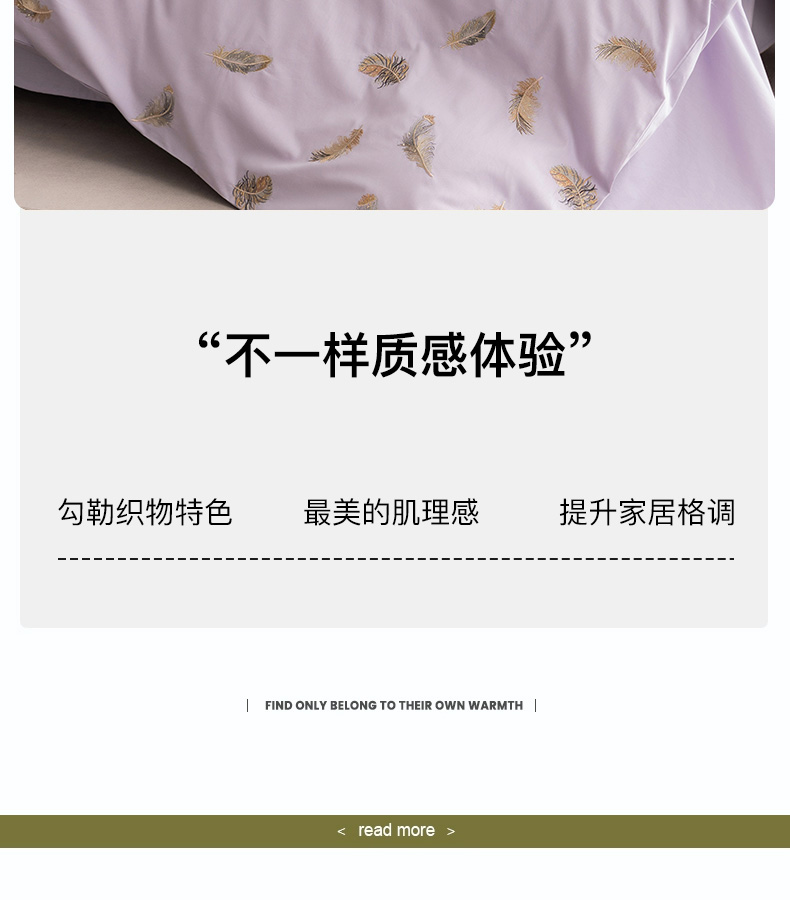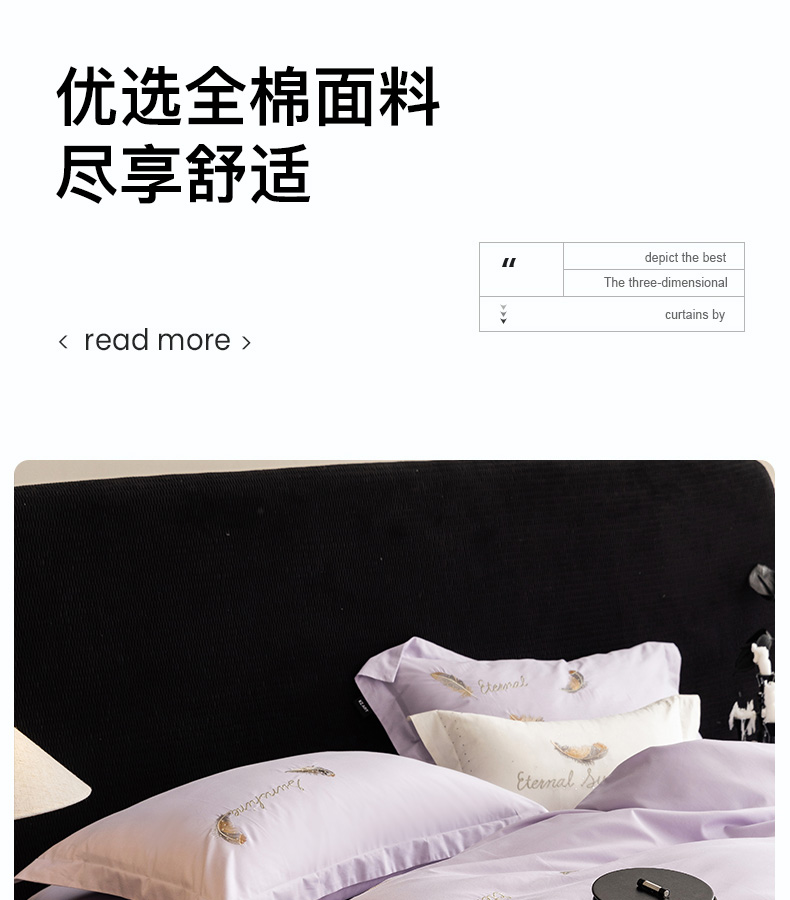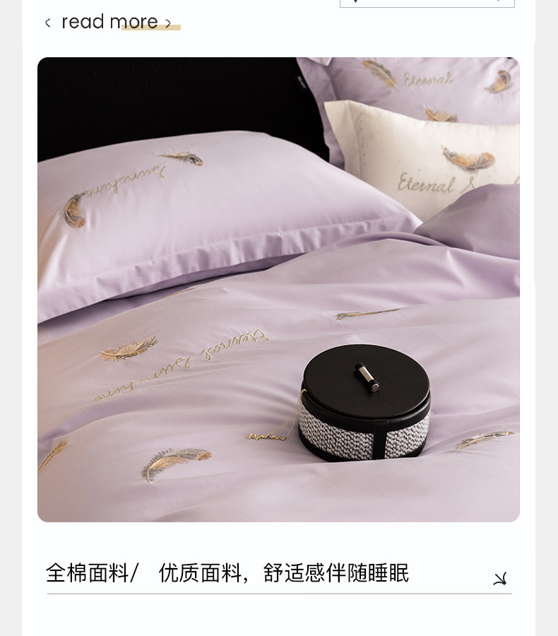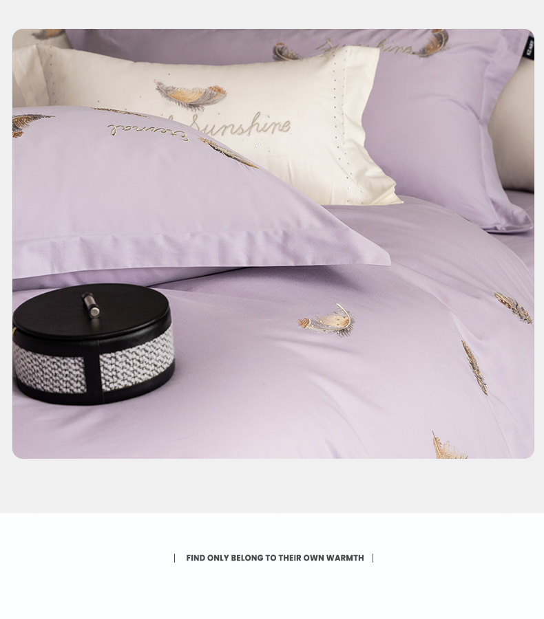 商品名称:卡姿家纺 2025春夏新款轻奢优雅刺绣金丝羽系列四件套 金丝羽紫