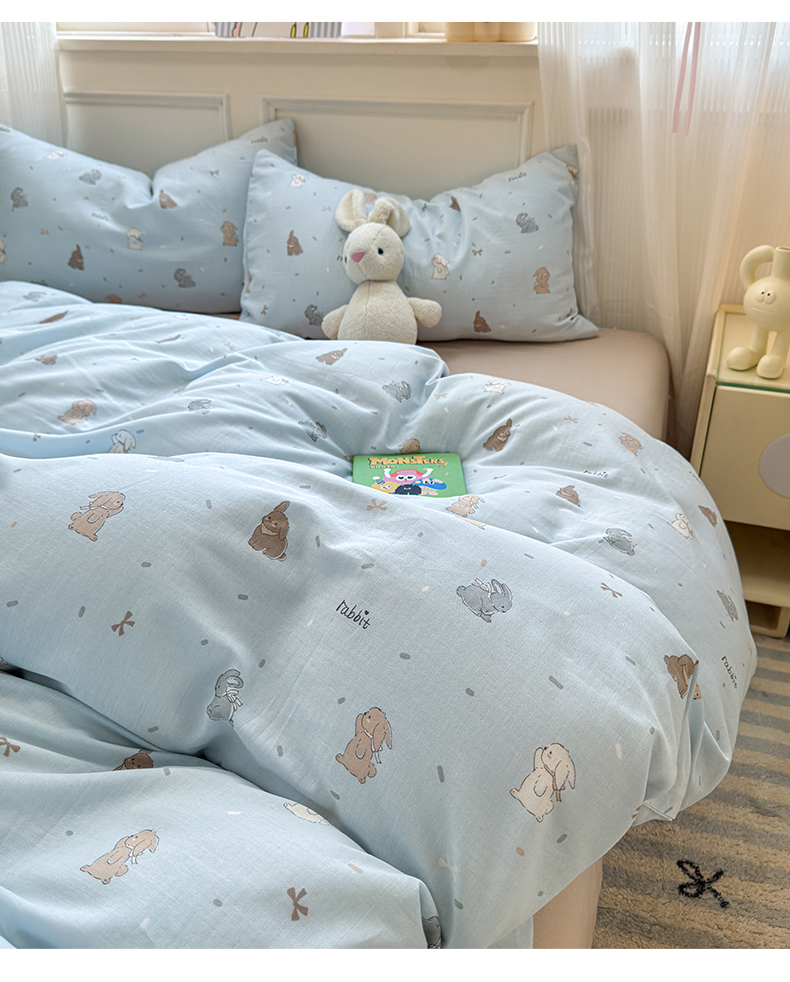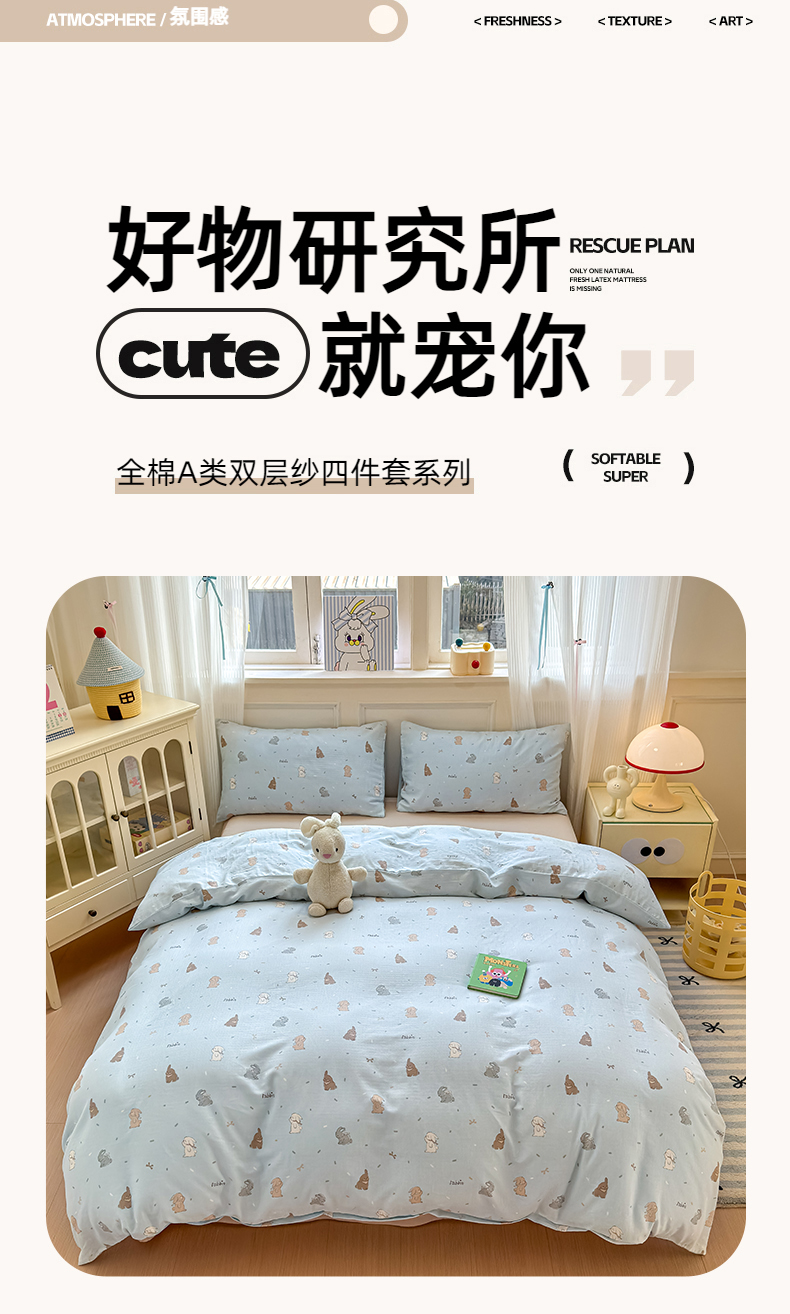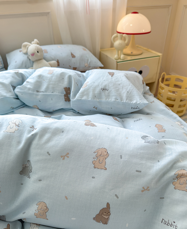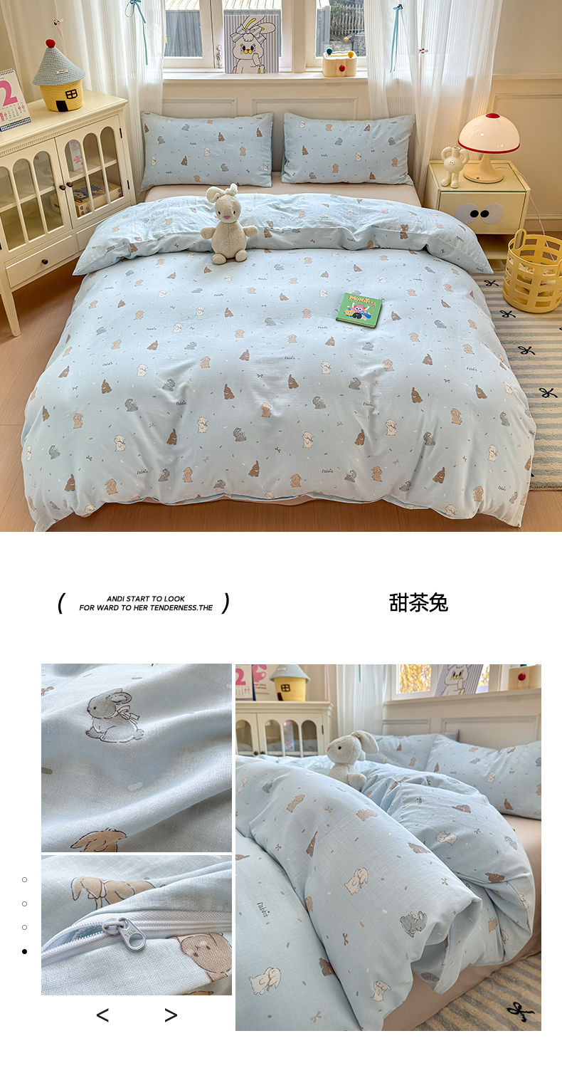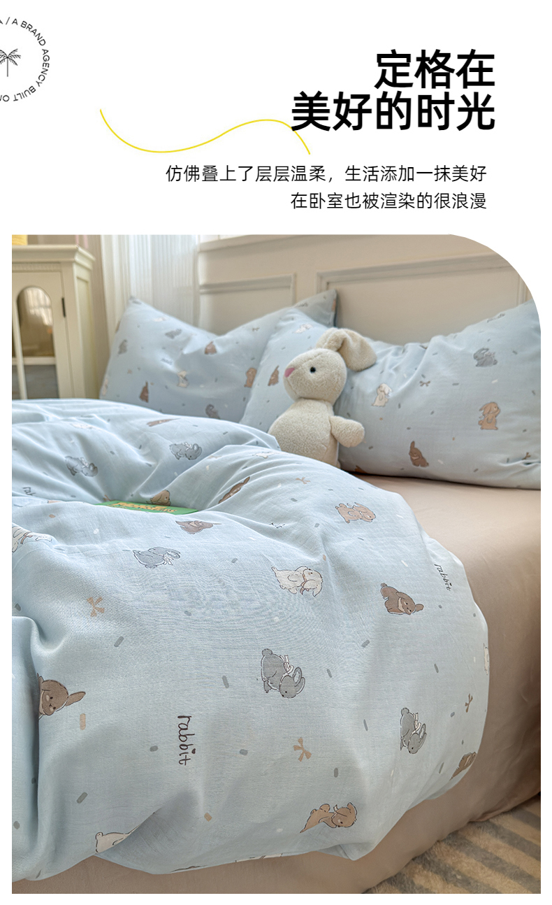 商品名称:2025新款全棉A类双层纱四件套系列-叠拍 甜茶兔