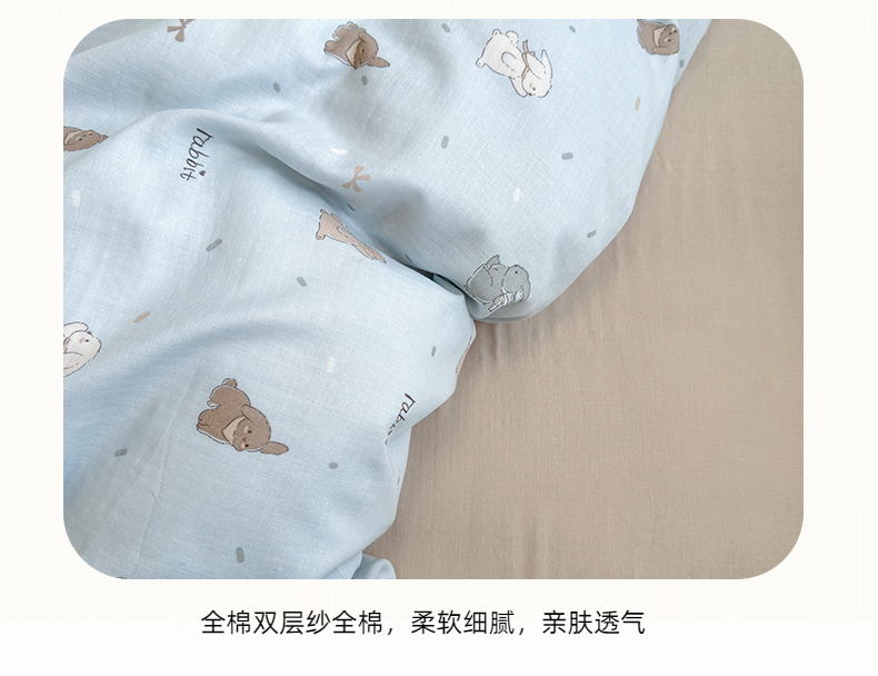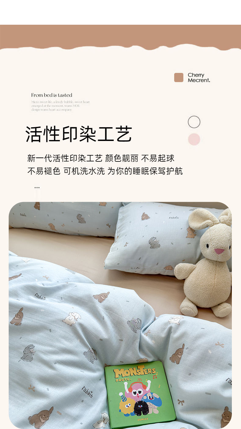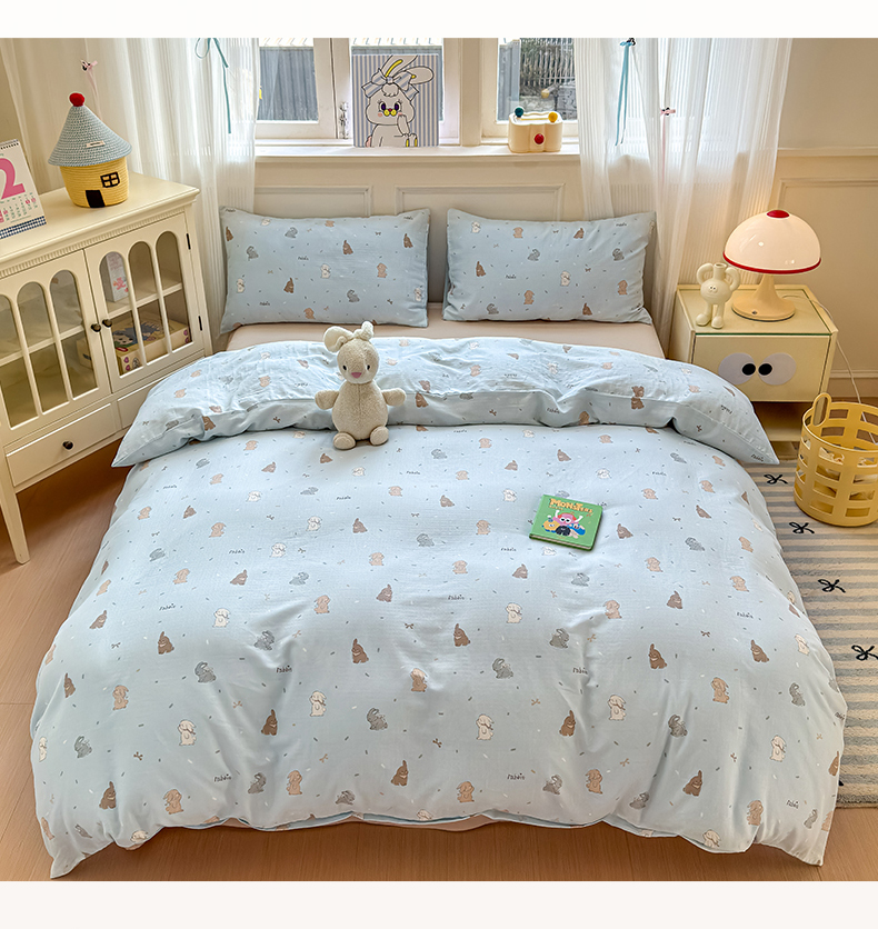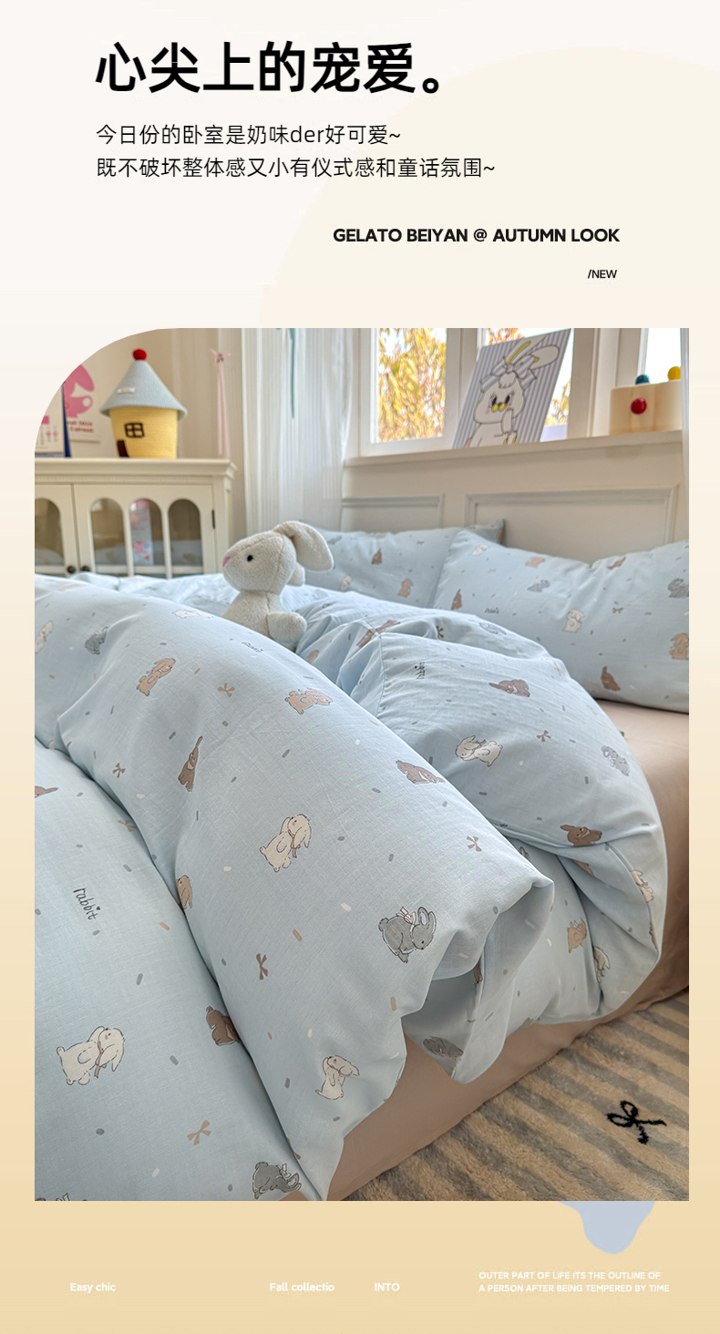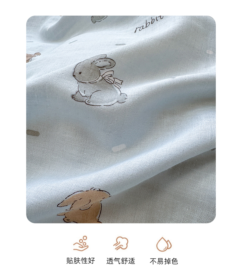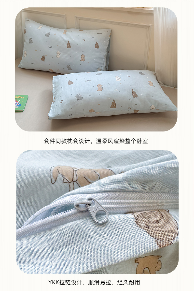 商品名称:2025新款全棉A类双层纱四件套系列-叠拍 甜茶兔