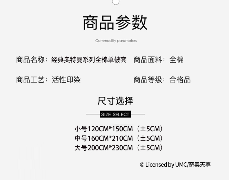 商品名称:蘭菲家纺 2025新款奥特曼全棉被套 无敌