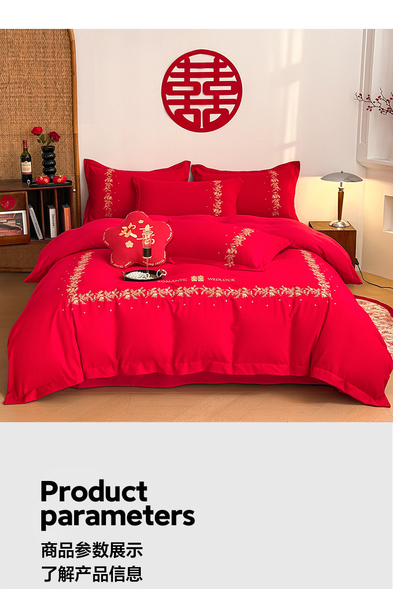 商品名称:花愿(原花纪) 2025新款水洗棉刺绣婚庆款四件套 永结同心