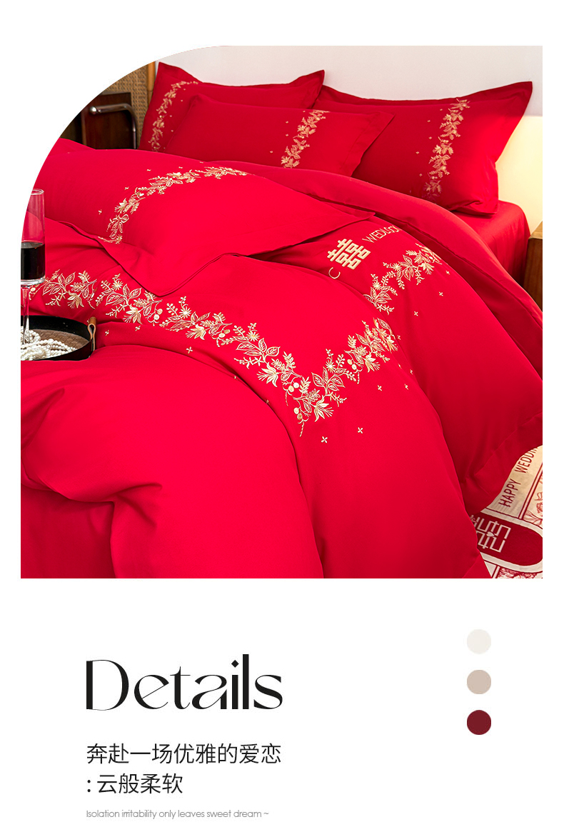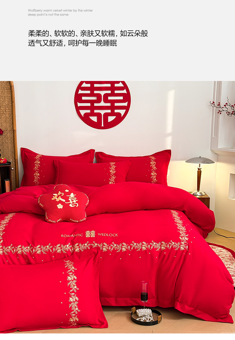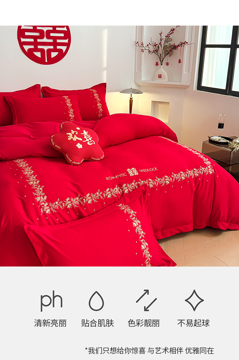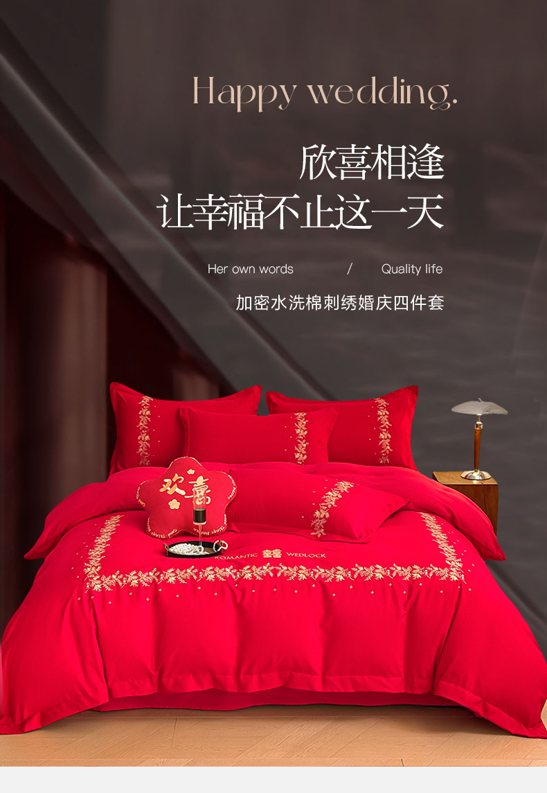 (总)花愿(原花纪) 水洗棉刺绣婚庆四件套,喜上加喜,禧悦,永结同心