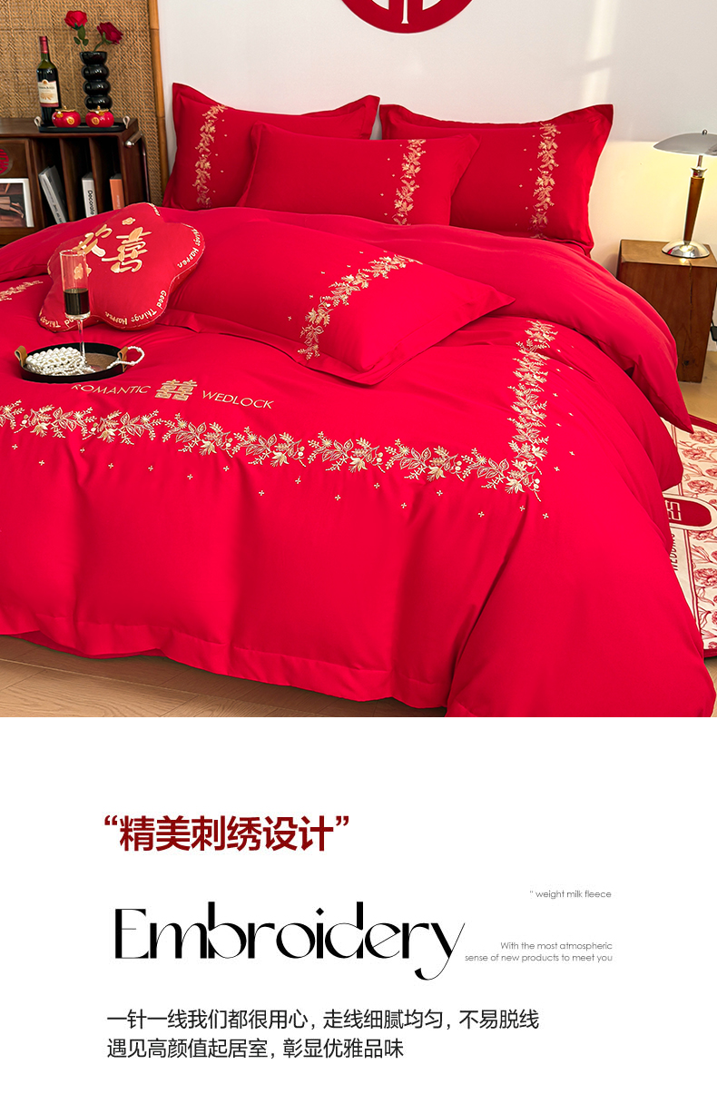 (总)花愿(原花纪) 2025新款水洗棉刺绣婚庆四件套系列,丹枫迎喜,欢喜,良缘,龙凤欢喜,玫瑰之恋,美满,如意,天禧,唯一,喜爱,心心相印,幸福,永恒之恋,钟爱一生