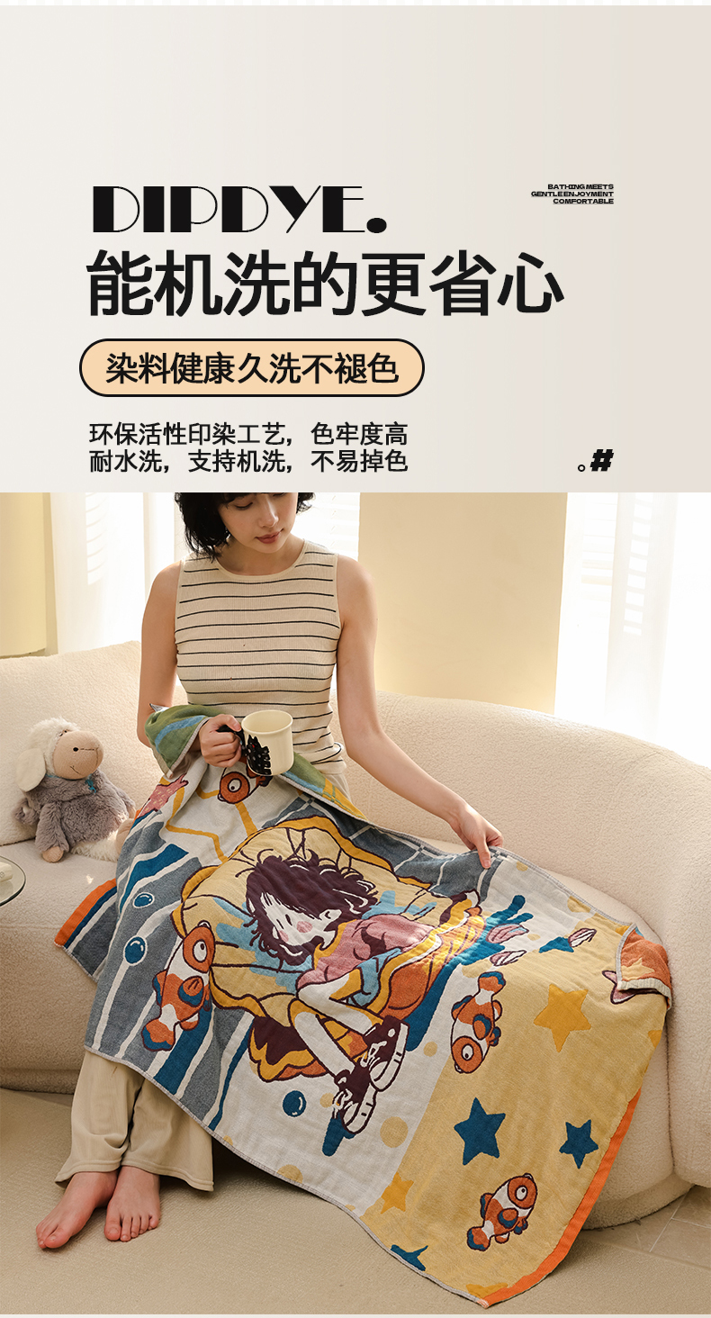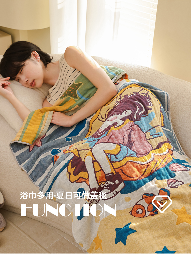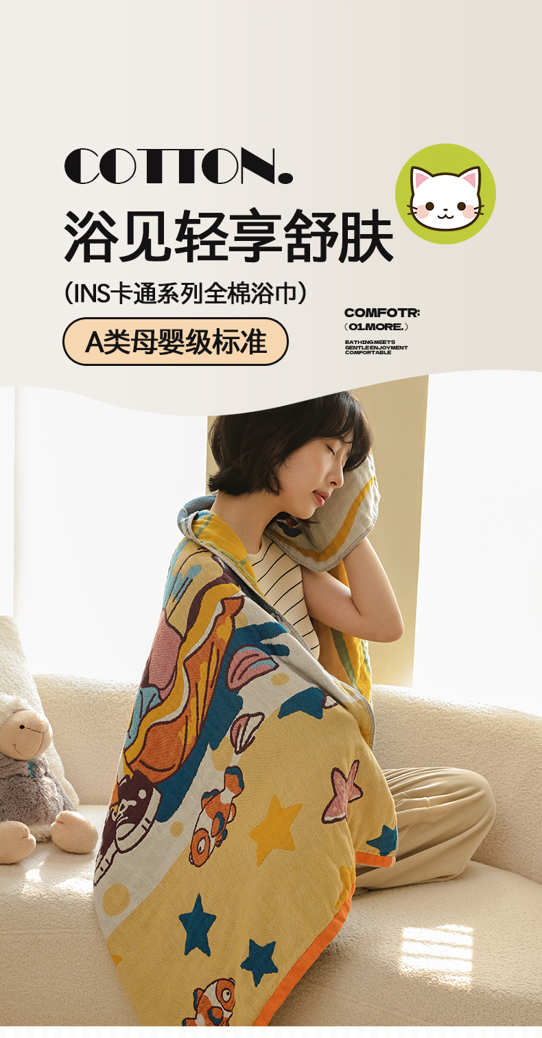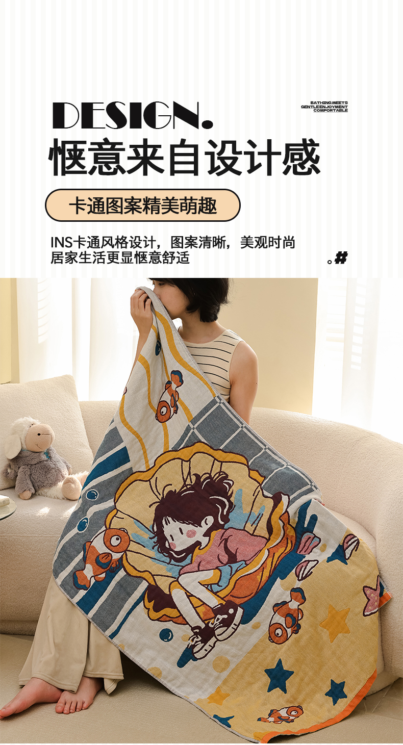 当前位置: 91家纺网 > 商品网购 > 居家日用 > 毛巾/浴巾/浴袍 > 浴巾 > 雯雨家纺 2025新款亲肤可爱全棉A类纱布浴巾 海域
