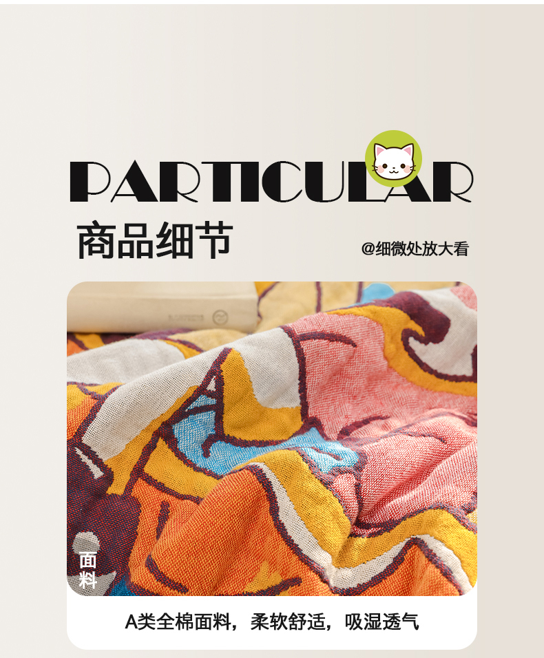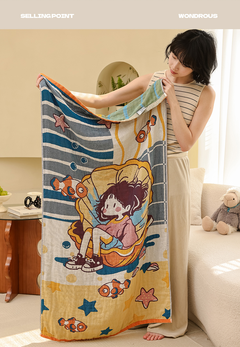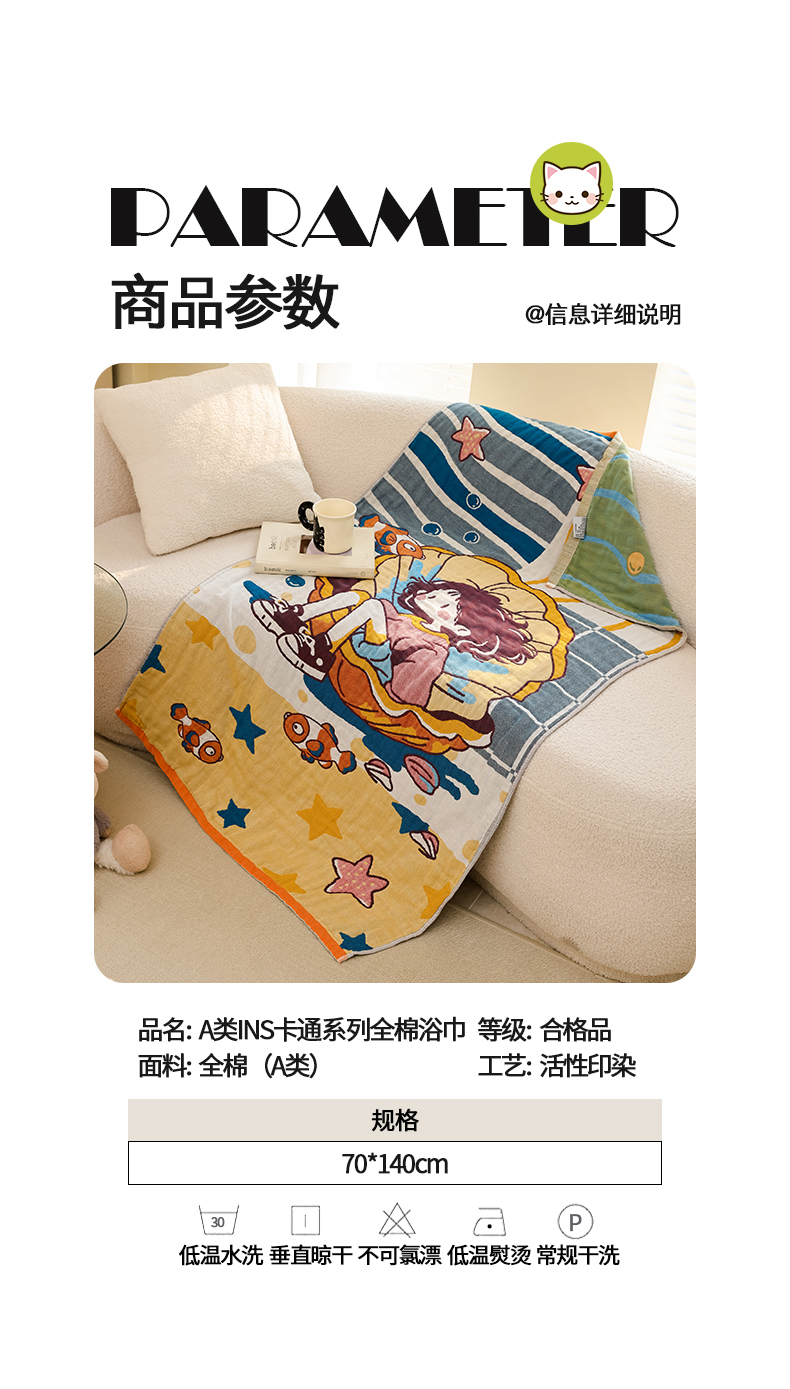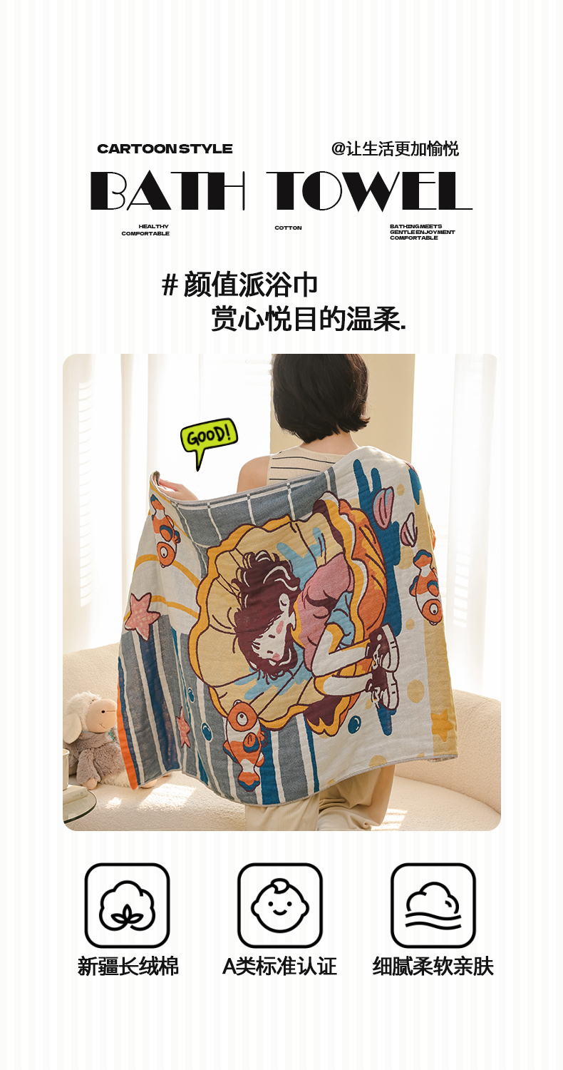 当前位置: 91家纺网 > 商品网购 > 居家日用 > 毛巾/浴巾/浴袍 > 浴巾 > 雯雨家纺 2025新款亲肤可爱全棉A类纱布浴巾 海域