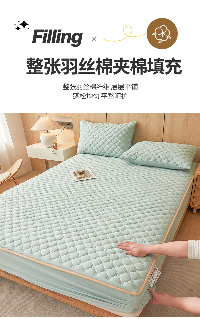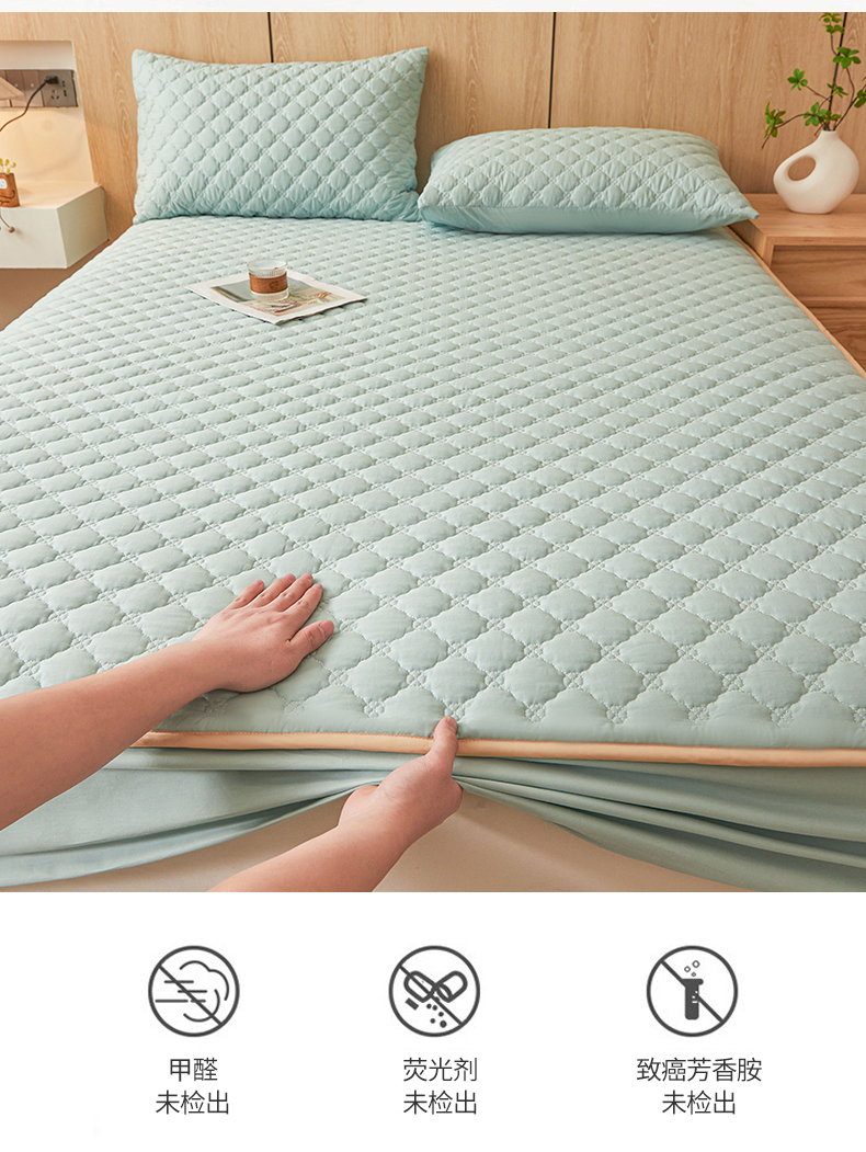 名优家纺 2025新款全棉夹棉床笠 幸运草-莫奈绿