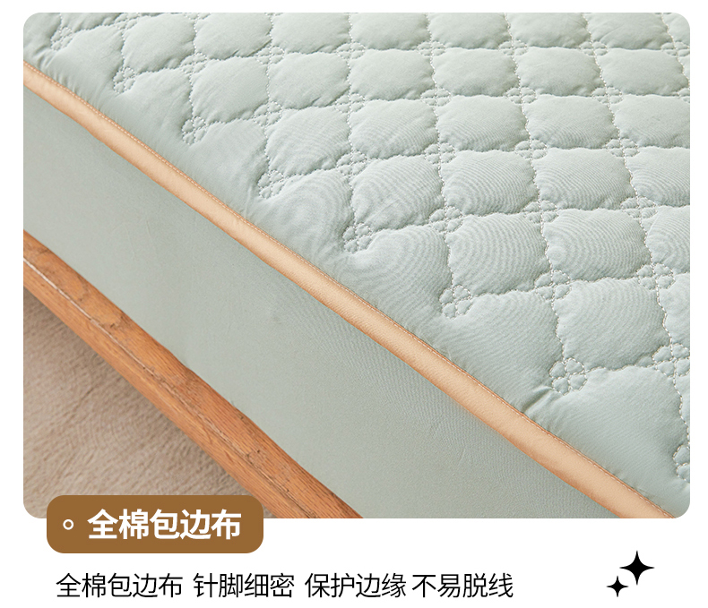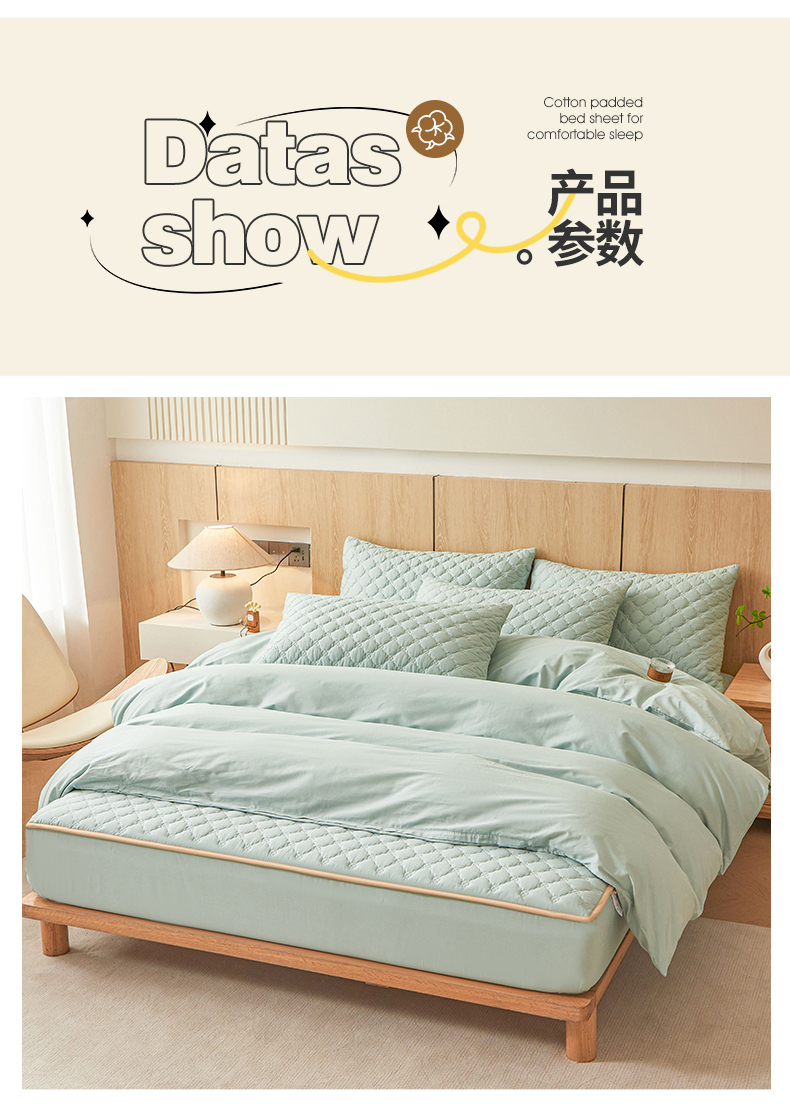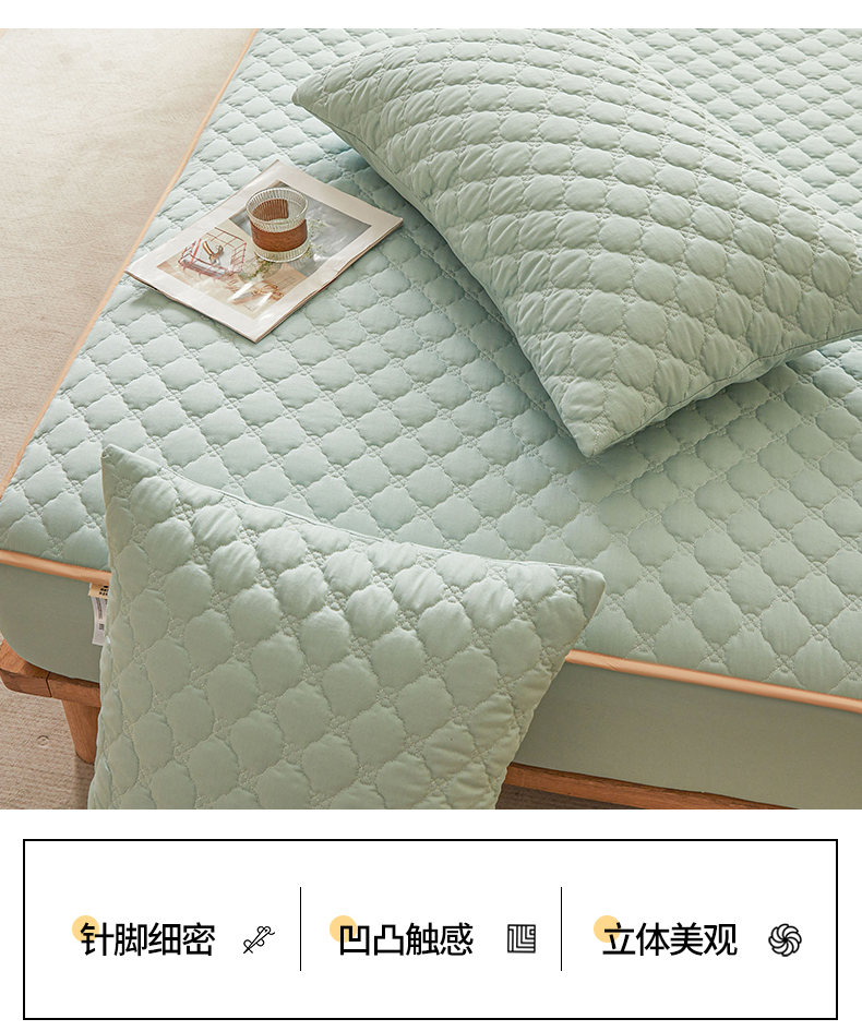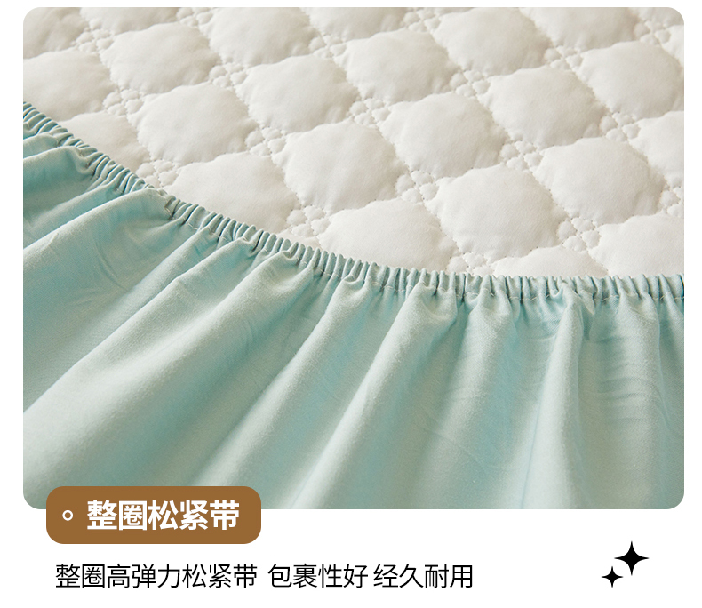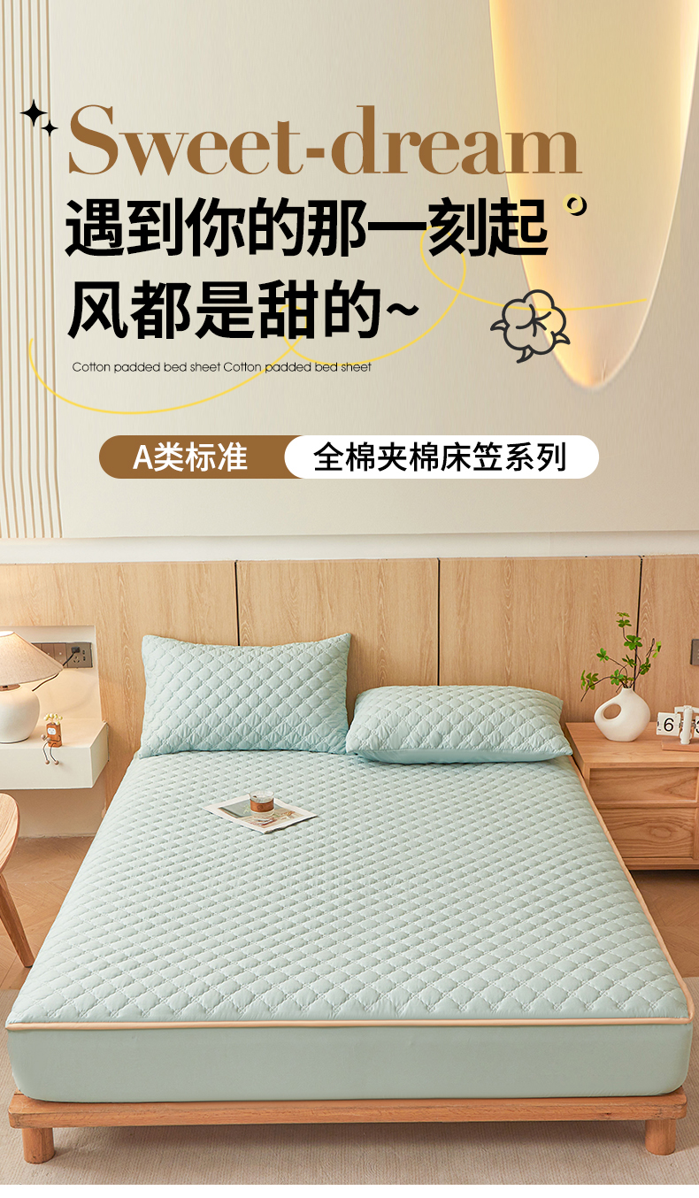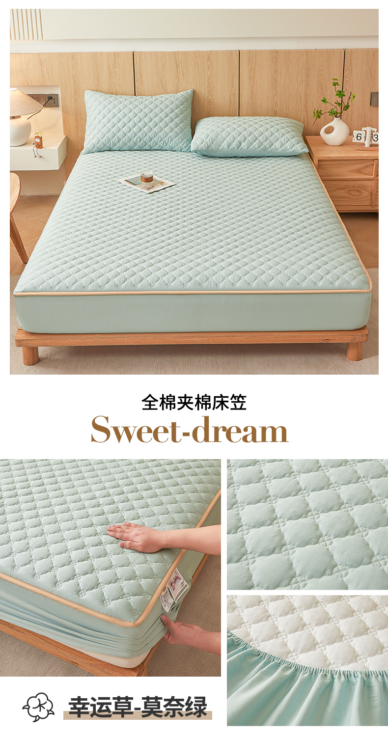 • 91家纺网 家纺一手货源 找家纺 名优家纺 2025新款全棉夹棉床笠 幸运草-莫奈绿