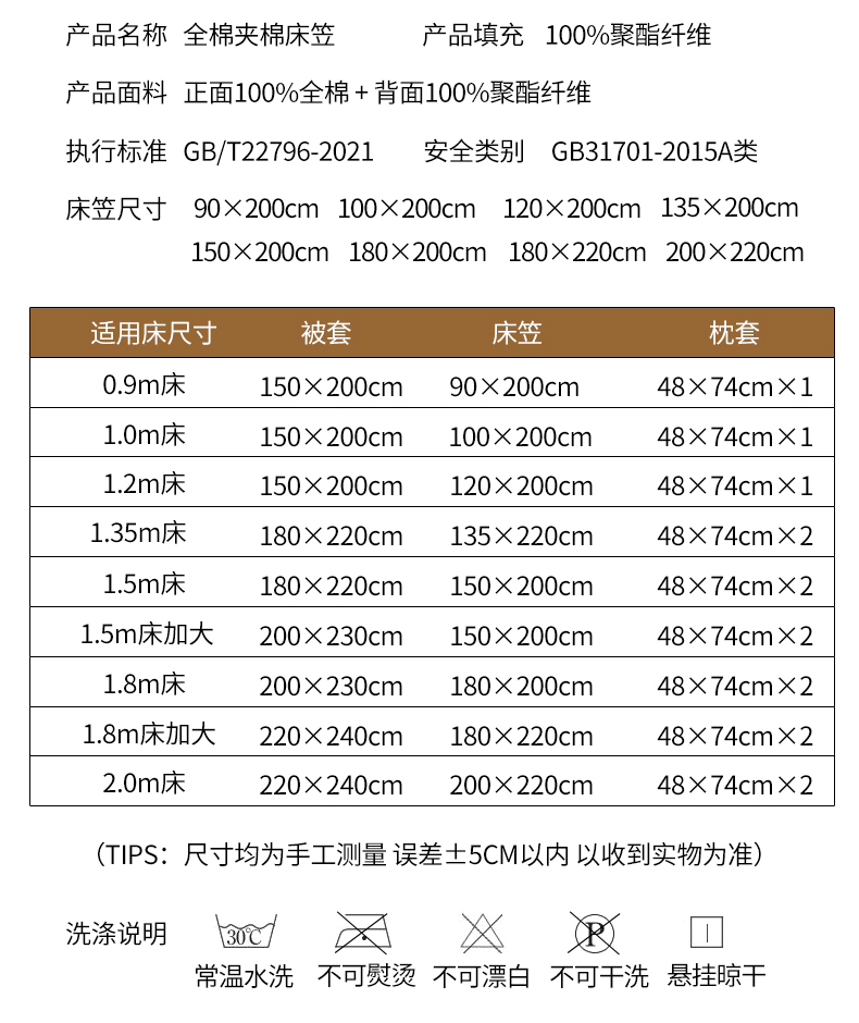 床单/床笠尺寸 19