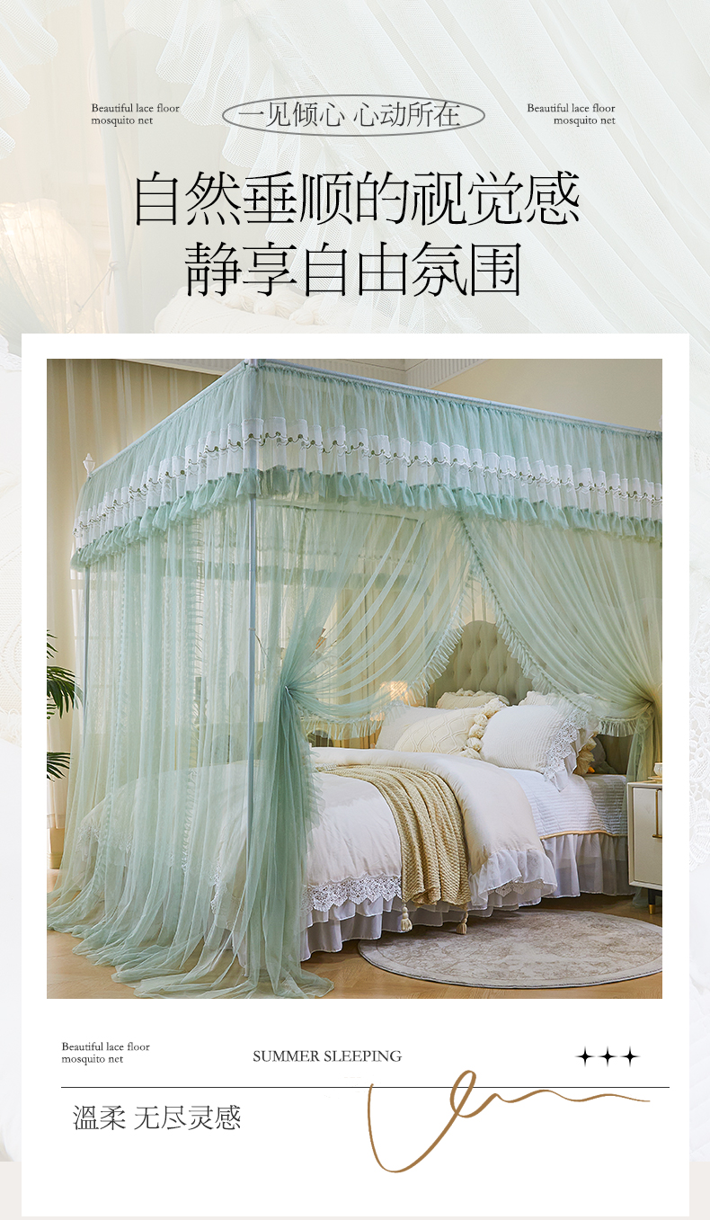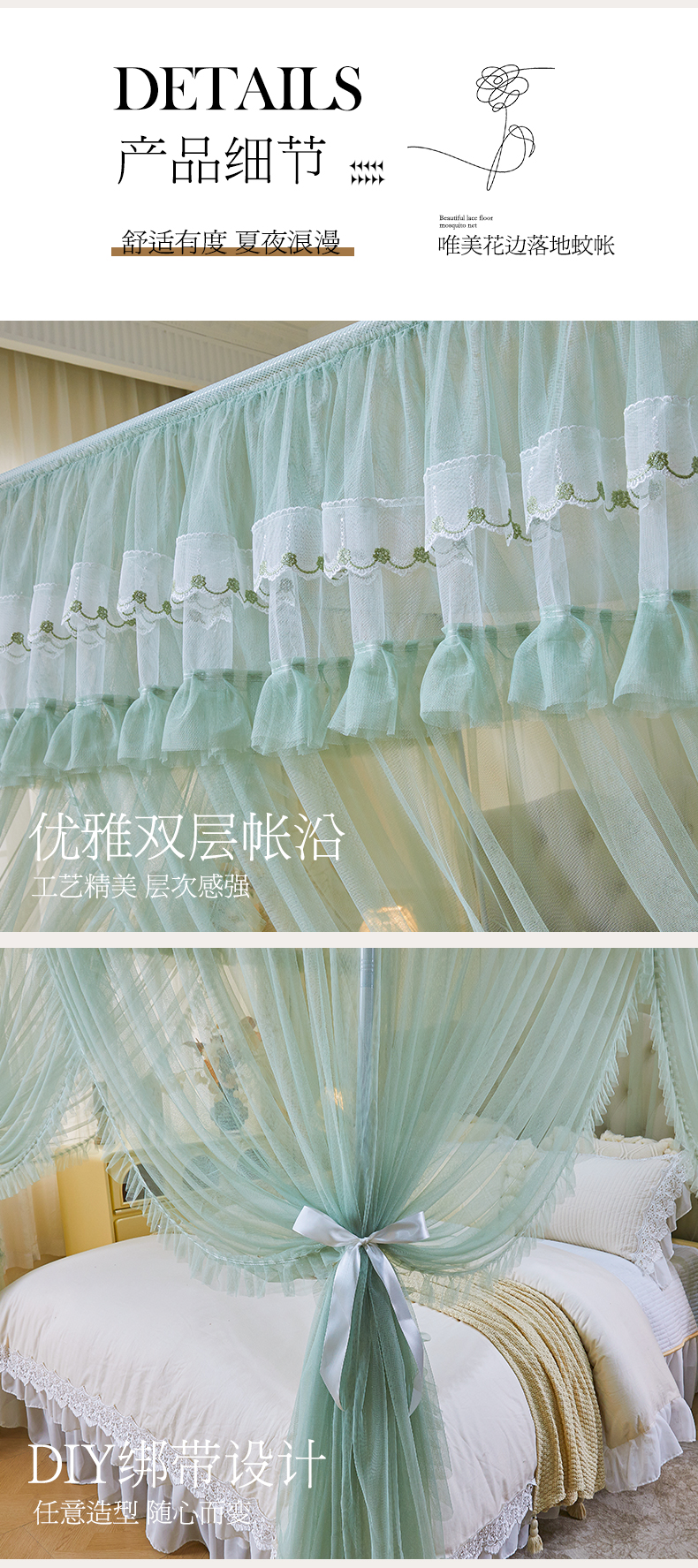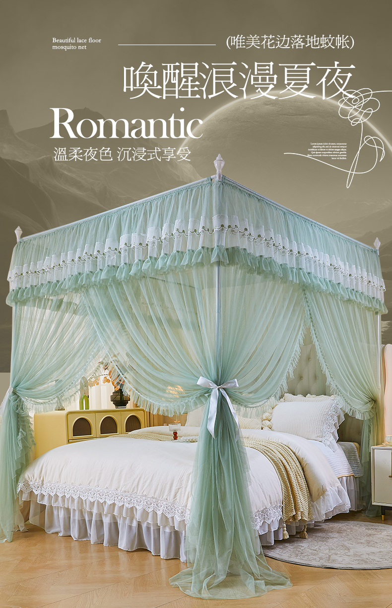 (总)艺利轩蚊帐 2025新款浪漫刺绣花边三开门外穿落地款蚊帐-知夏