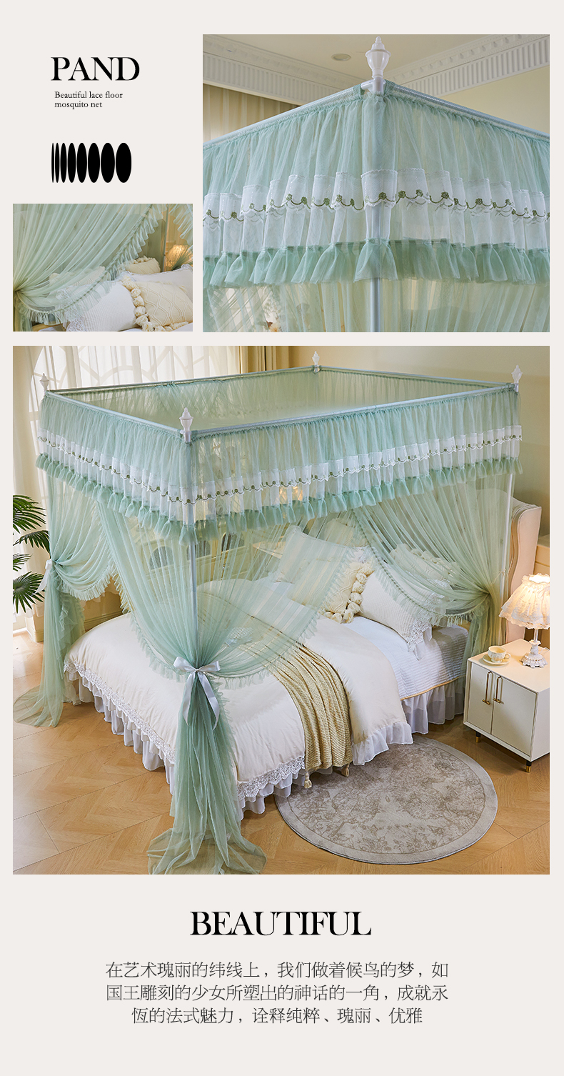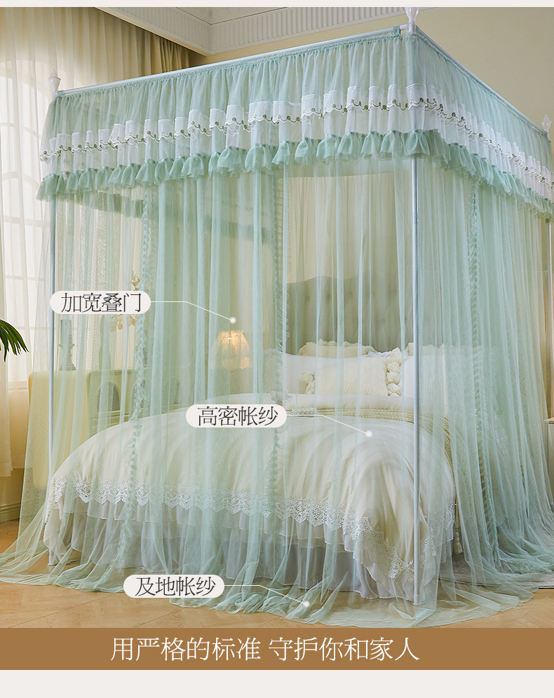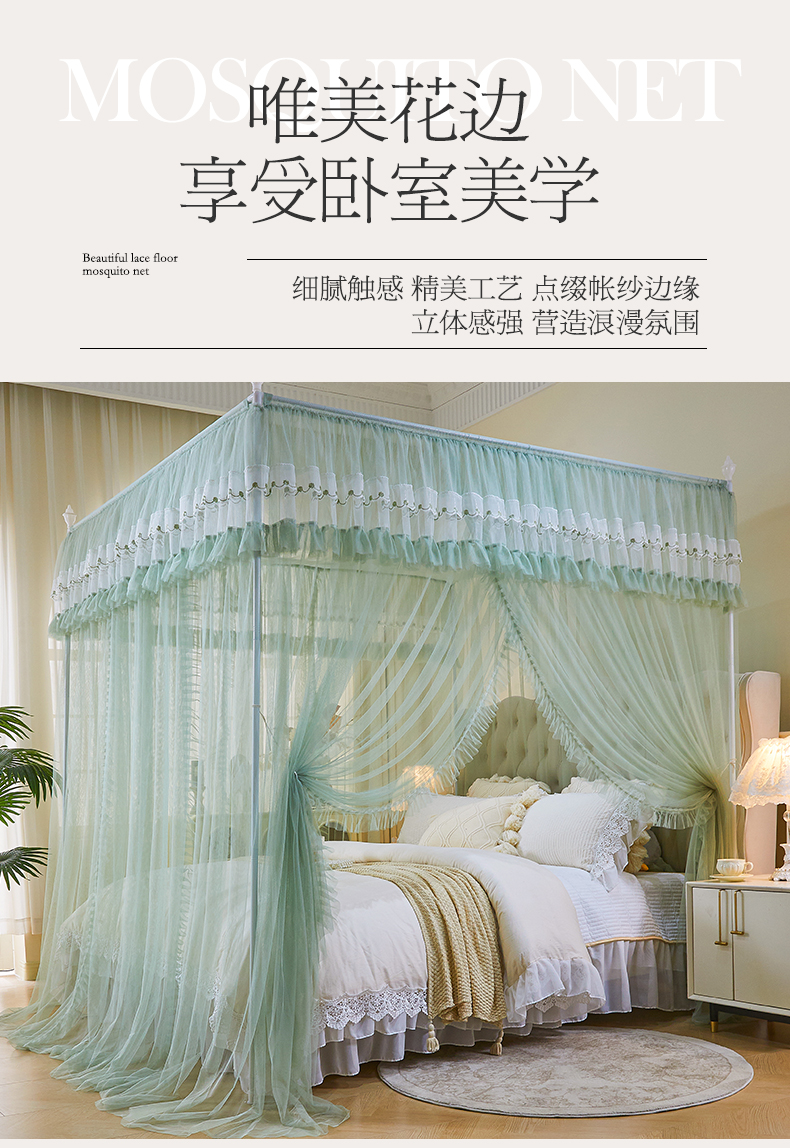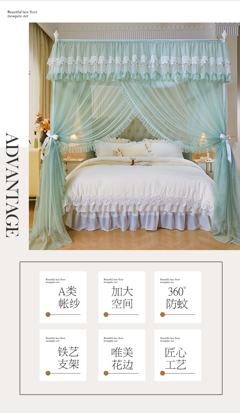 (总)艺利轩蚊帐 2025新款浪漫刺绣花边三开门外穿落地款蚊帐-知夏