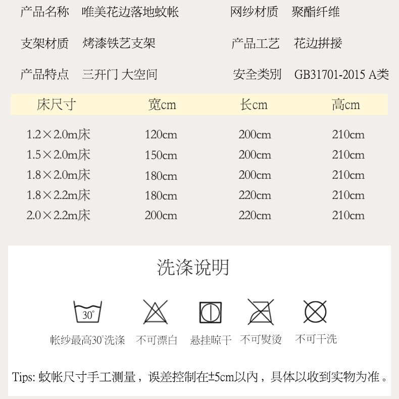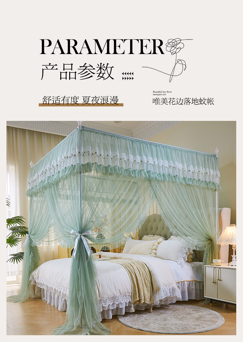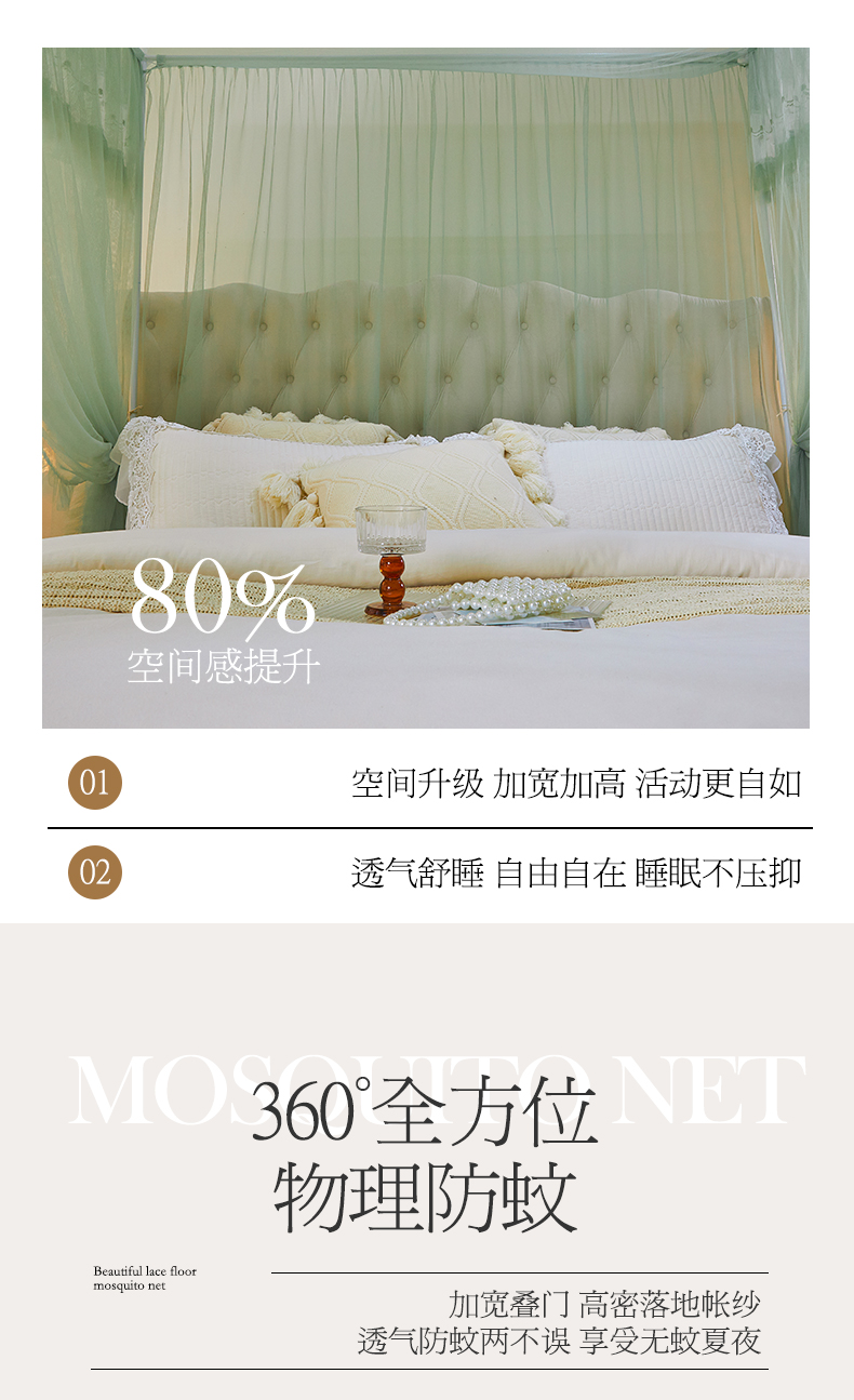商品名称:(总)艺利轩蚊帐 2025新款浪漫刺绣花边三开门外穿落地款蚊帐-知夏