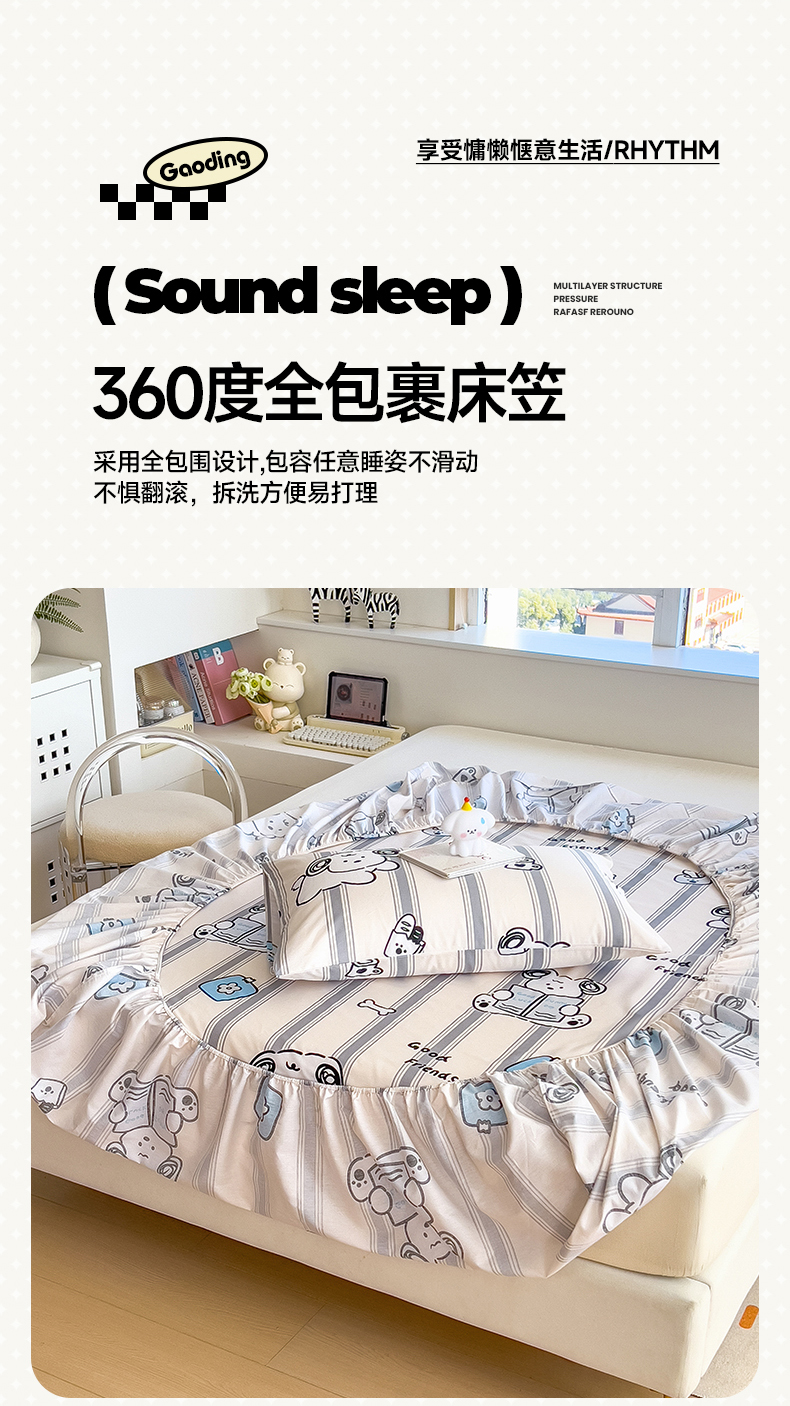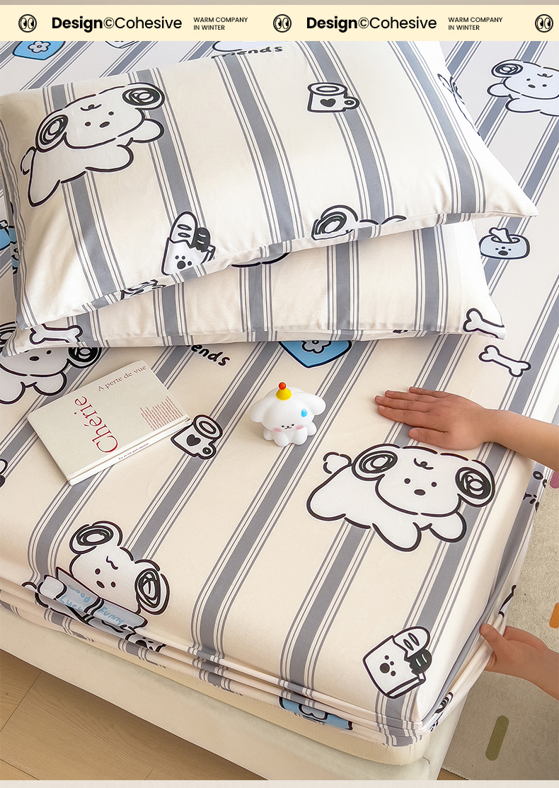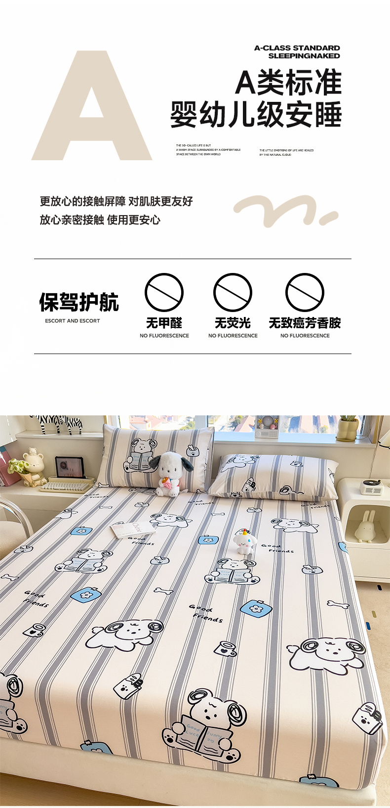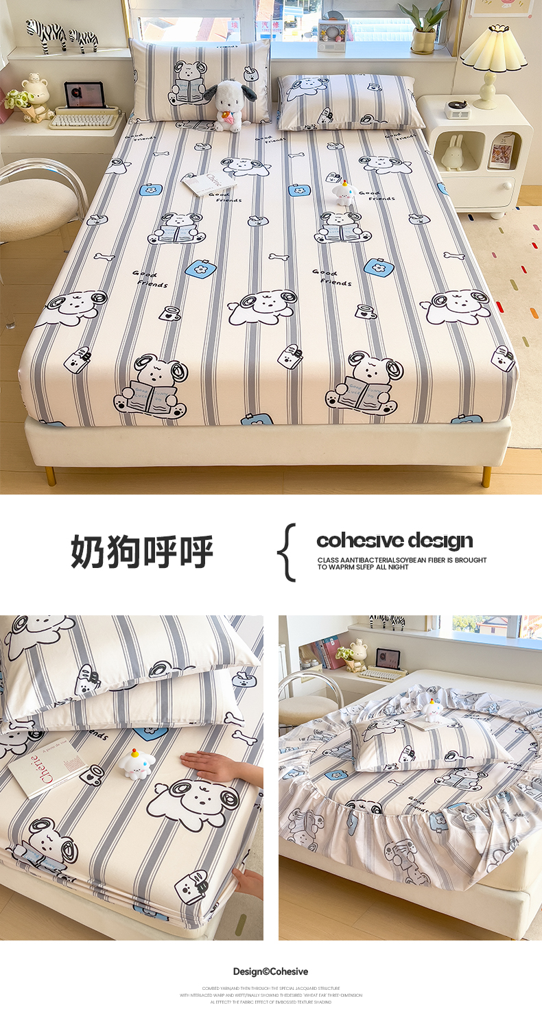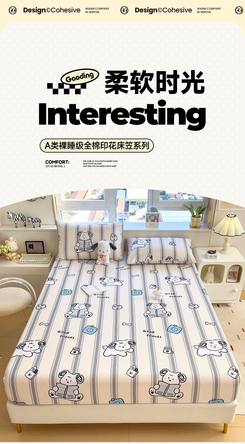 摩妮卡 2025新款A类裸睡级全棉印花床笠系列 奶狗呼呼