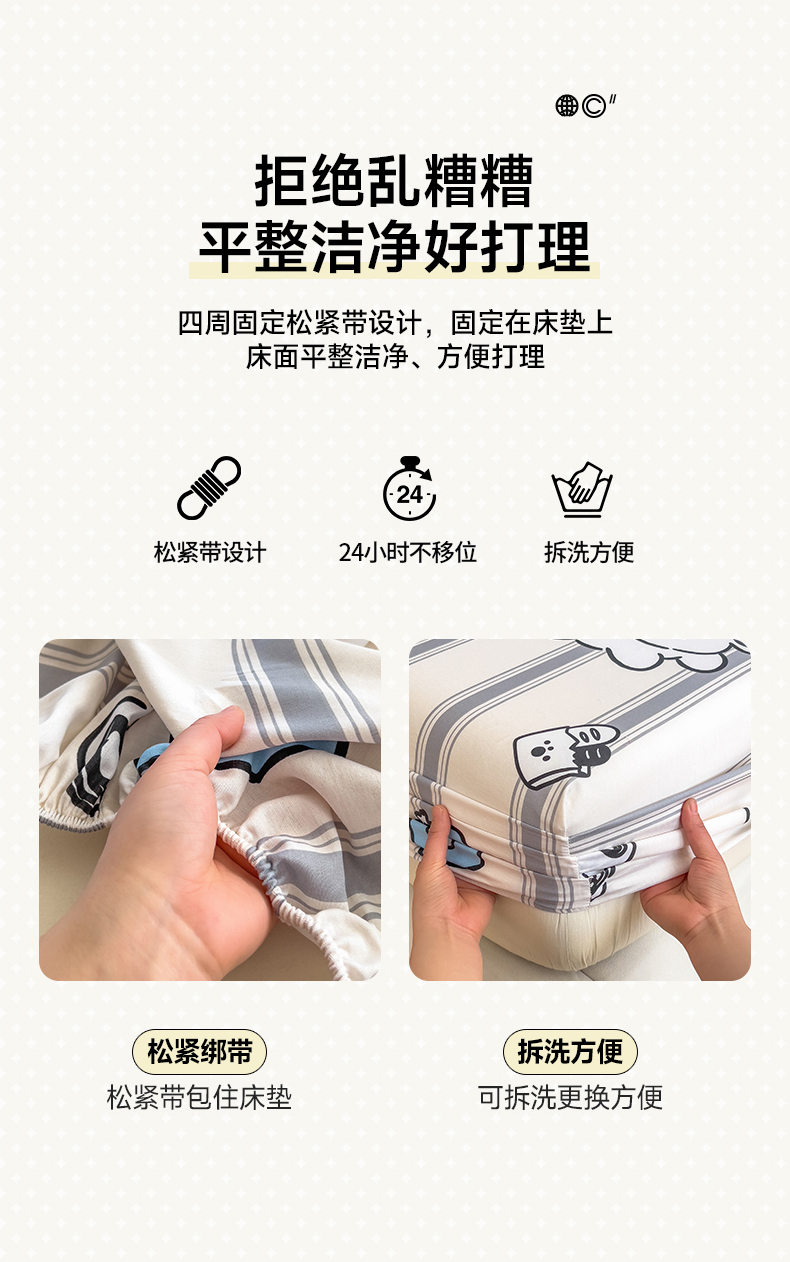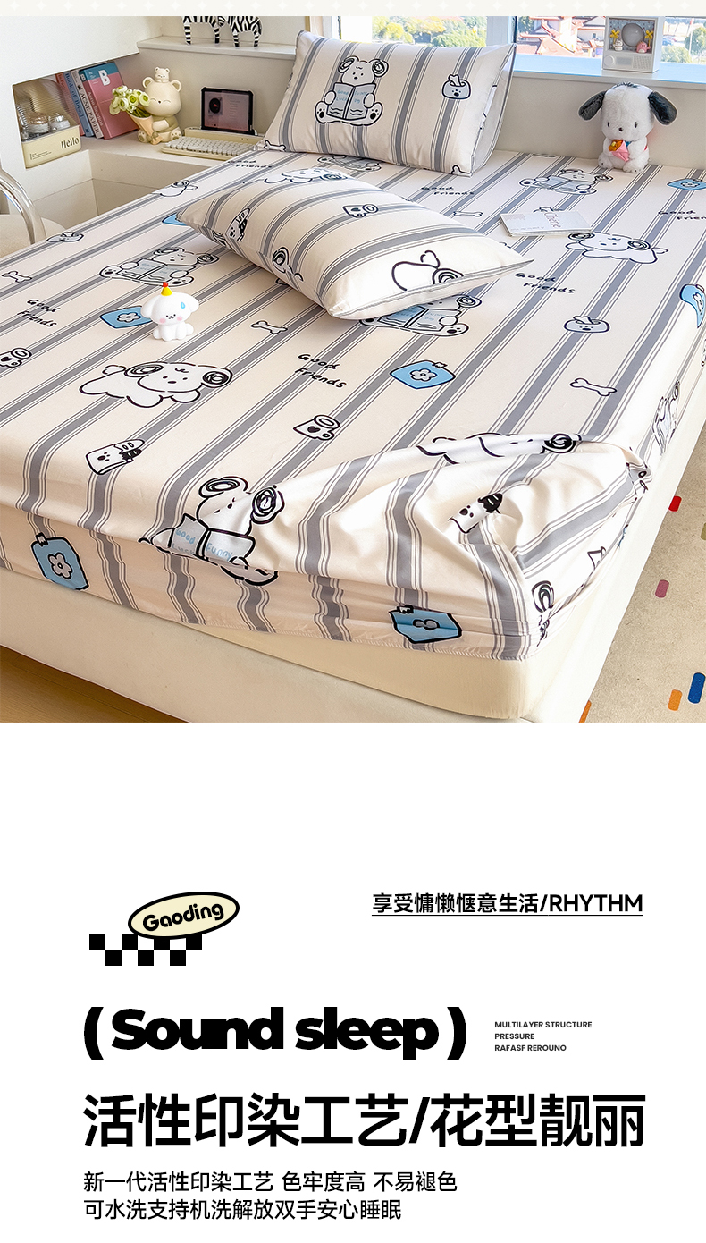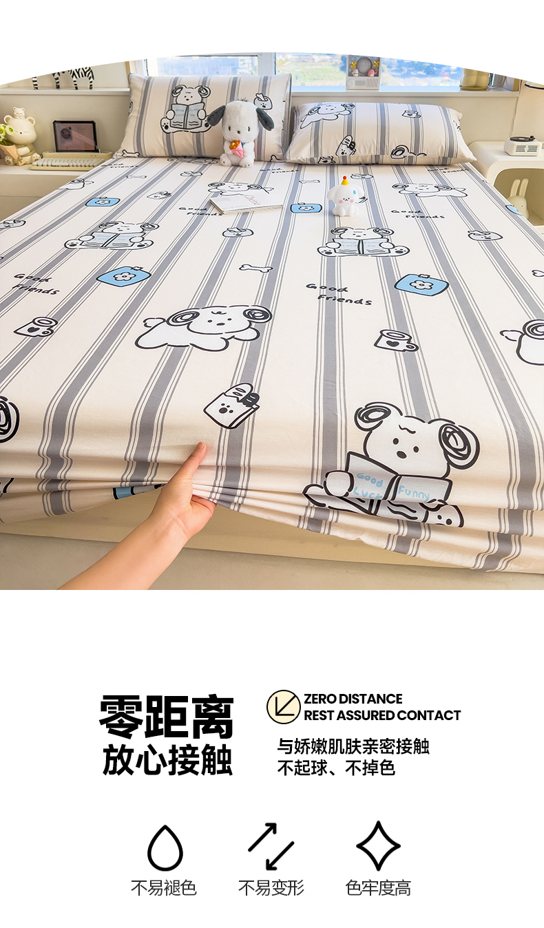 • 91家纺网 家纺一手货源 找家纺 摩妮卡 2025新款A类裸睡级全棉印花床笠系列 奶狗呼呼