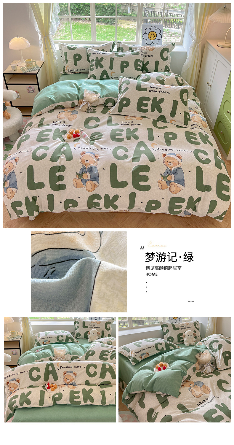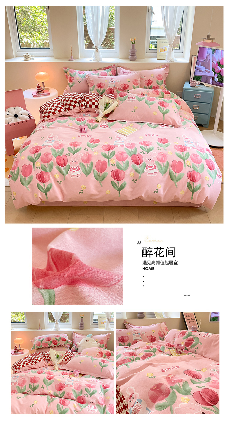 (总)(买家秀 爆款花色不断货)A类母婴级纯棉磨毛四件套简约可爱风纯棉四件套全棉四件套磨毛三件套