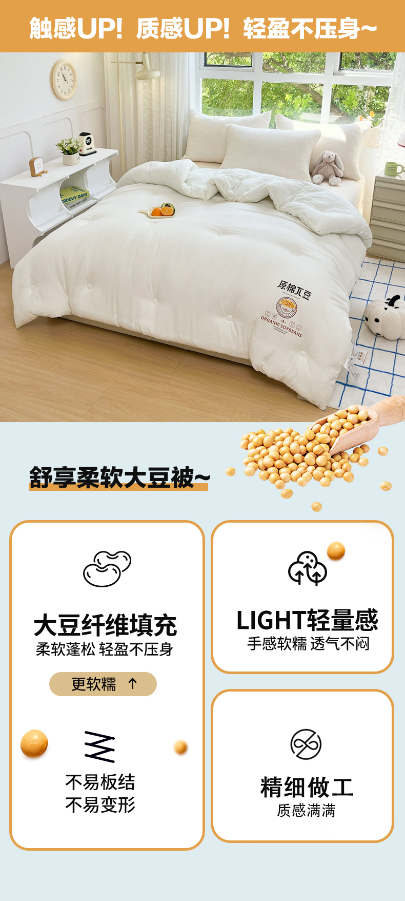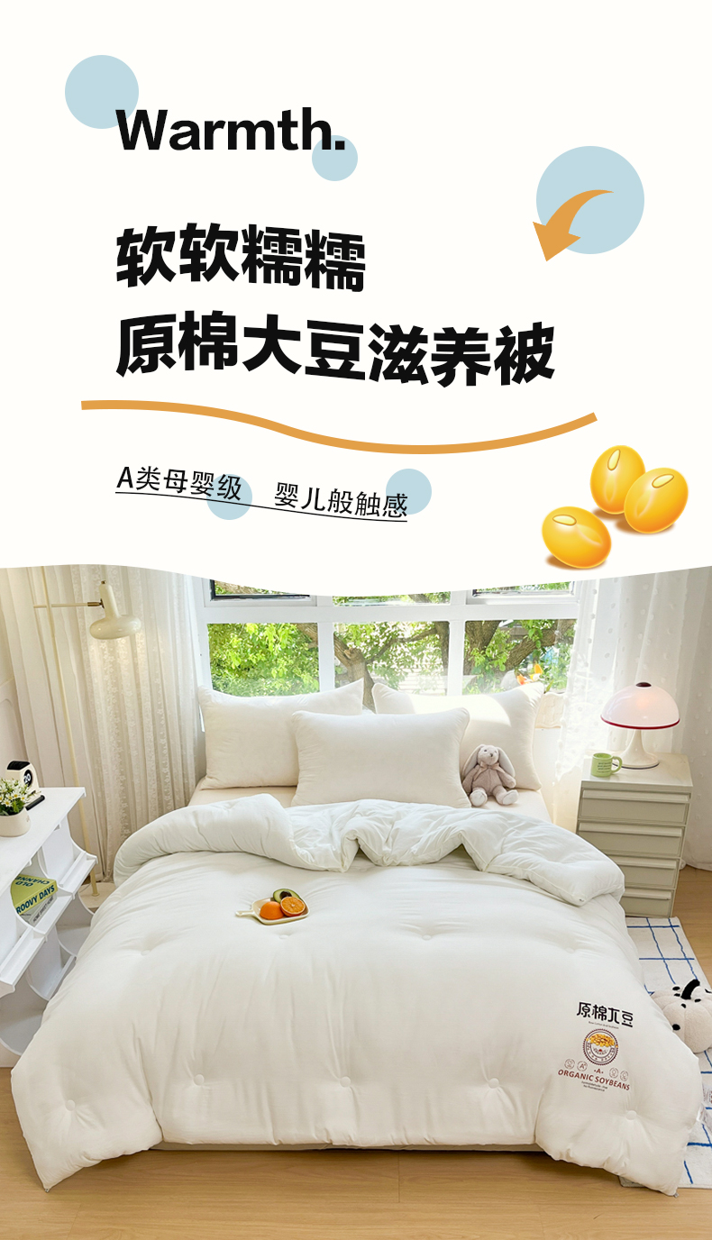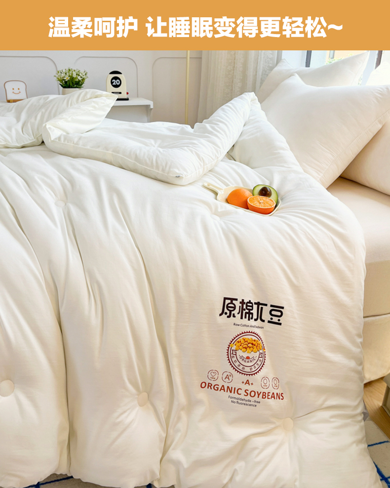 商品名称:(总)(买家秀爆款花色不断货)A类母婴级原棉大豆被春秋被秋冬被大豆纤维被子被芯空调被水洗大豆被双拼色大豆被