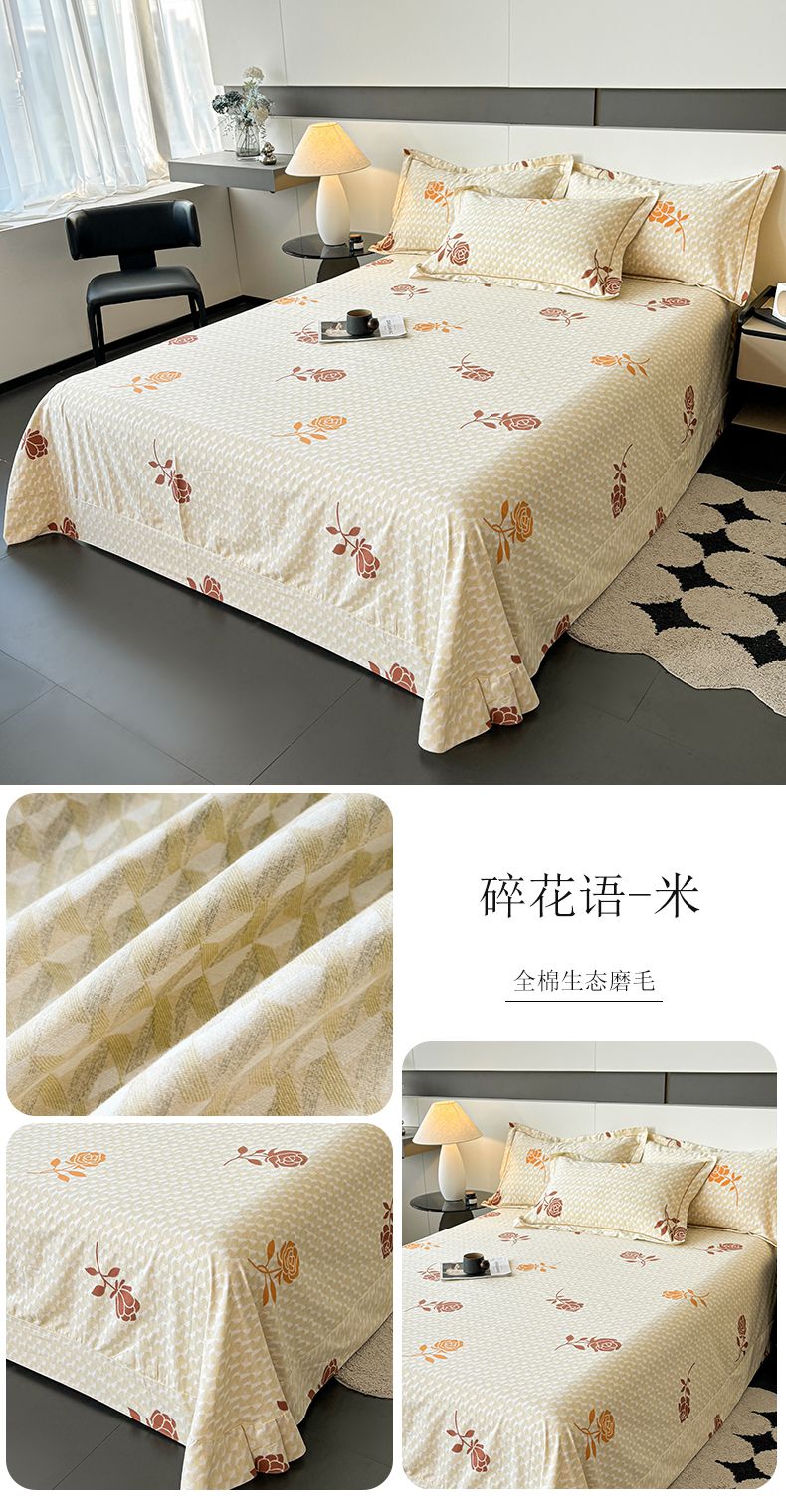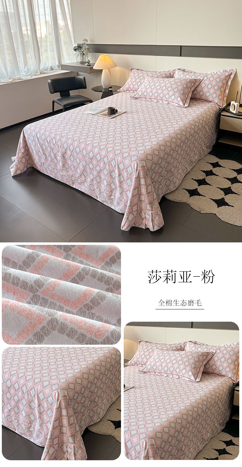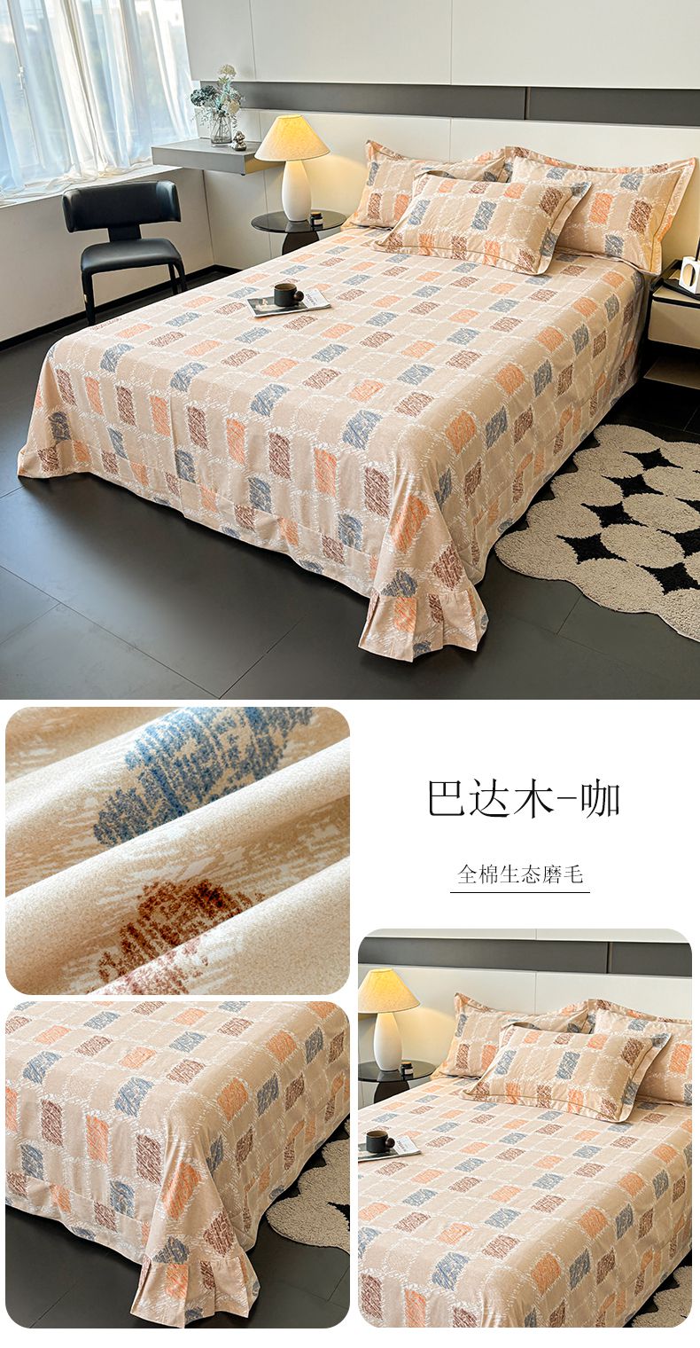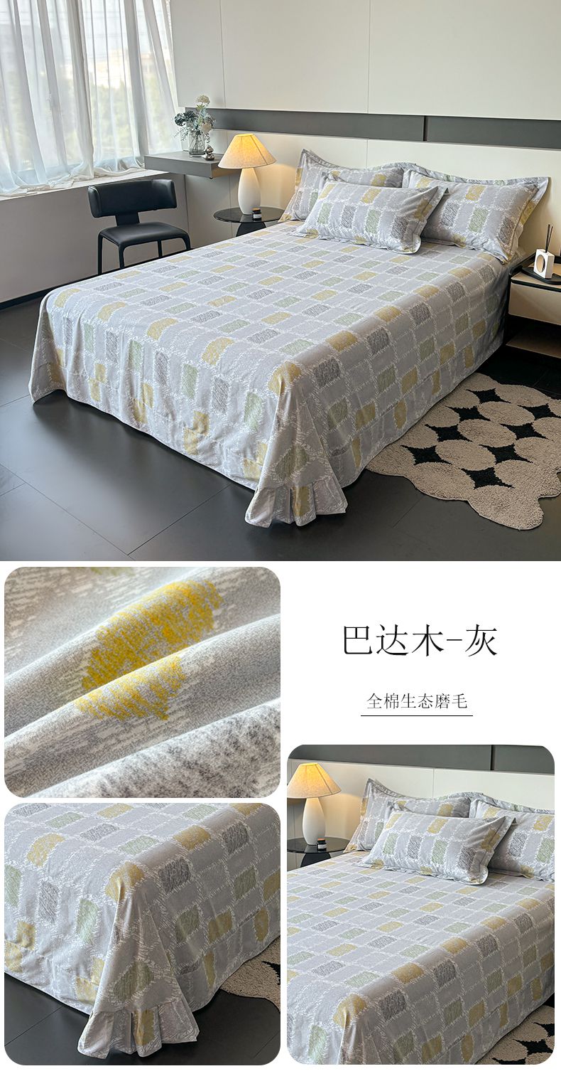 (总)(买家秀 长期款不断货)100s高支密新疆长绒棉磨毛印花被套高色织磨毛床单磨毛床笠磨毛三件套-床单