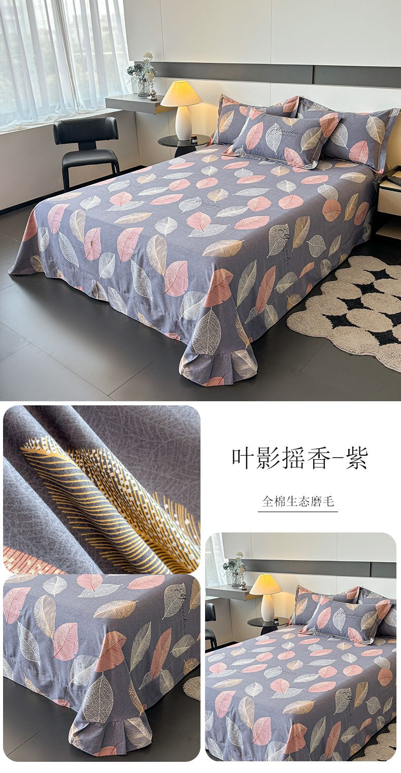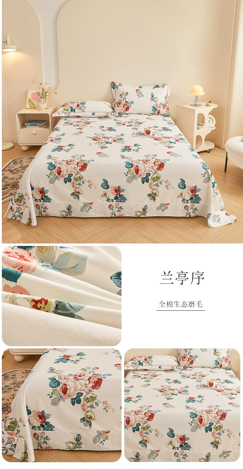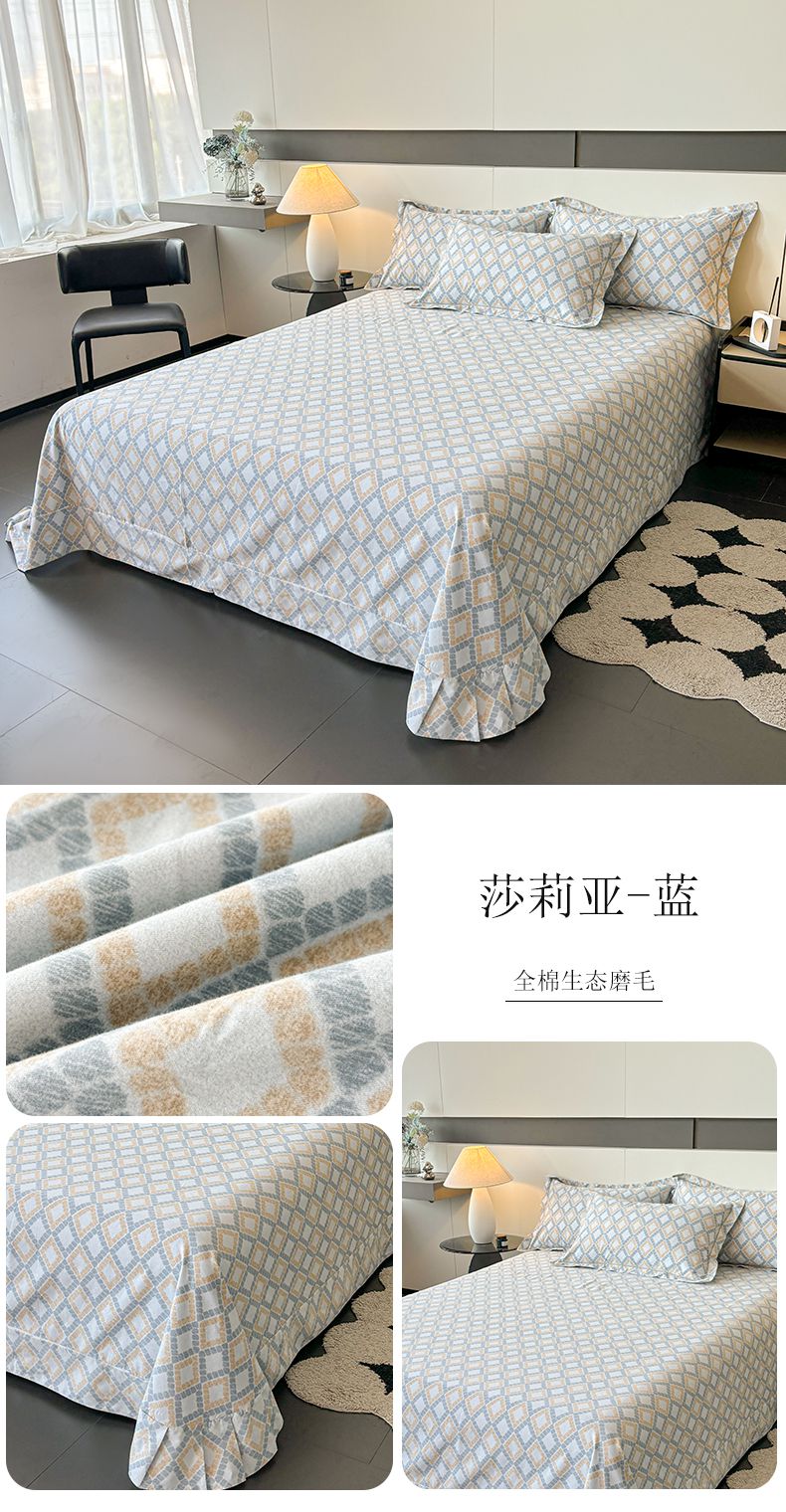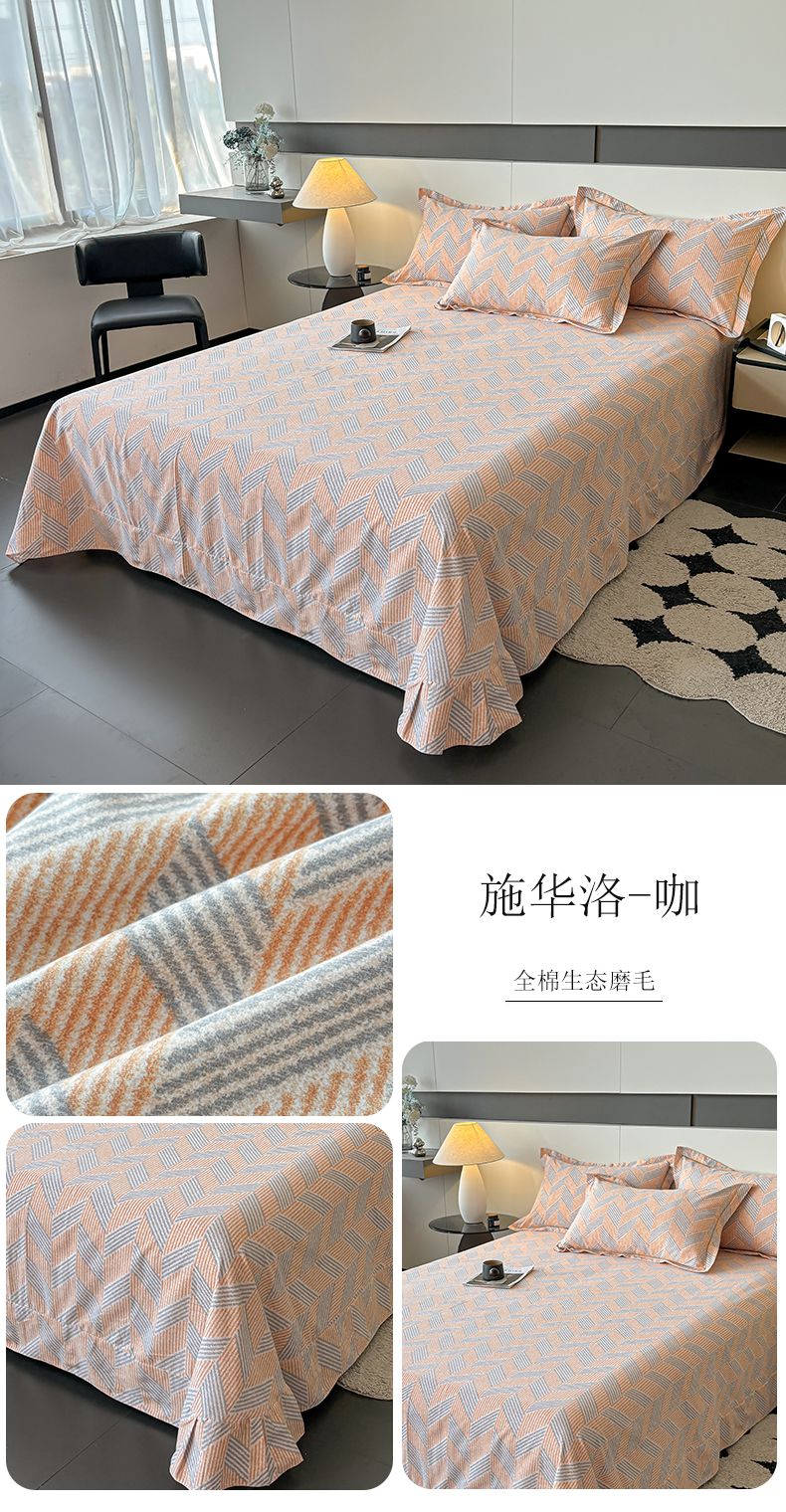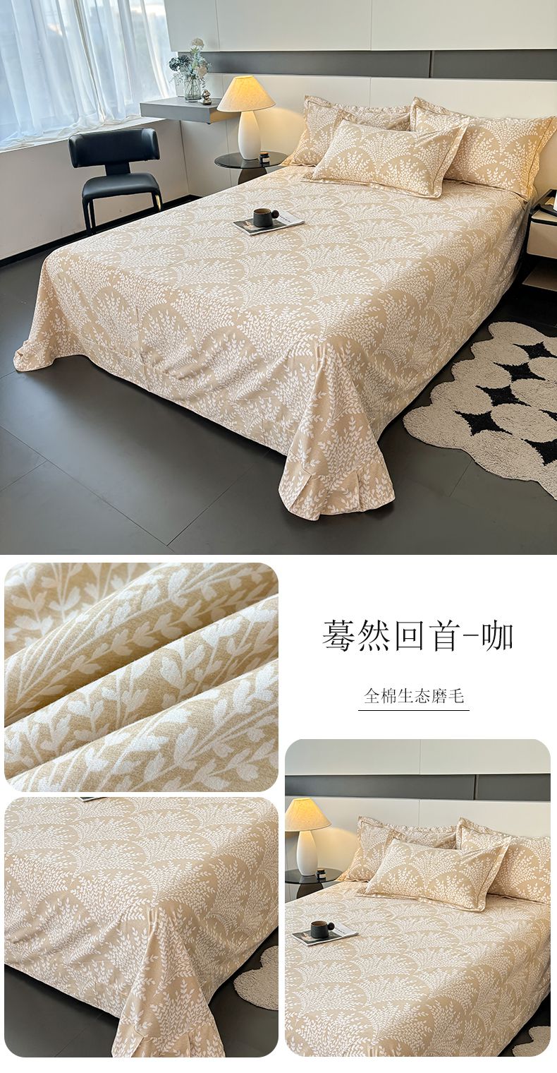 (总)(买家秀 长期款不断货)100s高支密新疆长绒棉磨毛印花被套高色织磨毛床单磨毛床笠磨毛三件套-床单