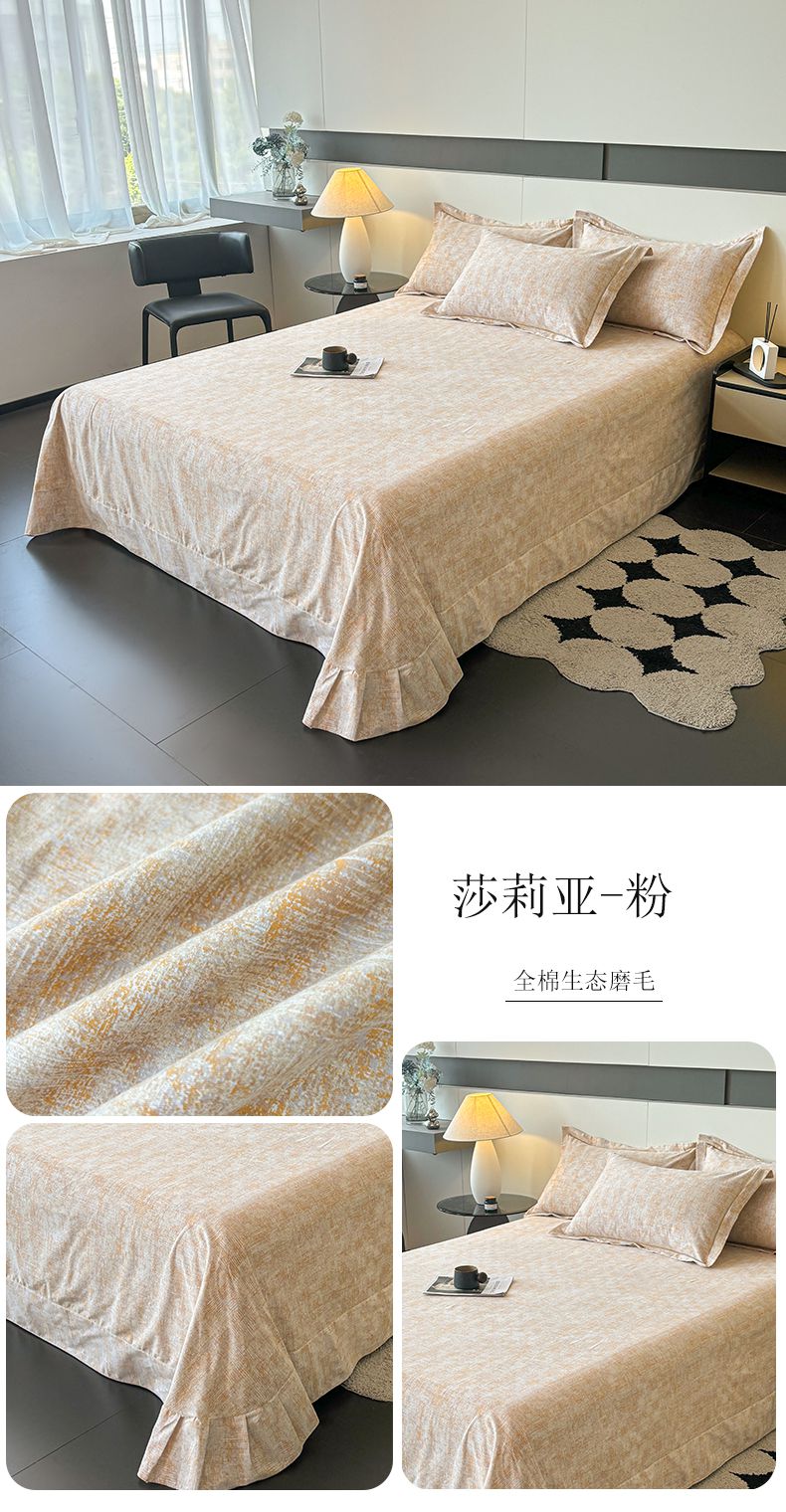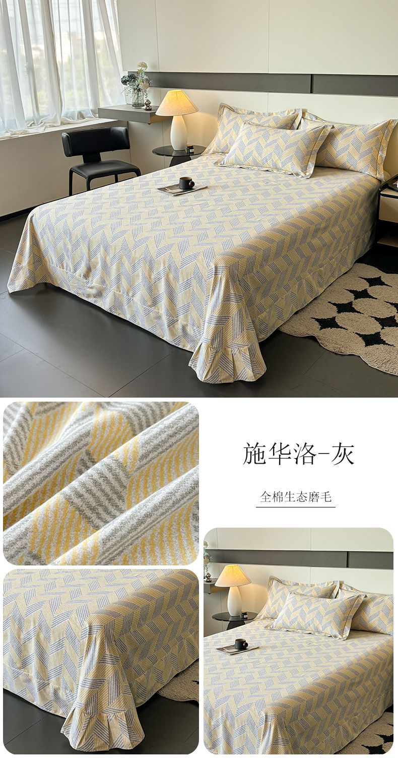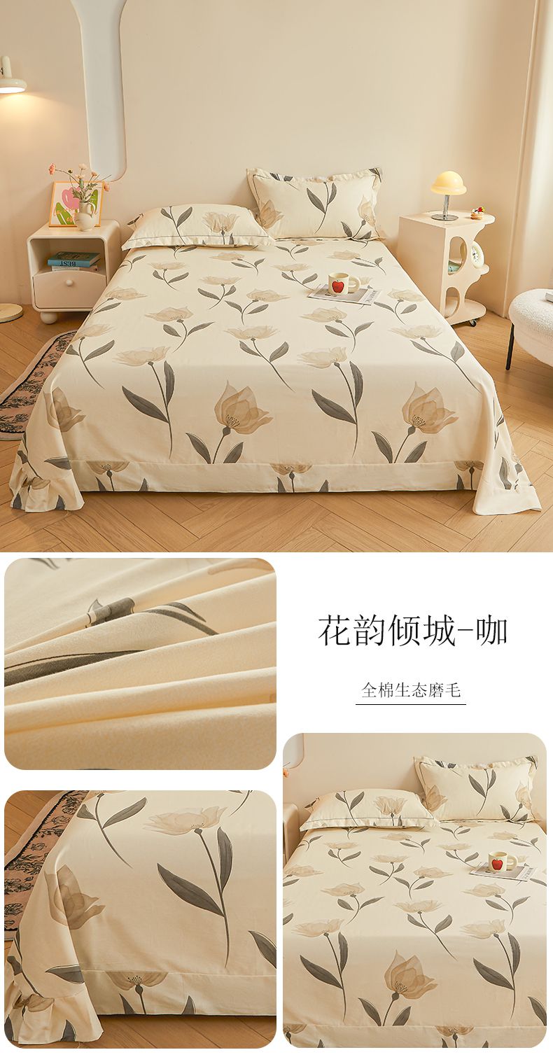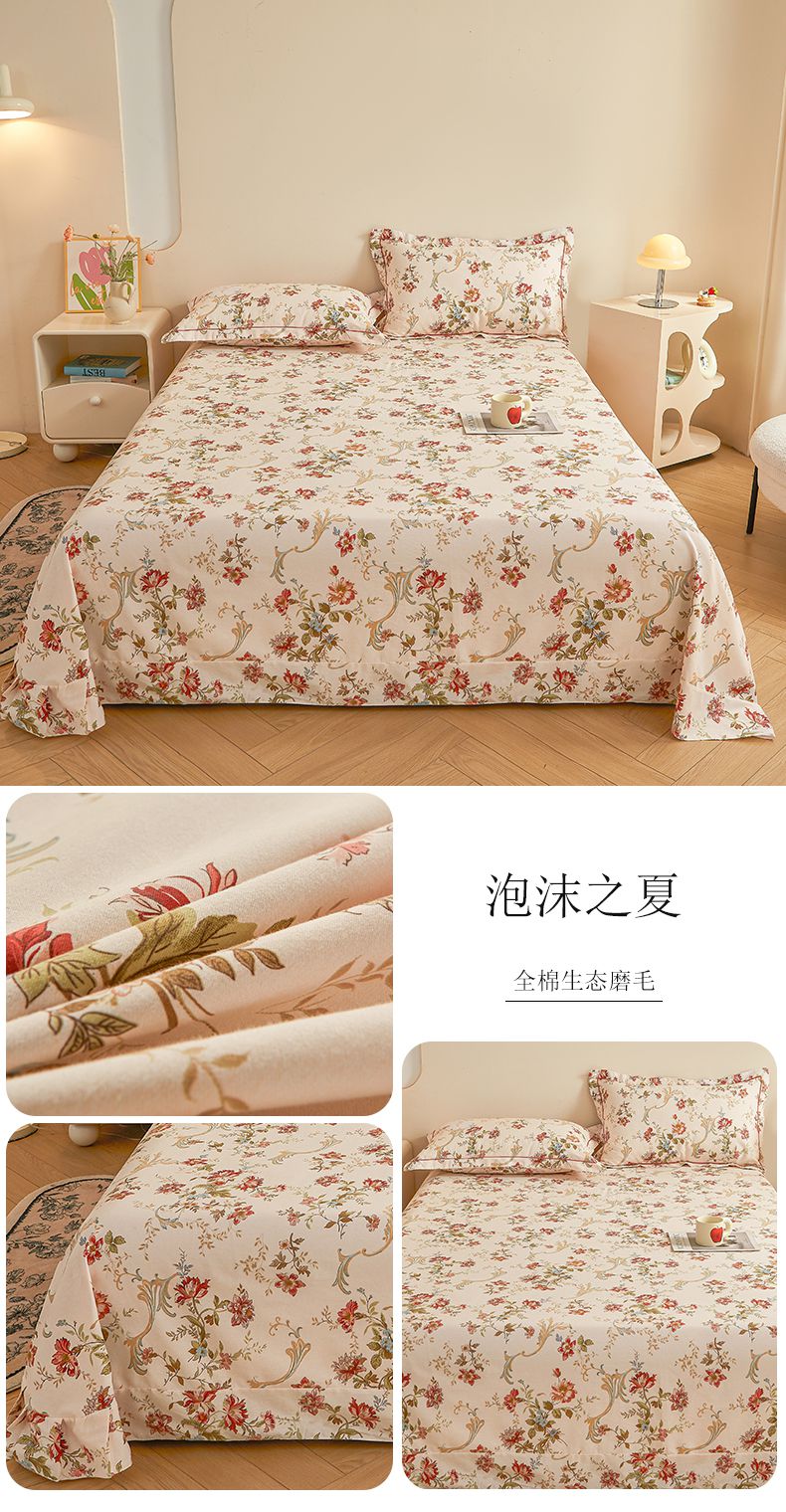 (总)(买家秀 长期款不断货)100s高支密新疆长绒棉磨毛印花被套高色织磨毛床单磨毛床笠磨毛三件套-床单