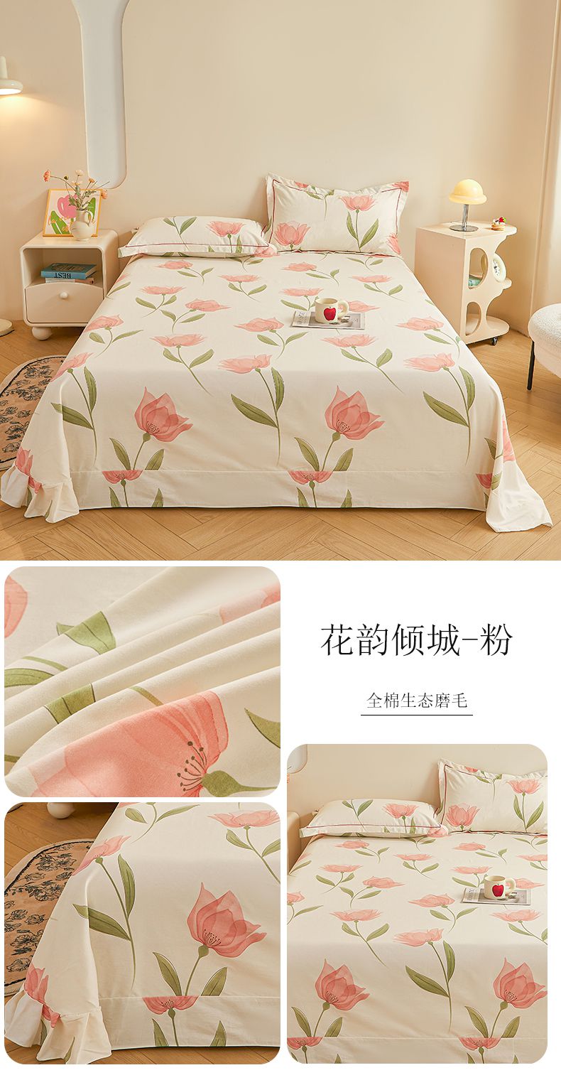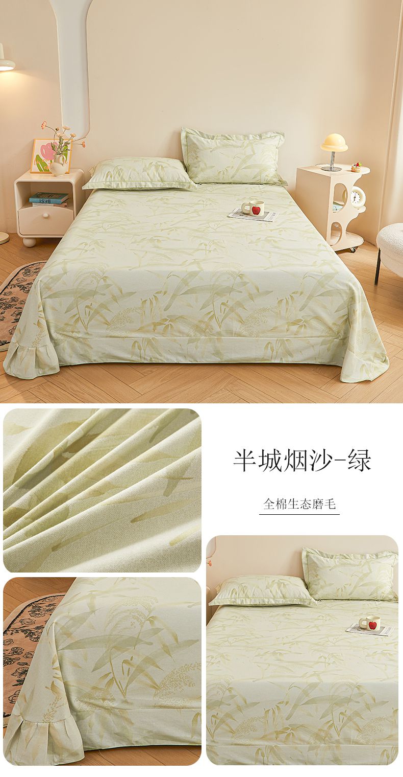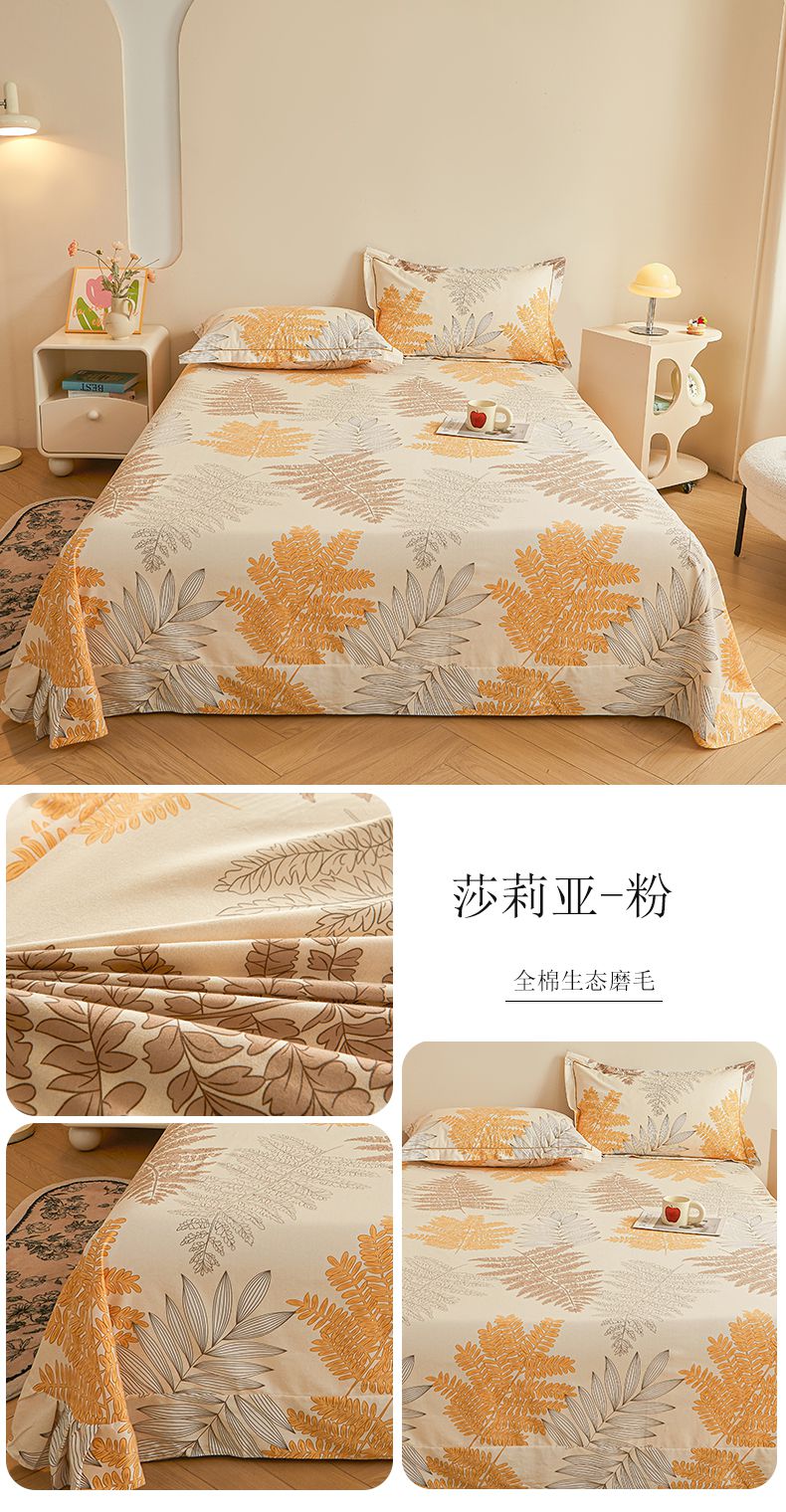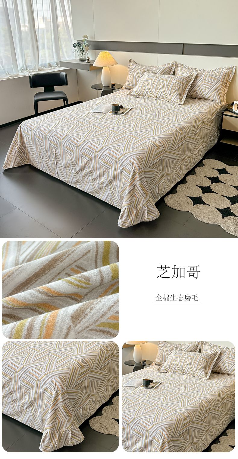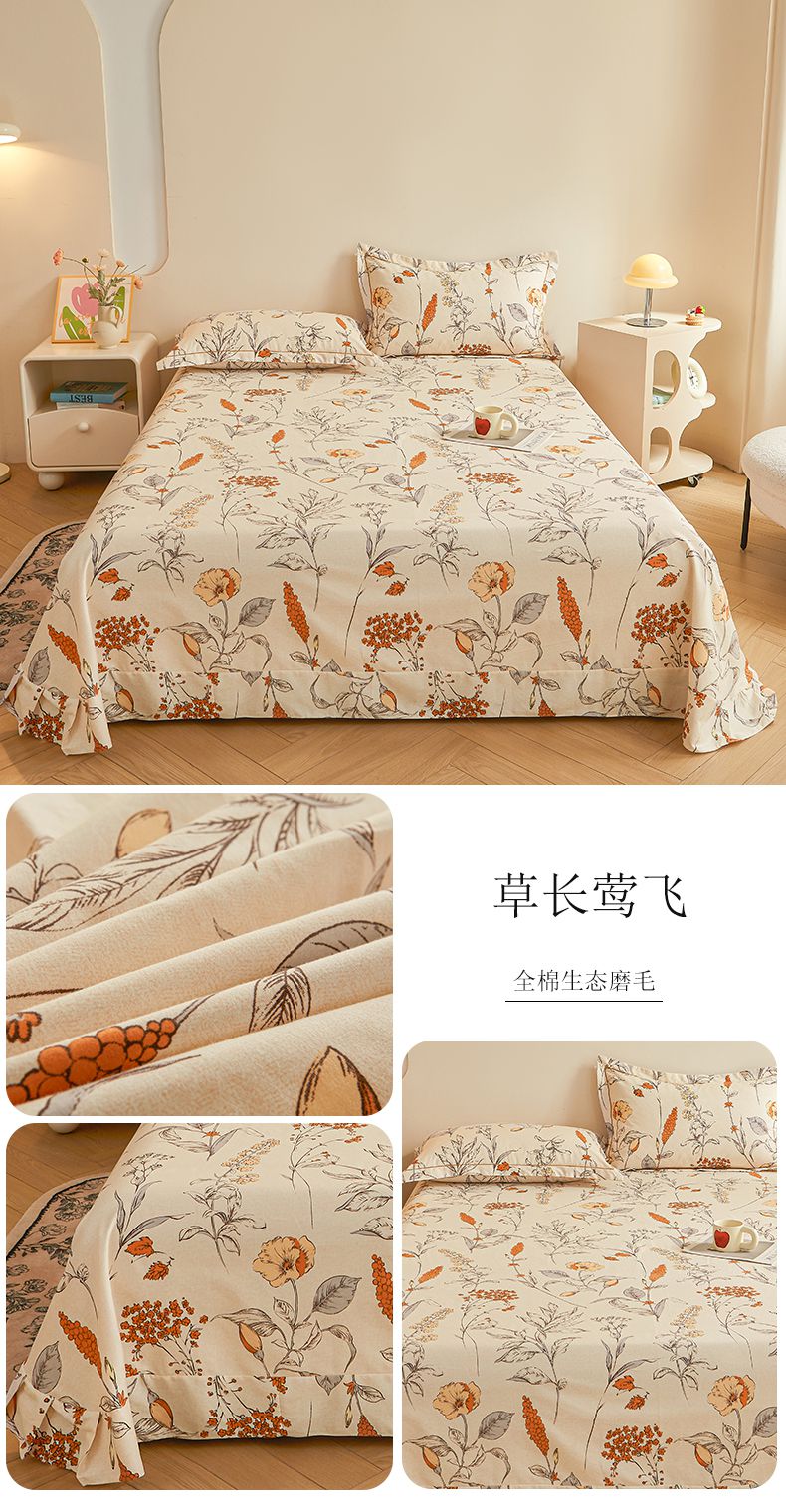 (总)(买家秀 长期款不断货)100s高支密新疆长绒棉磨毛印花被套高色织磨毛床单磨毛床笠磨毛三件套-床单