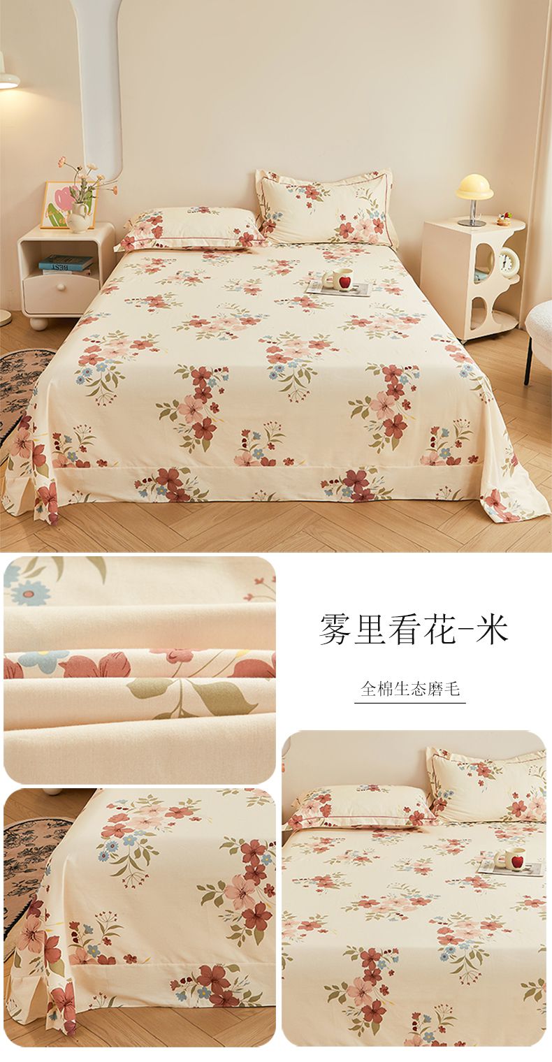 商品名称:(总)(买家秀 长期款不断货)100s高支密新疆长绒棉磨毛印花被套高色织磨毛床单磨毛床笠磨毛三件套-床单