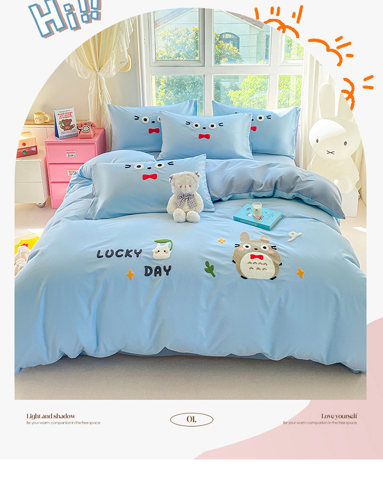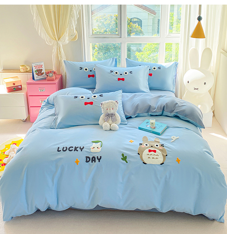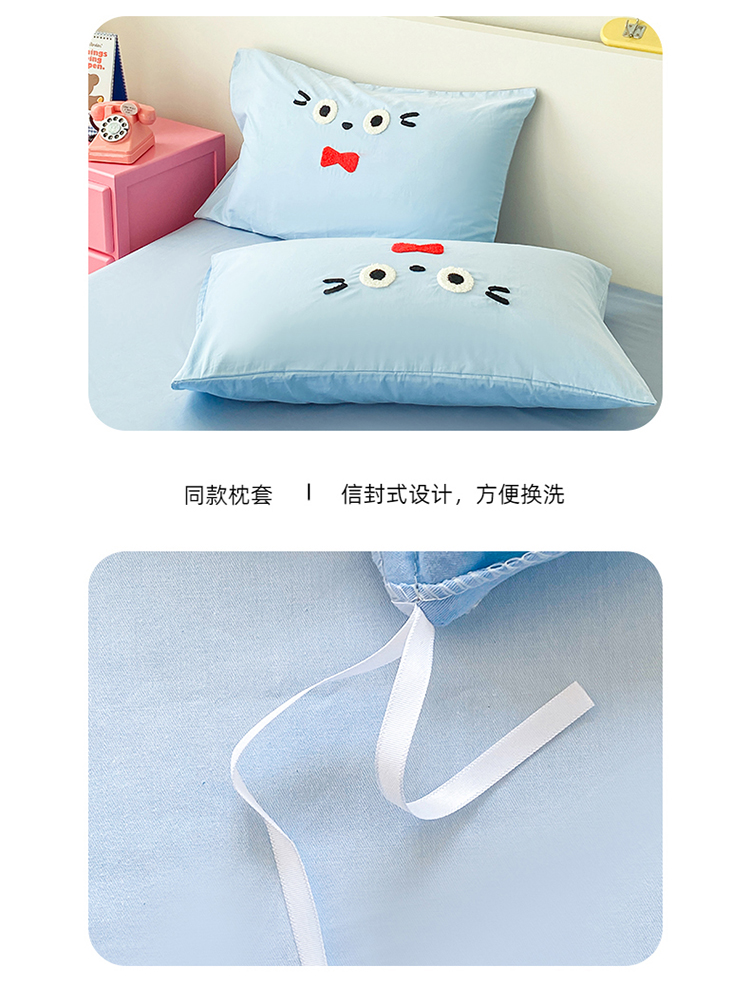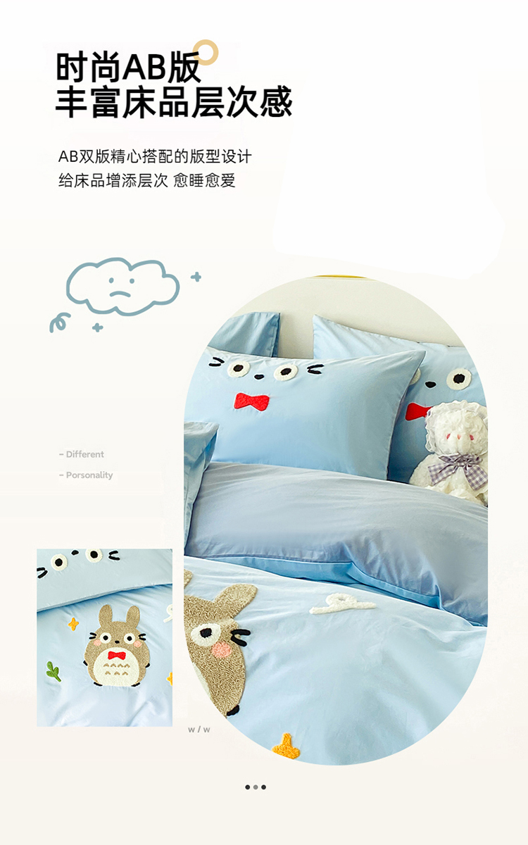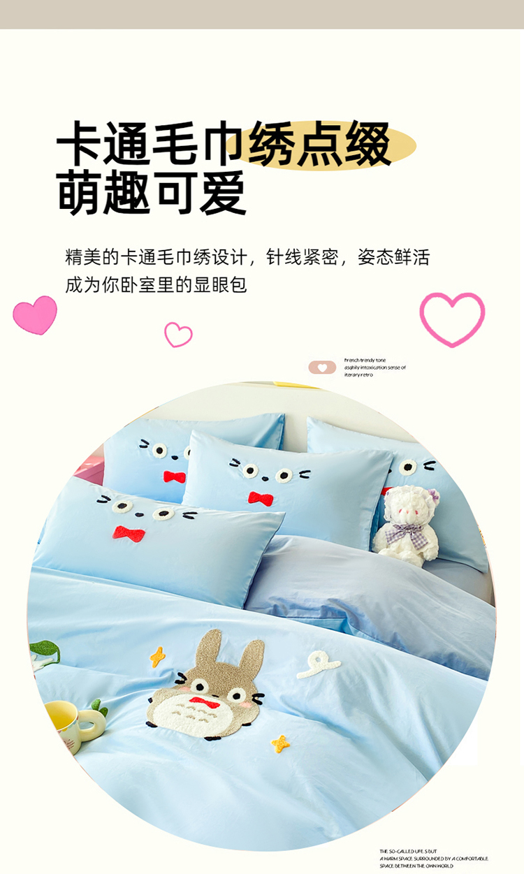 商品名称:(买家秀)(爆款花型长期款不断货)A类全棉贴布绣四件套绣花四件套毛巾绣四件套毛巾绣三件套卡通 幸运猫