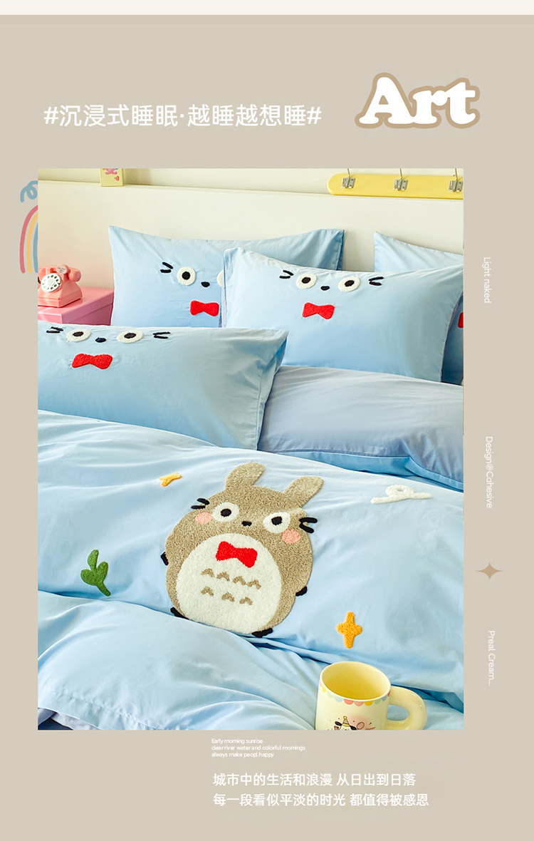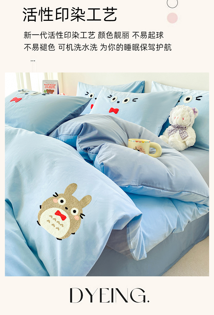 (总)(买家秀 热款花型 不断货)母婴级A类ins风水洗棉四件套水洗棉毛巾绣四件套水洗棉床笠四件套提花绣花,幸运小狗,开心熊猫,小红帽,小兔音乐会