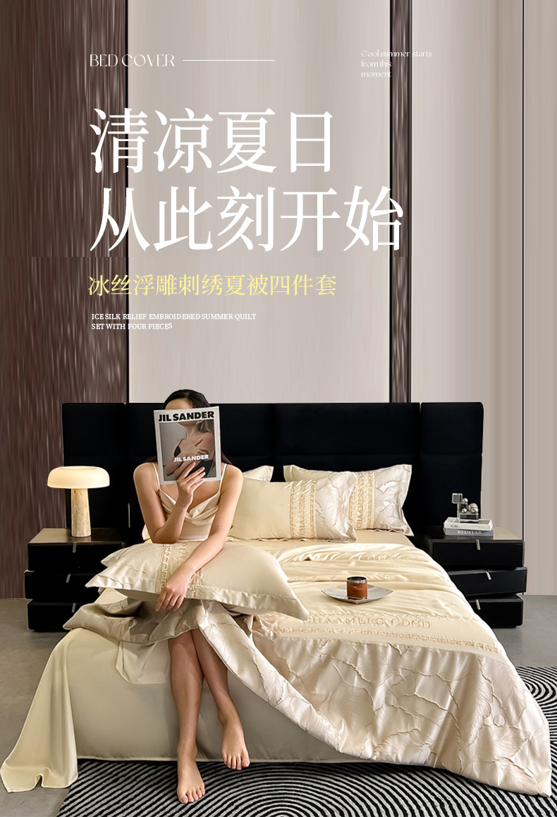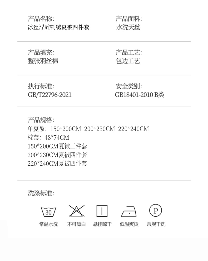 商品名称:(总)水云缦 2025新款冰丝浮雕刺绣天丝夏被四件套-风格二