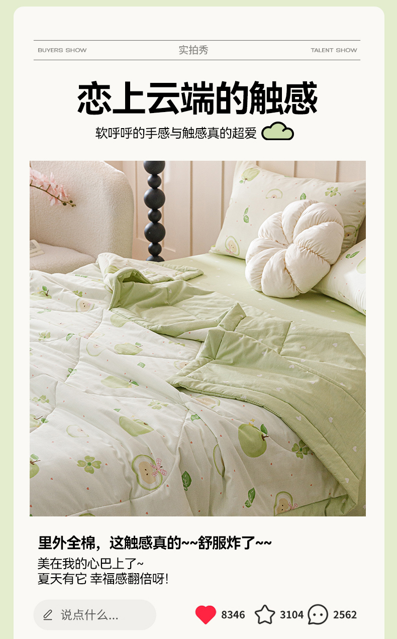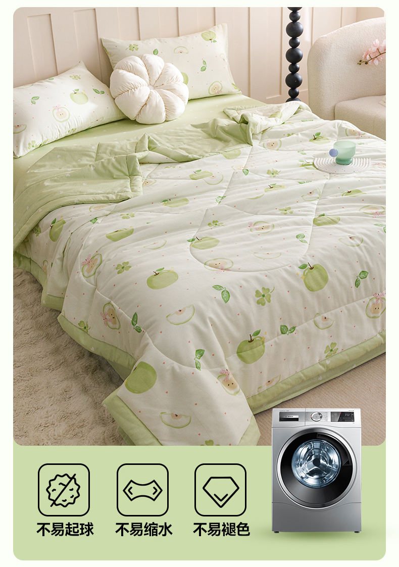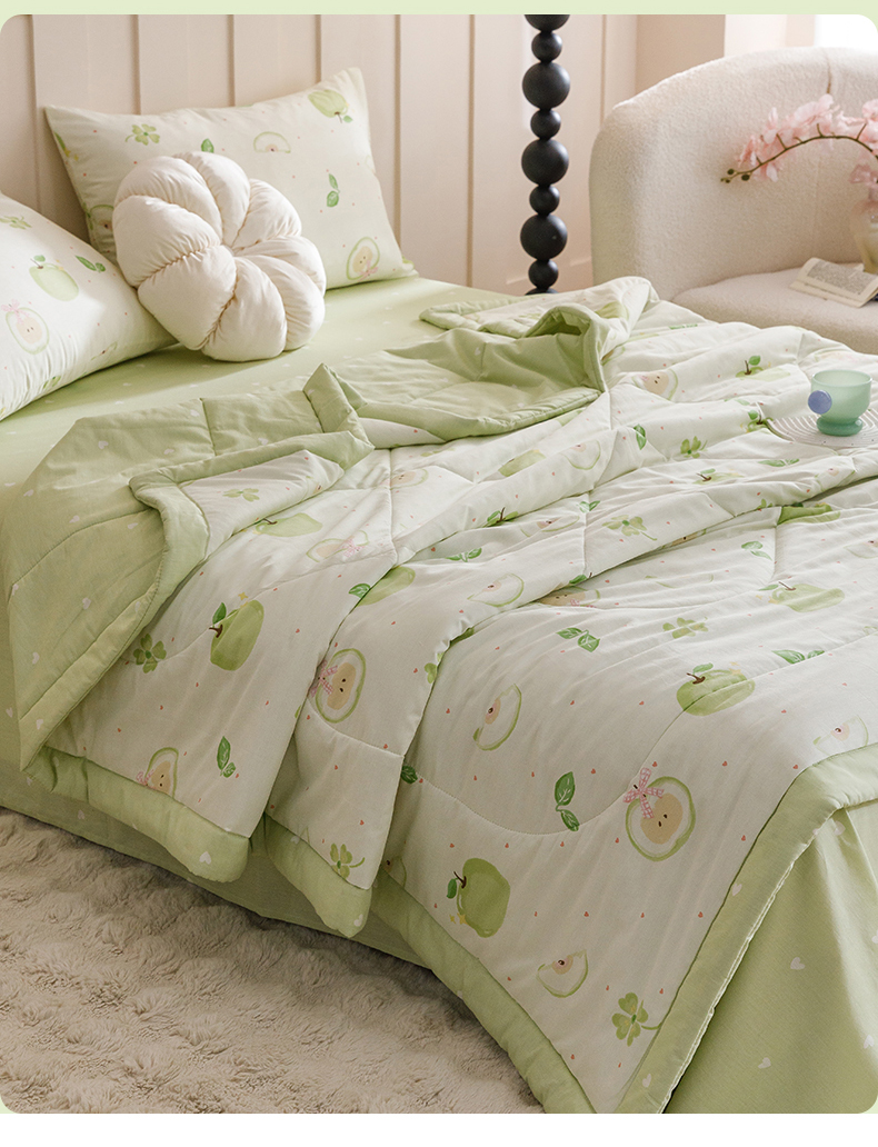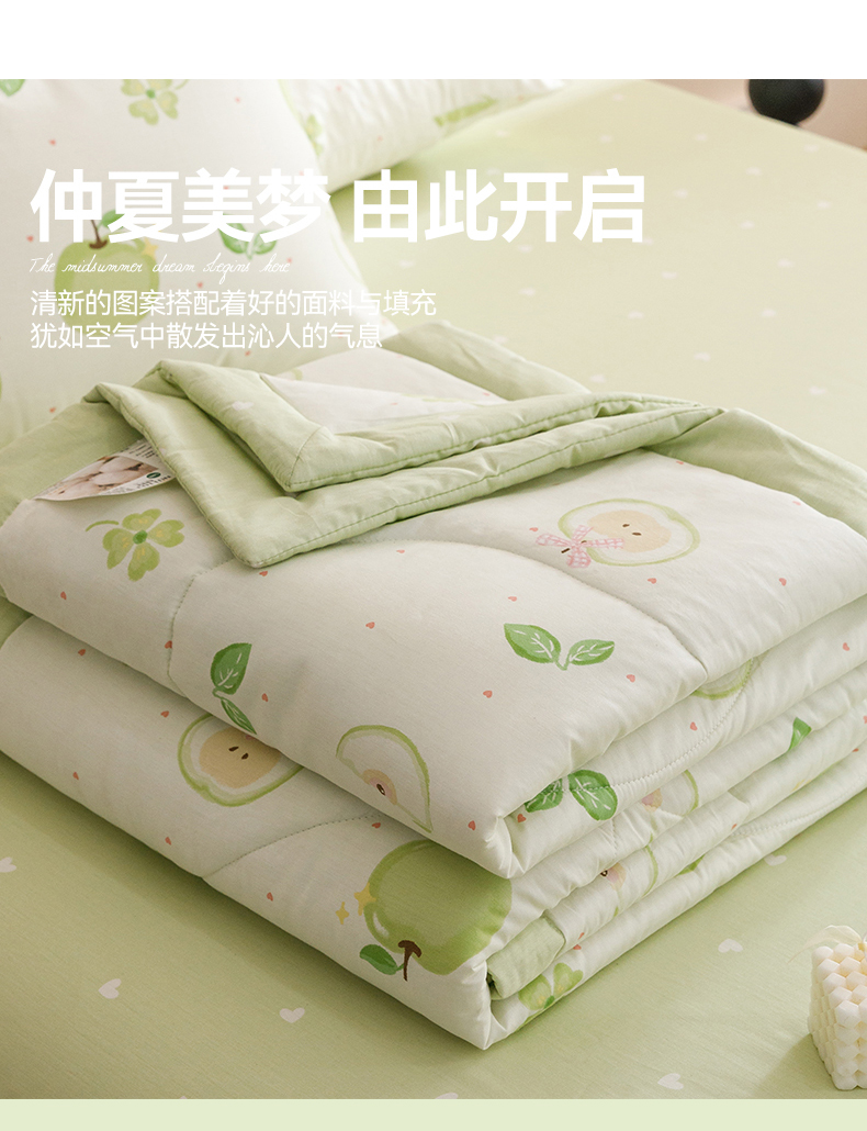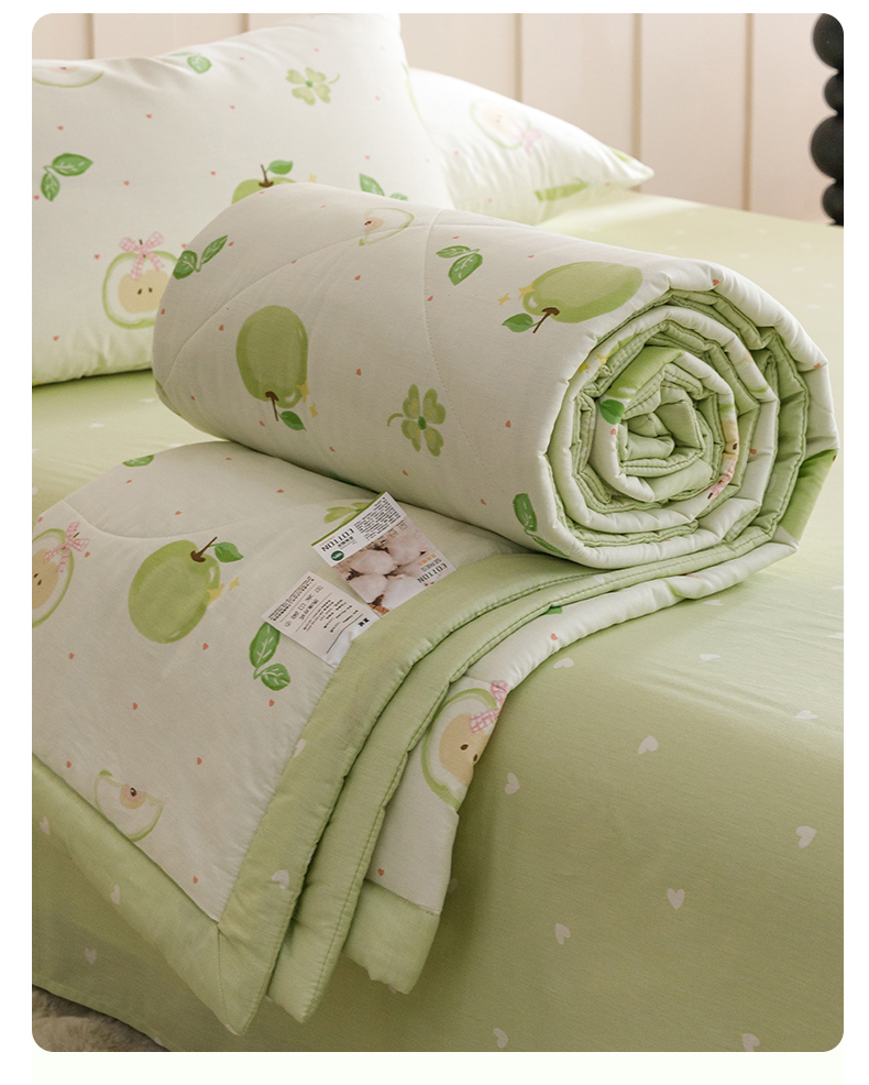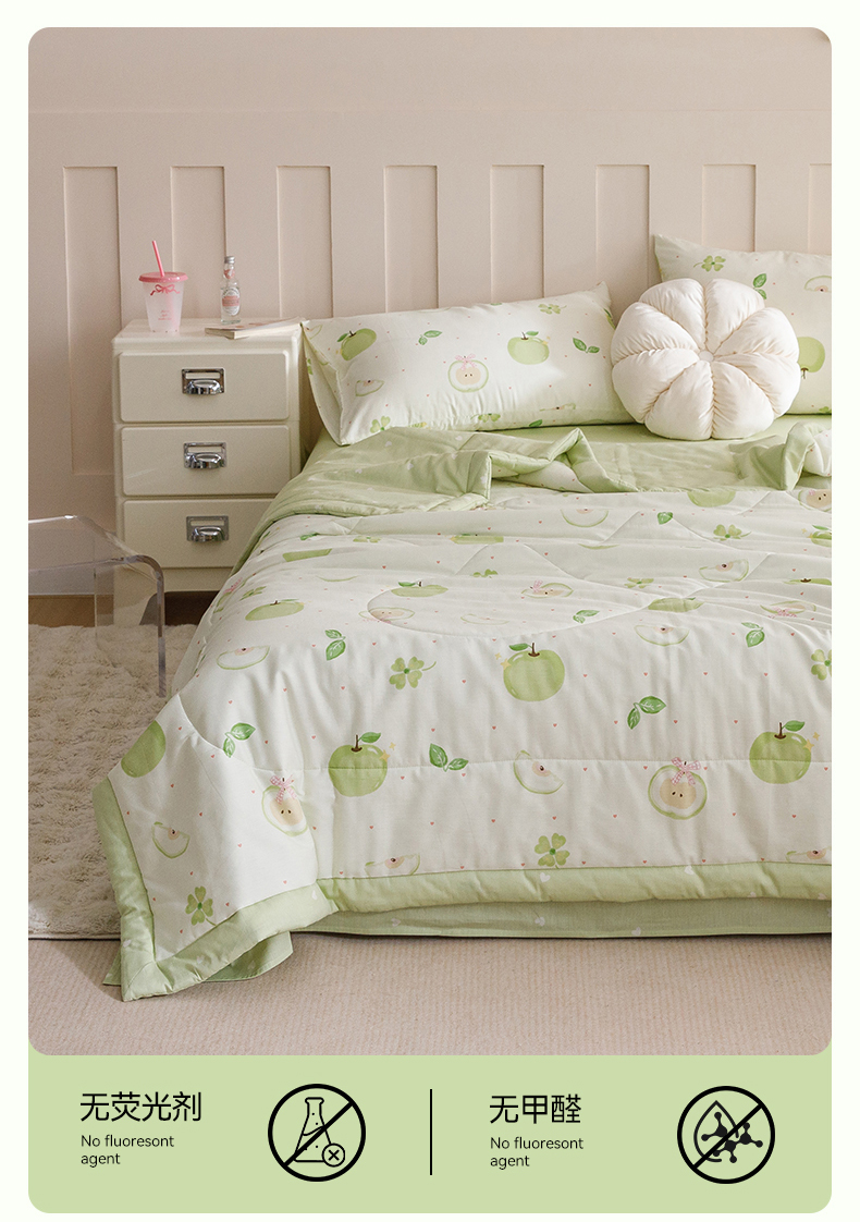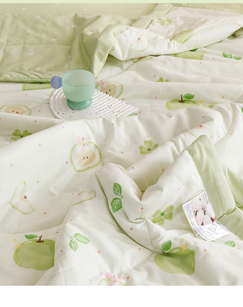恬思语家纺 2025新款全棉印花棉花夏被苹果派对