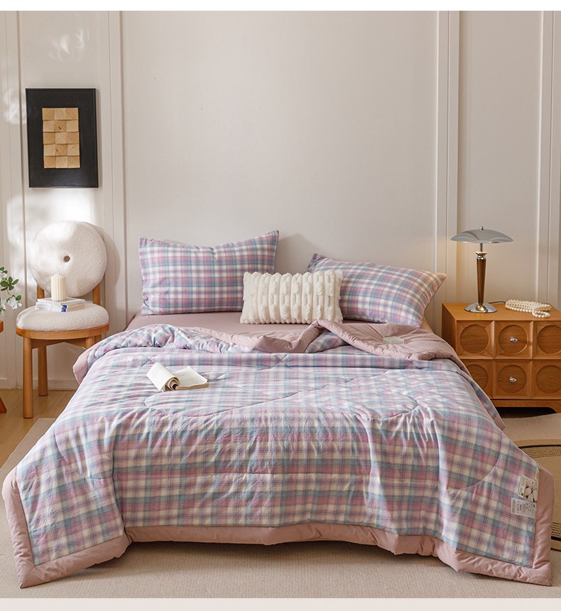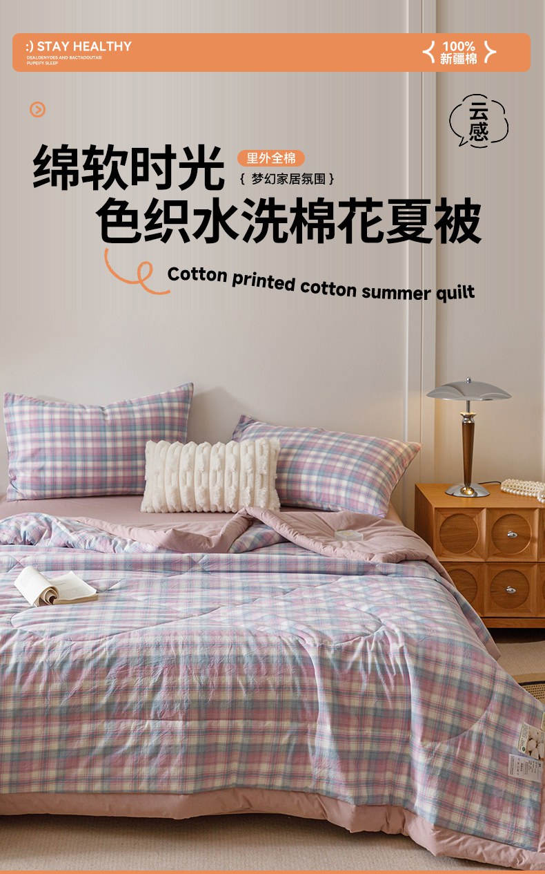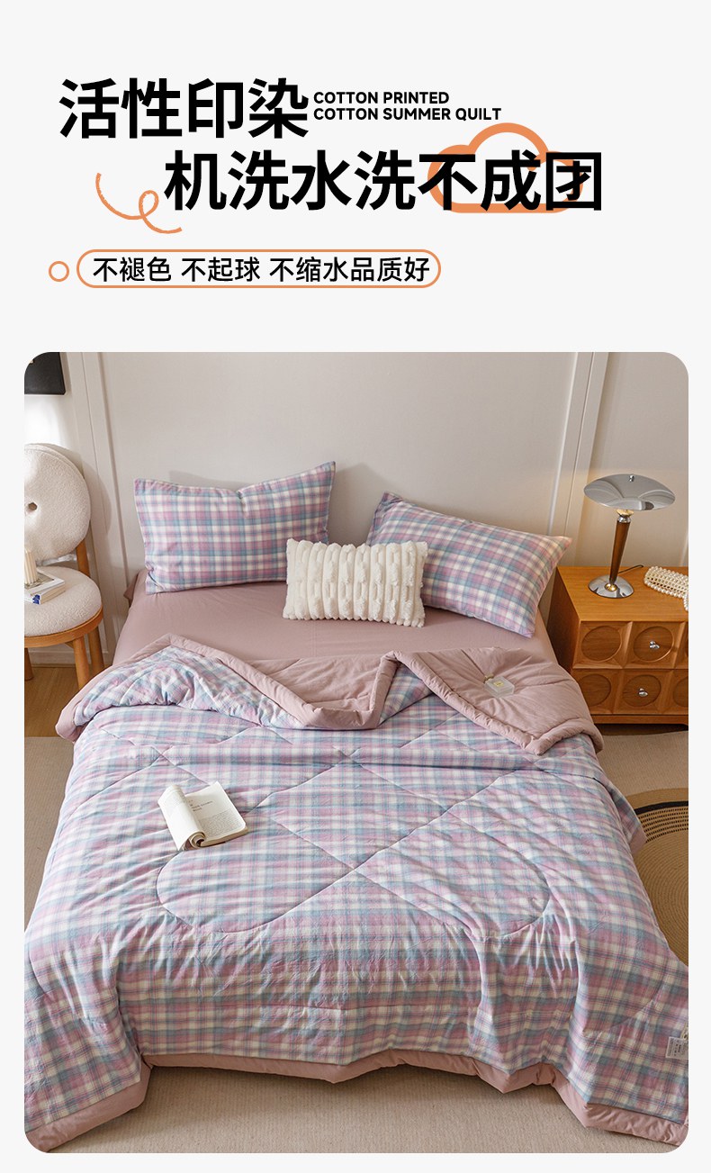 恬思语家纺 2025新款全棉色织水洗棉棉花夏被 浮光之梦 紫