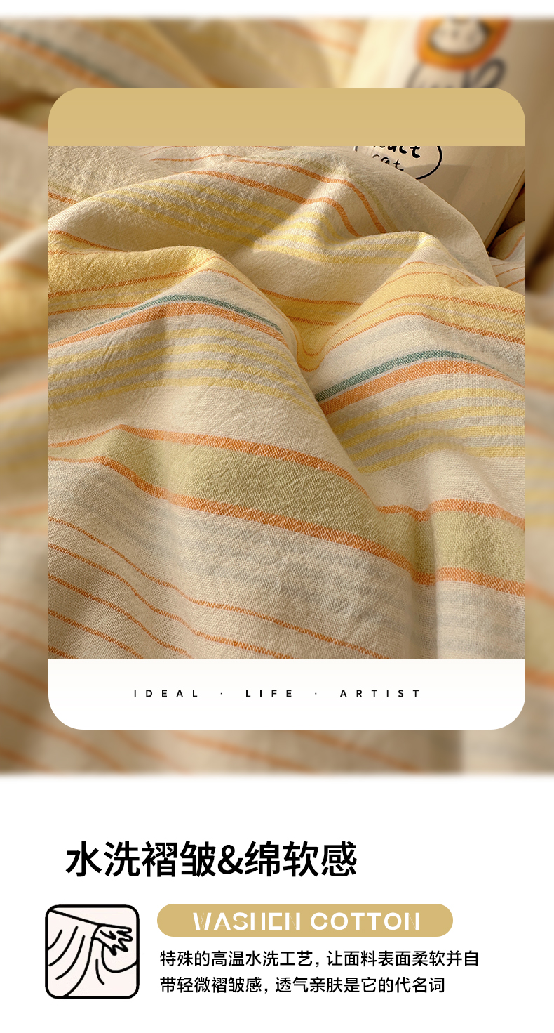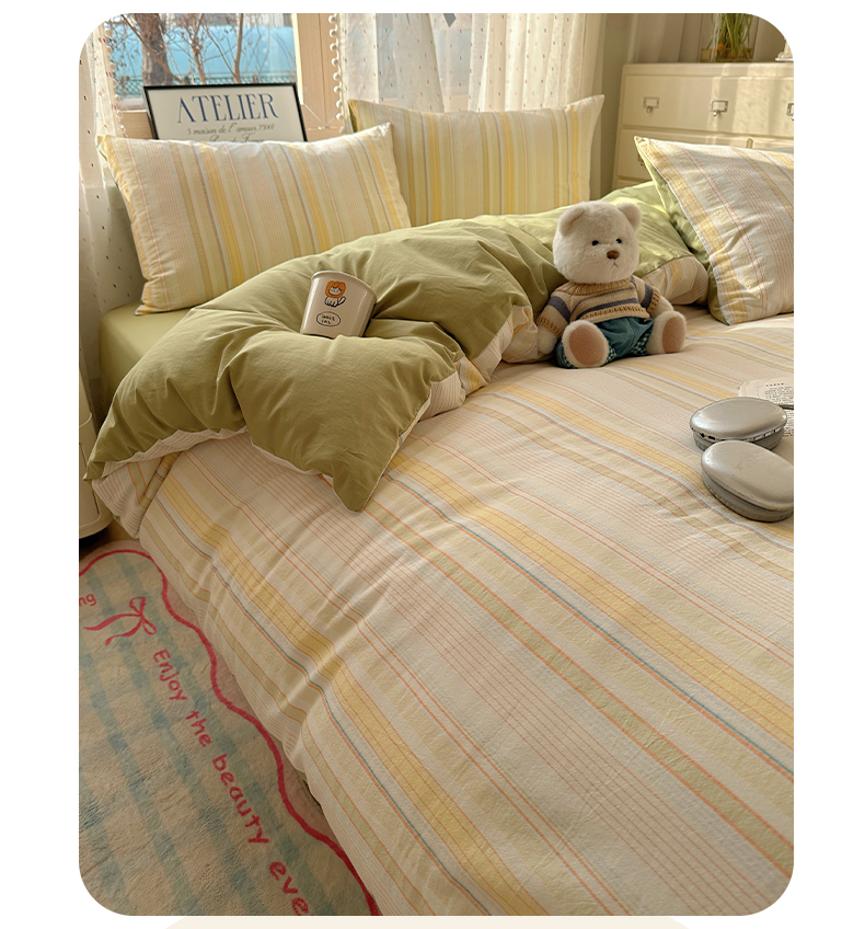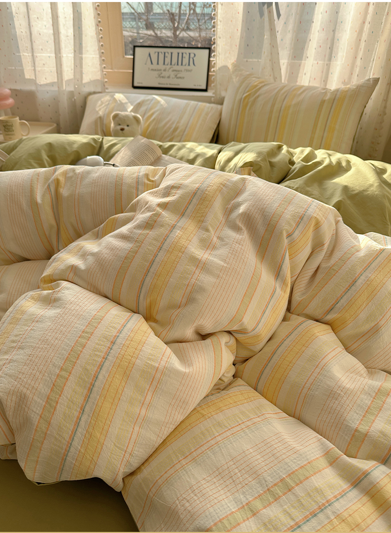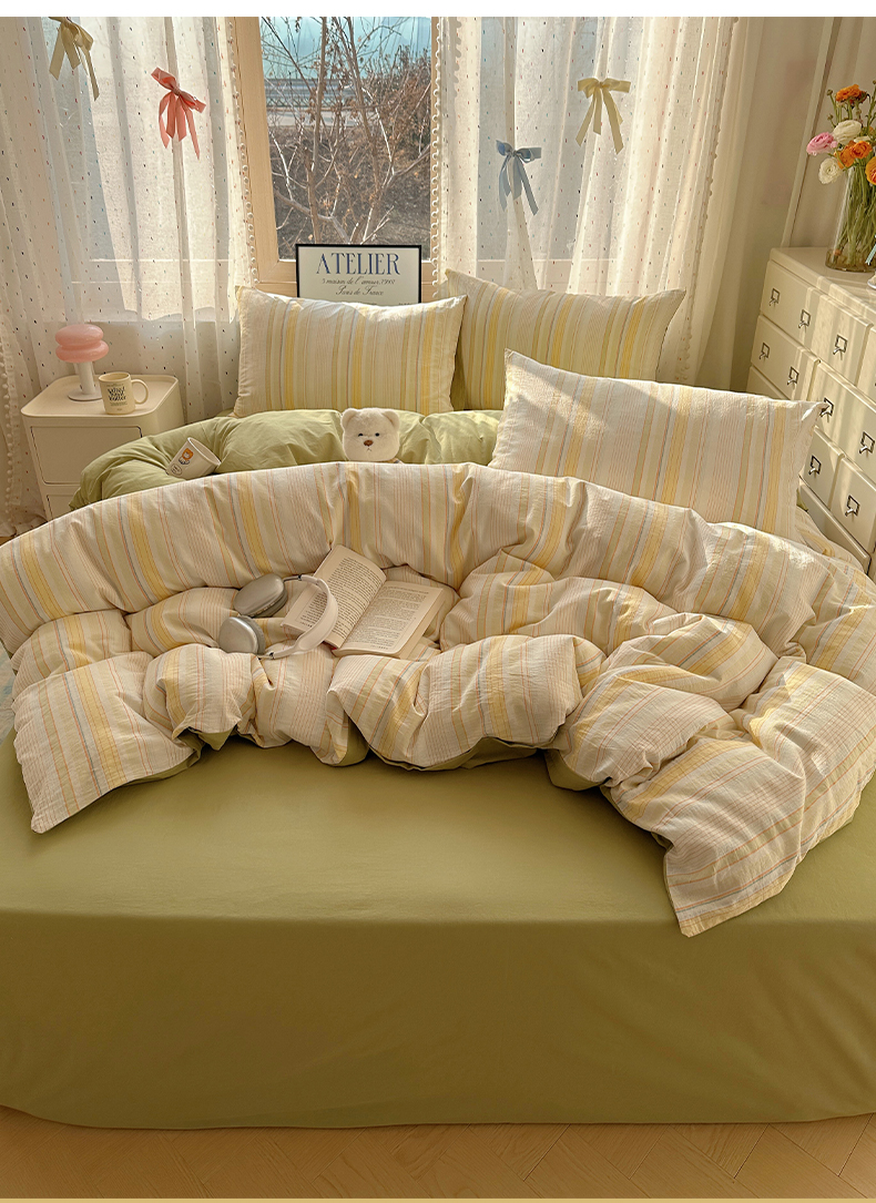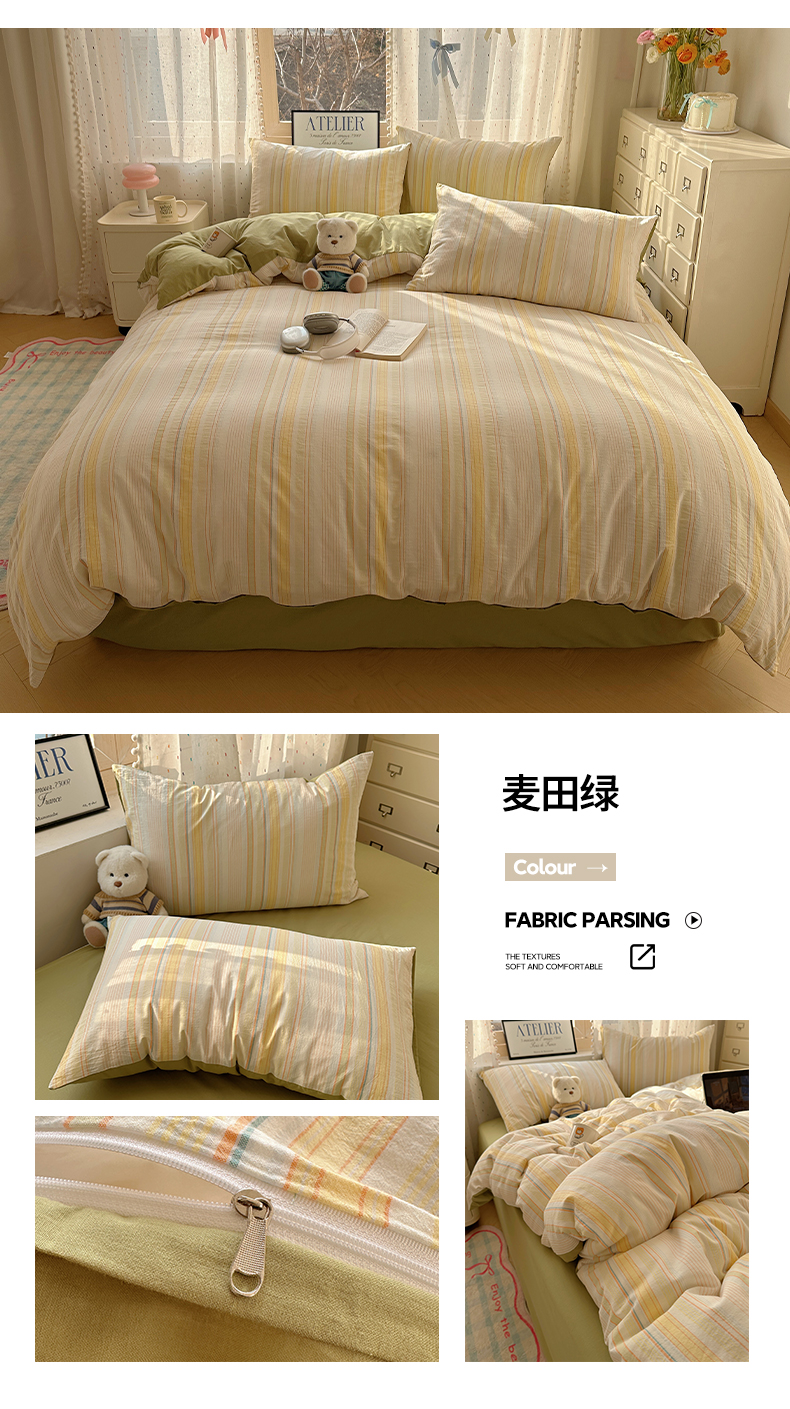 当前位置: 91家纺网 > 商品网购 > 床品套件 > 四件套 > 全棉普通四件套 > 雅居纺家纺 2025全棉色织水洗棉四件套 麦田绿