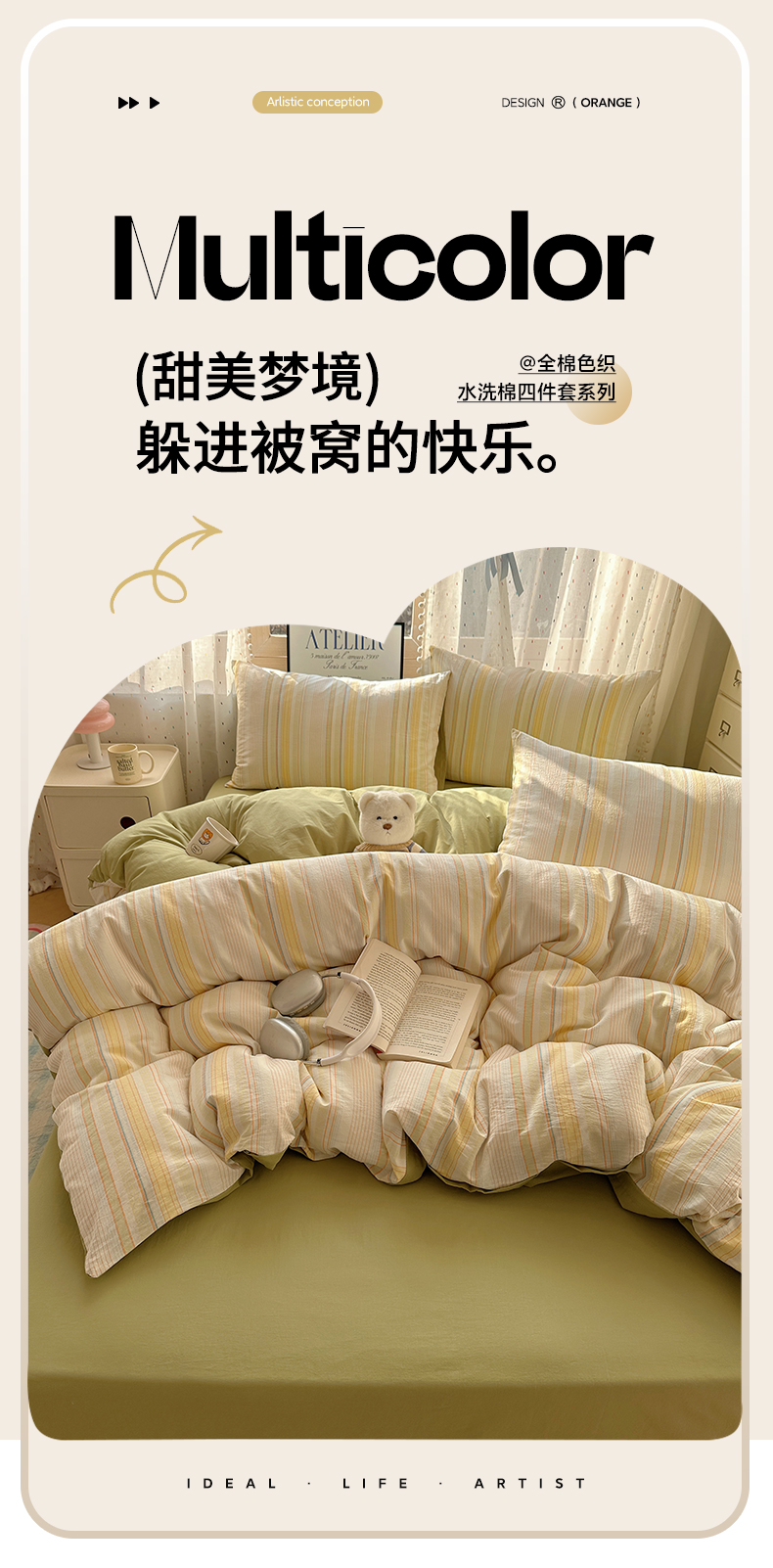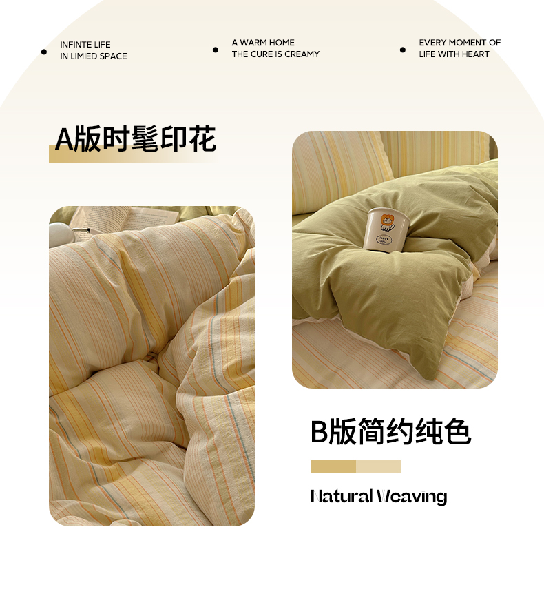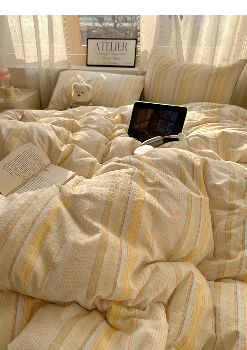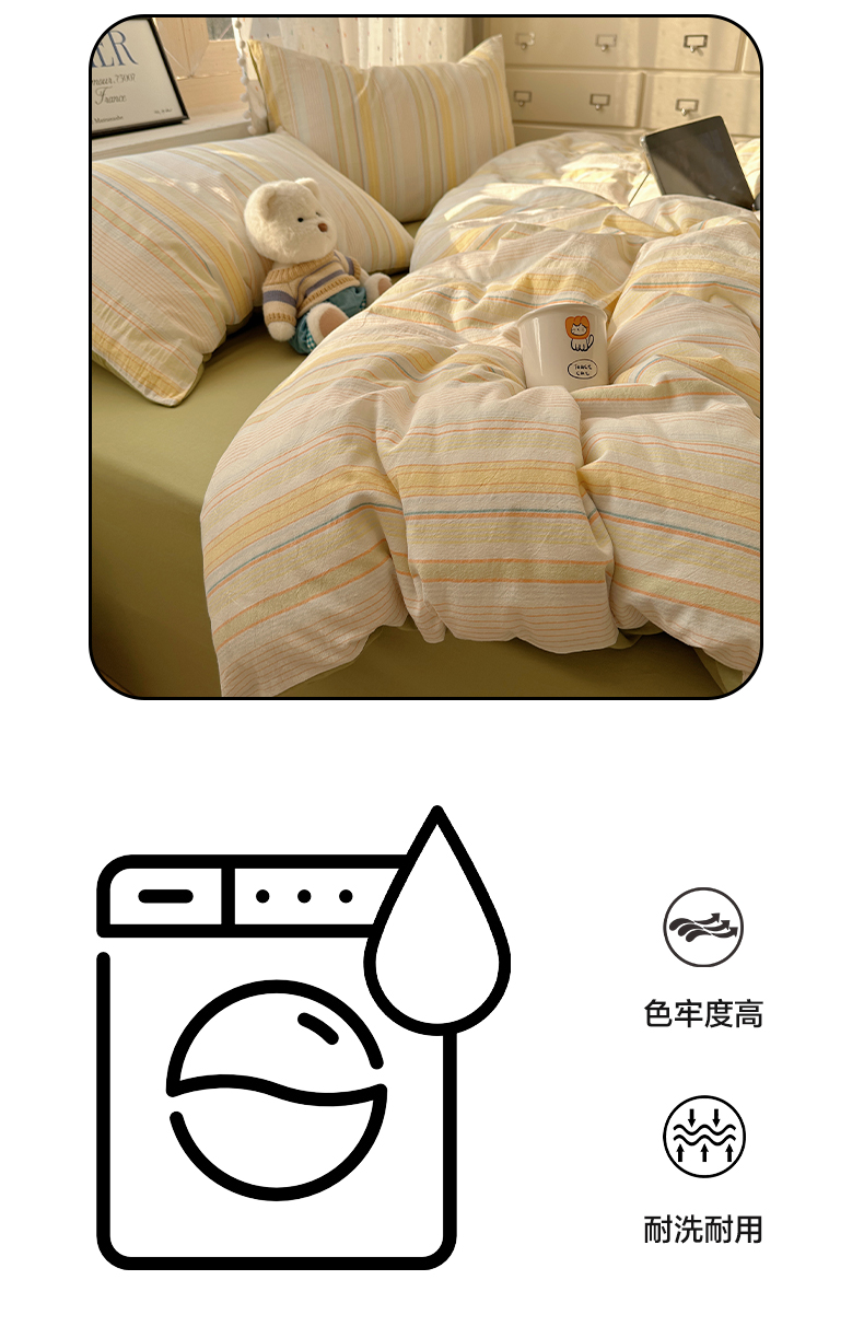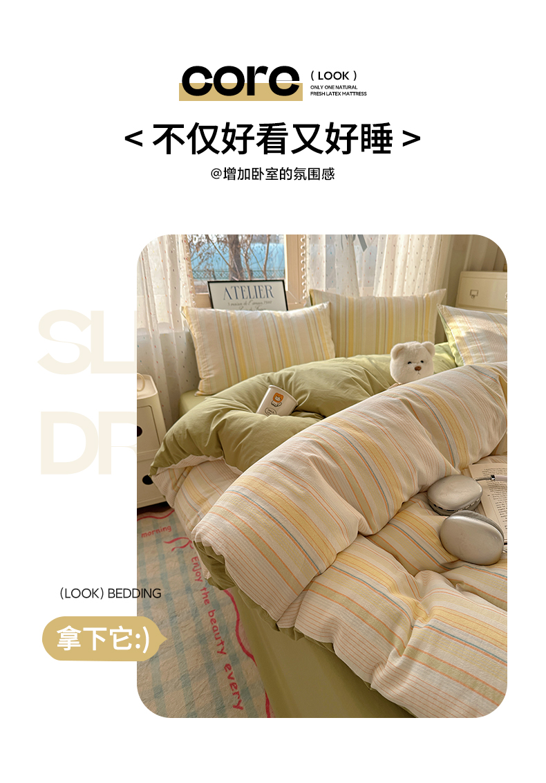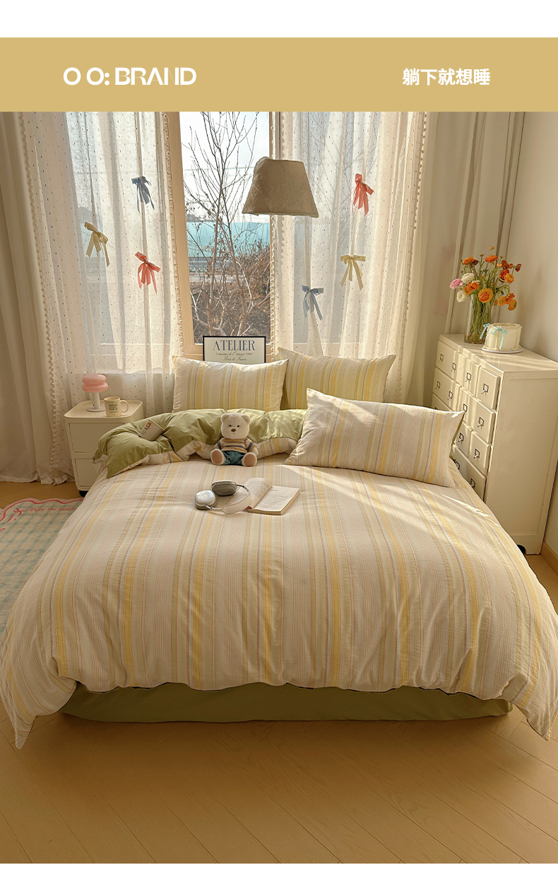 当前位置: 91家纺网 > 商品网购 > 床品套件 > 四件套 > 全棉普通四件套 > 雅居纺家纺 2025全棉色织水洗棉四件套 麦田绿